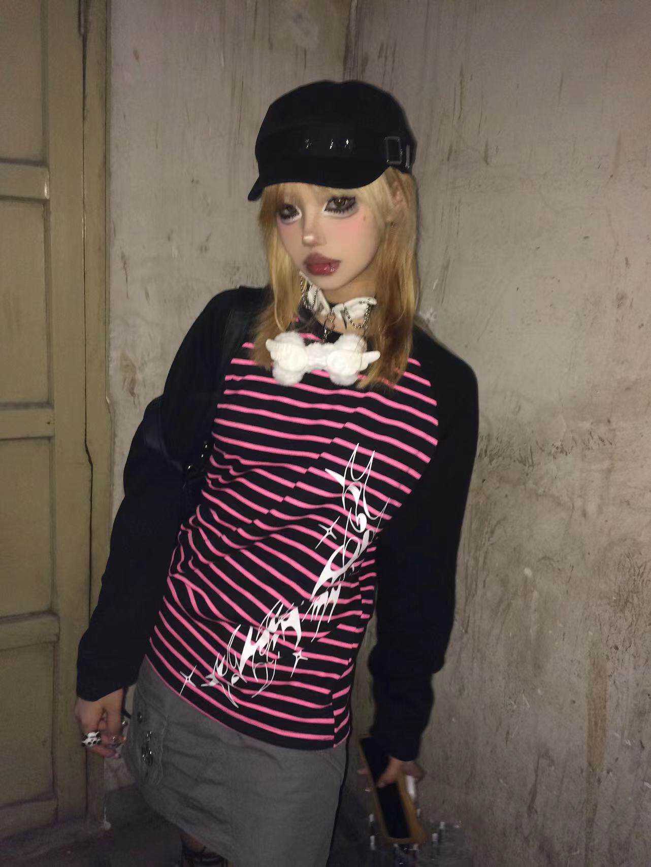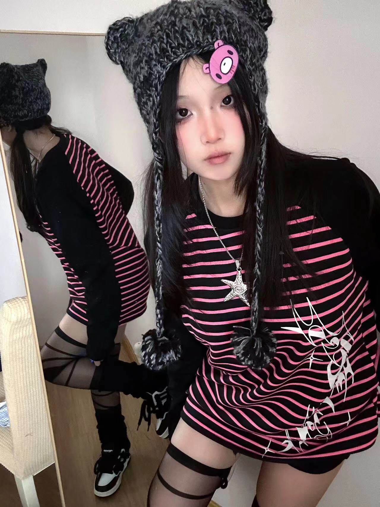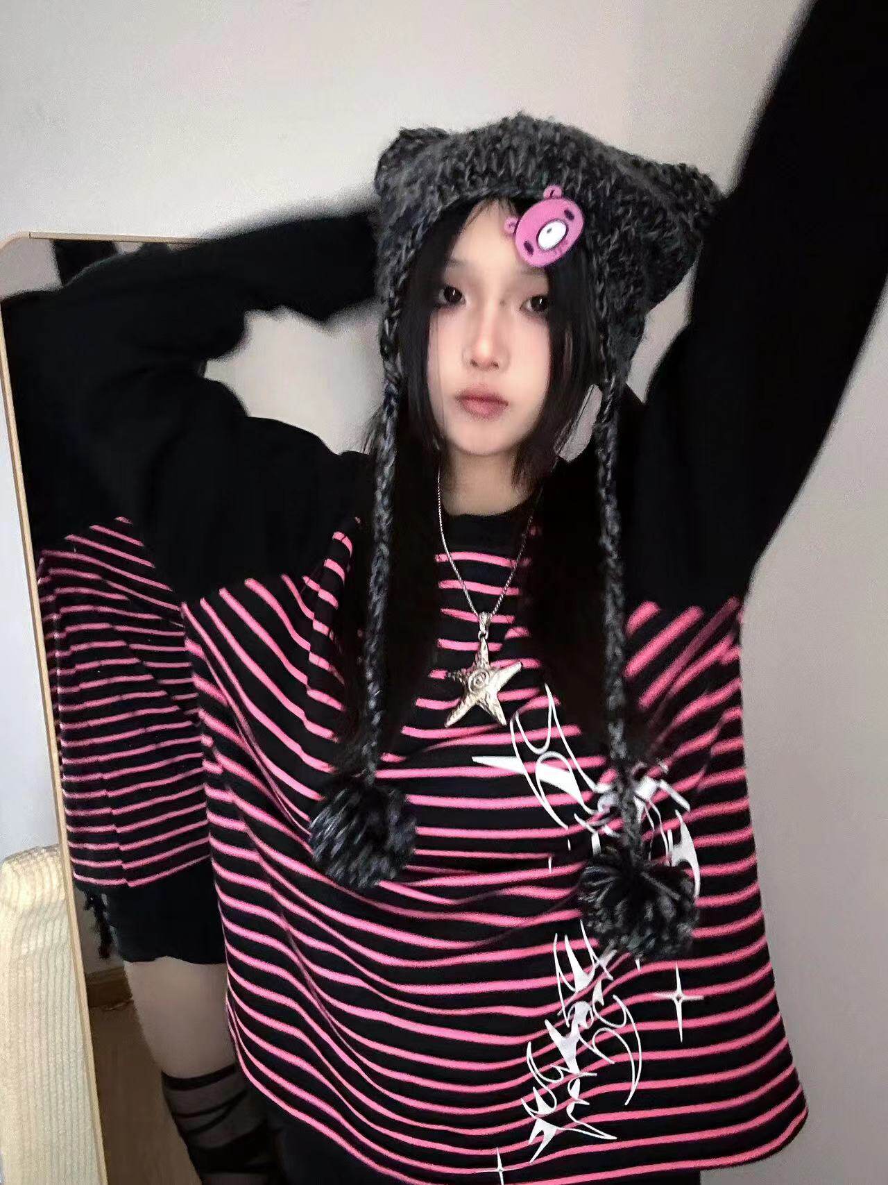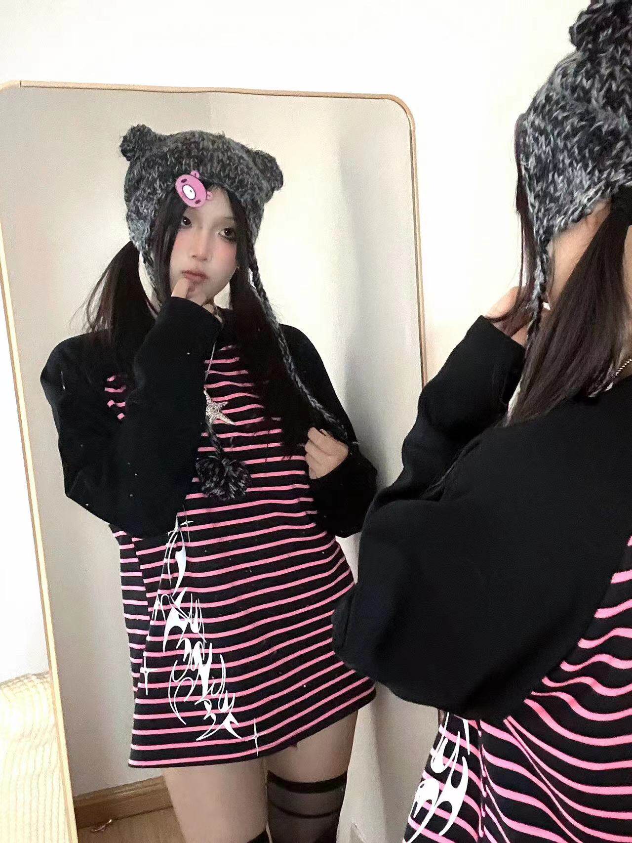 Влажные и сломанные пленочные романы Co -килограмма оригинальная аютическая культура Вставка полосатых свитеров Нишевые уличные куртки