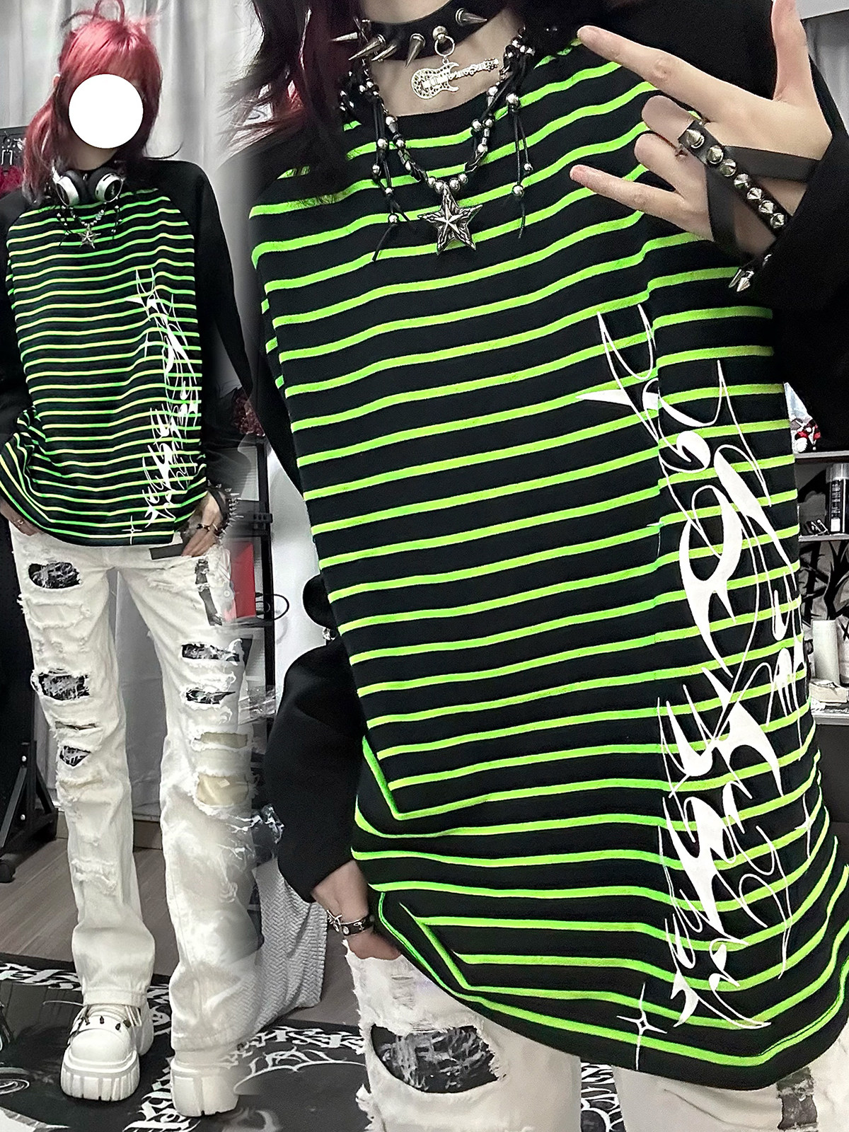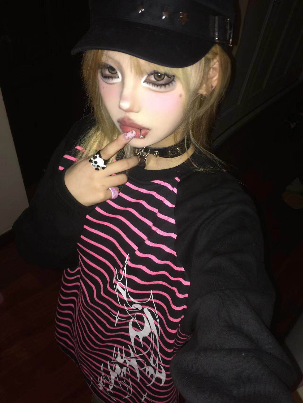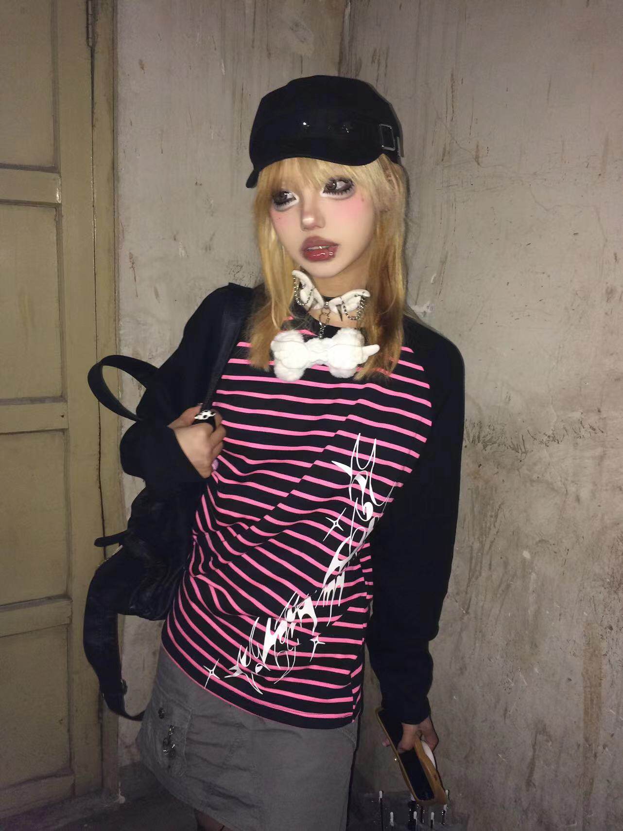 Влажные и сломанные пленочные романы Co -килограмма оригинальная аютическая культура Вставка полосатых свитеров Нишевые уличные куртки