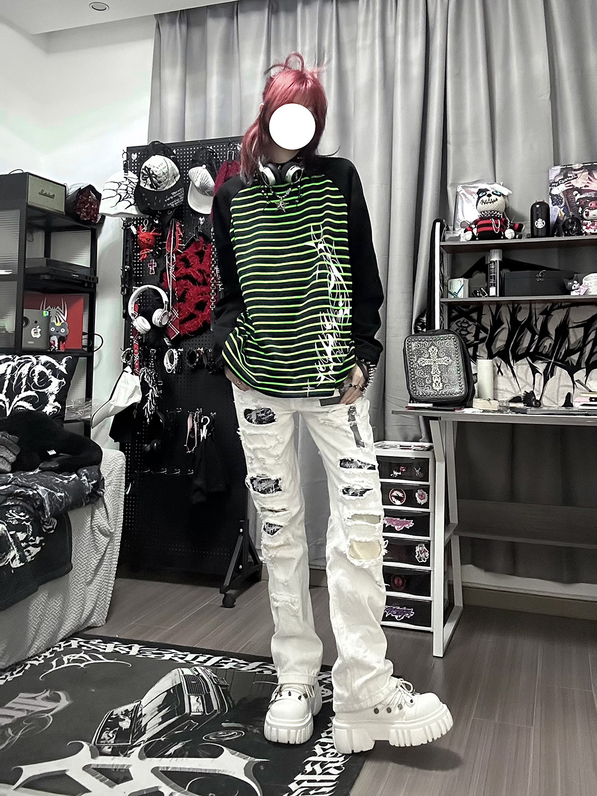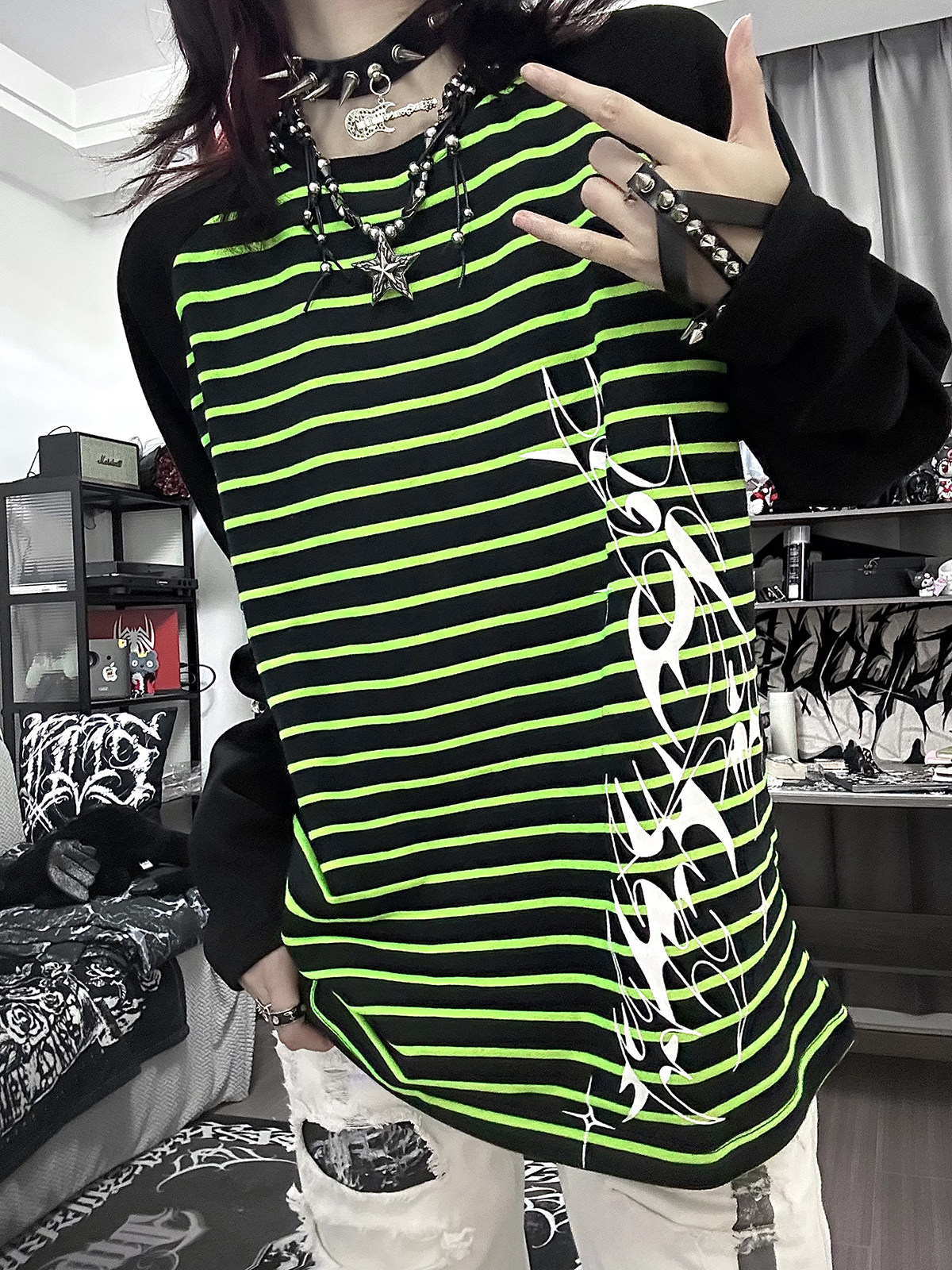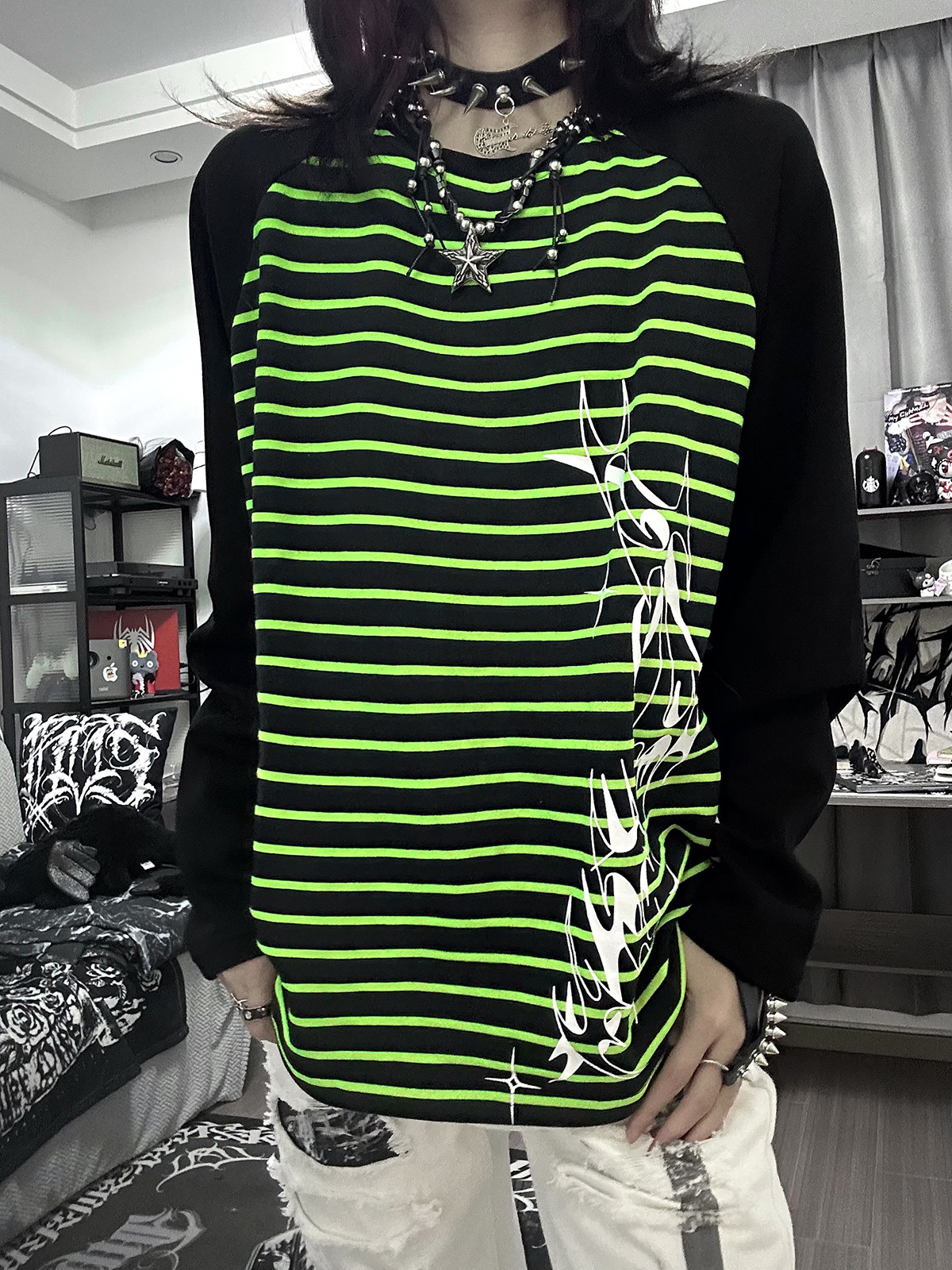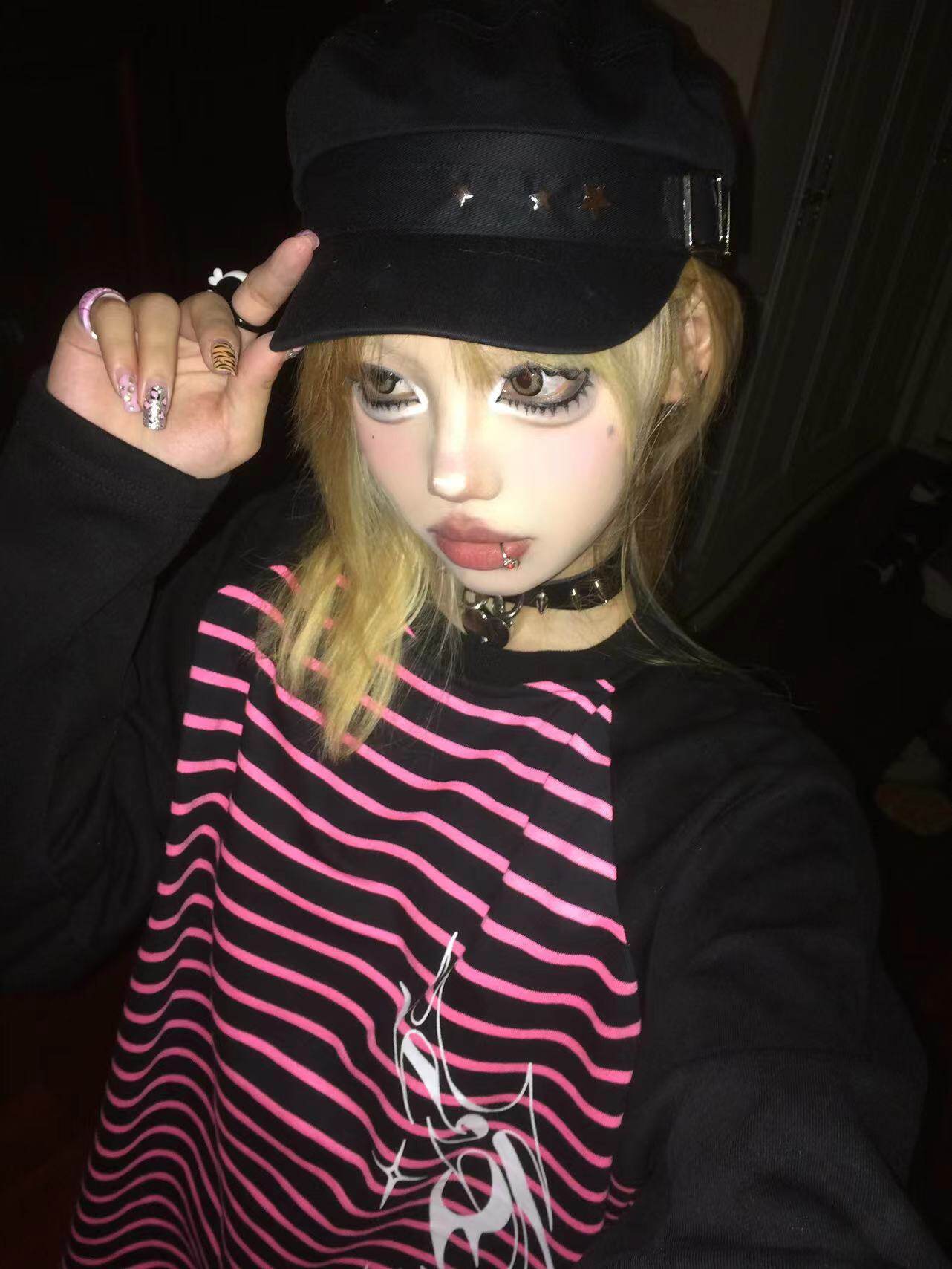 Влажные и сломанные пленочные романы Co -килограмма оригинальная аютическая культура Вставка полосатых свитеров Нишевые уличные куртки
