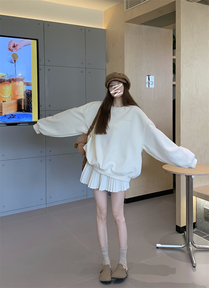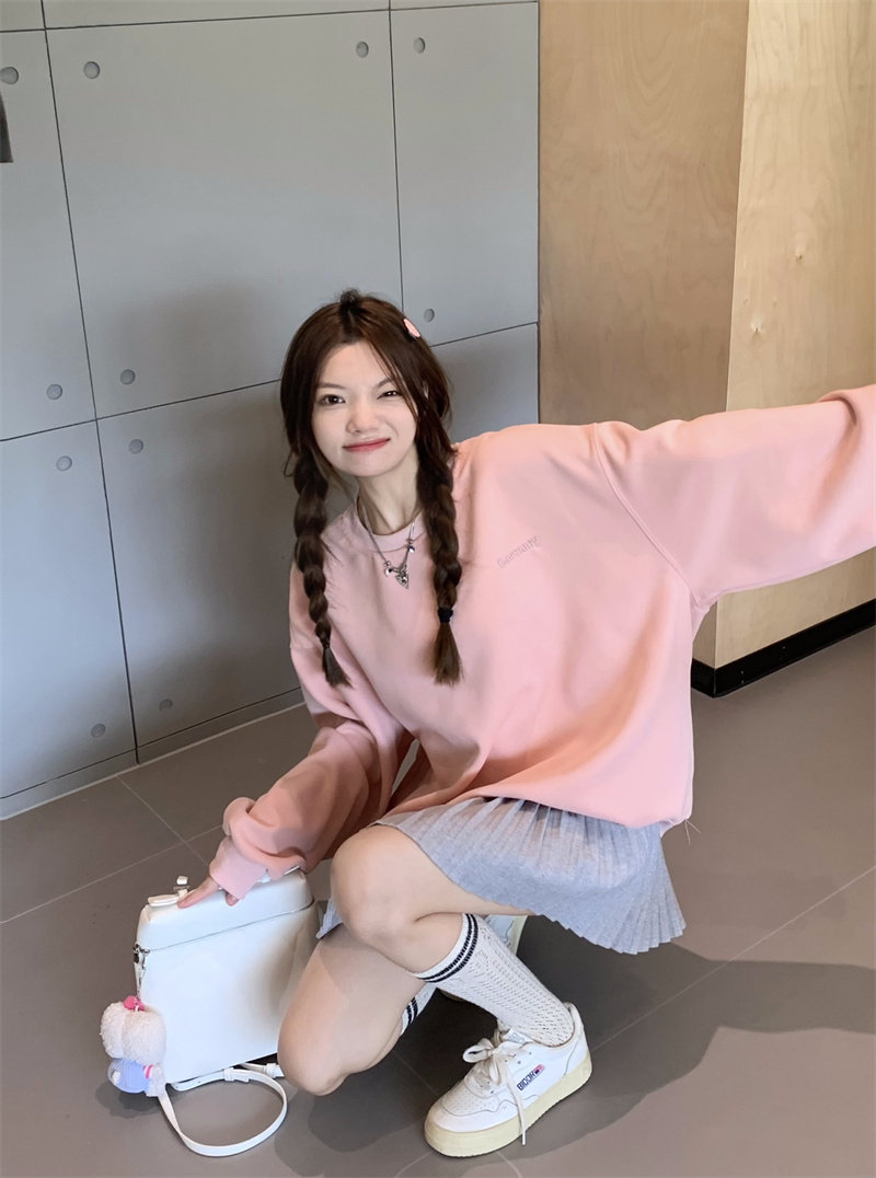 Лонгслив, нарукавники, весенняя милая толстовка с круглым воротником, с вышивкой, подходит для подростков, оверсайз