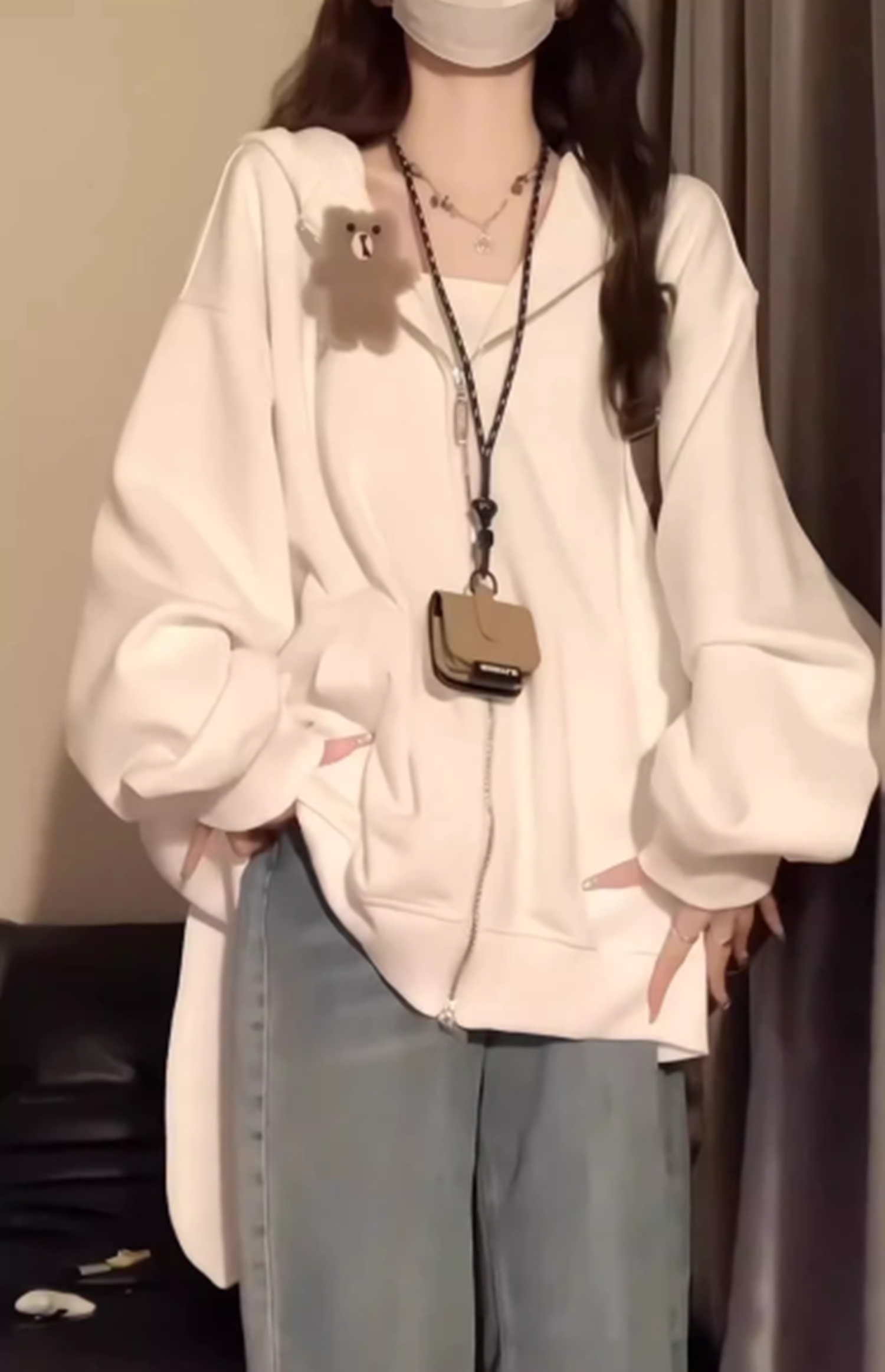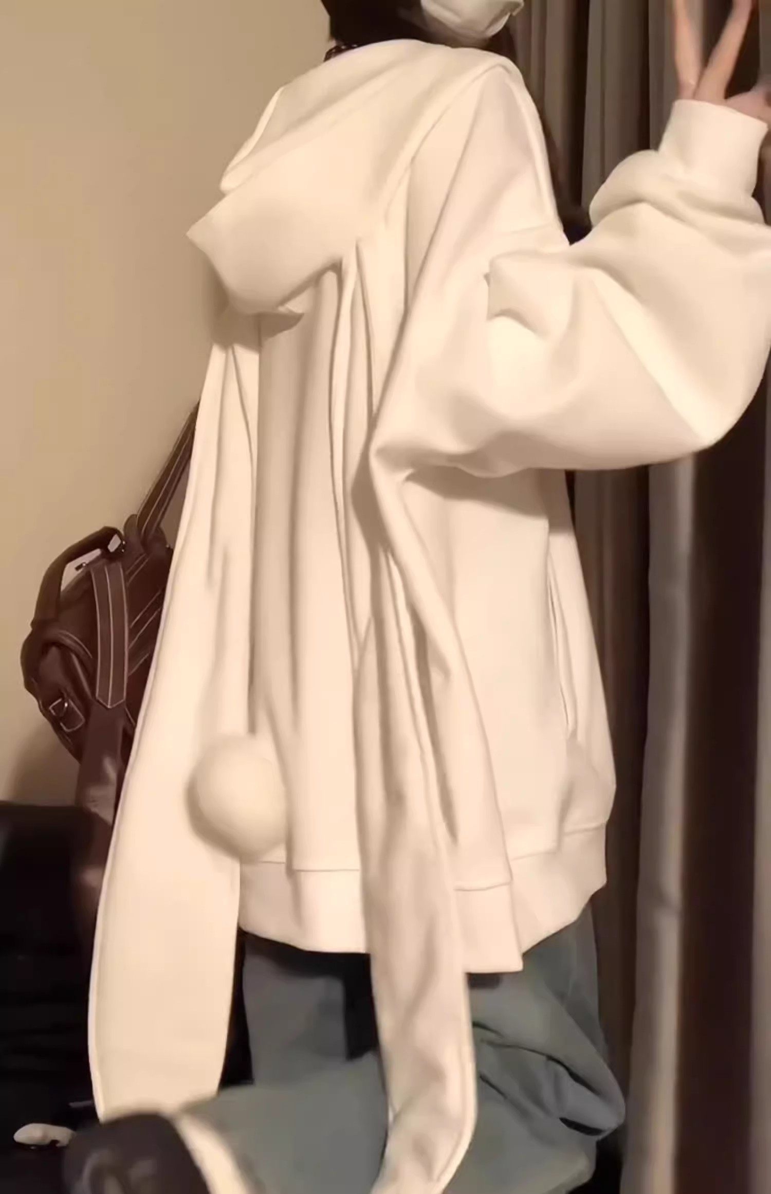 Милый кролик, осенняя толстовка, тонкий кардиган с капюшоном, оверсайз