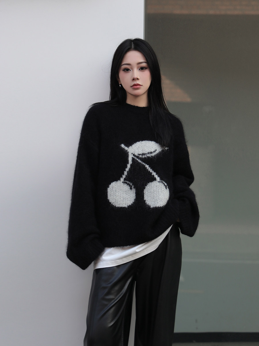 [Тот же абзац Sun Yi Mao xiaotong] Имми Махай Маити Цветочный вишневый свитер нерегулярные морщины Длинная юбка