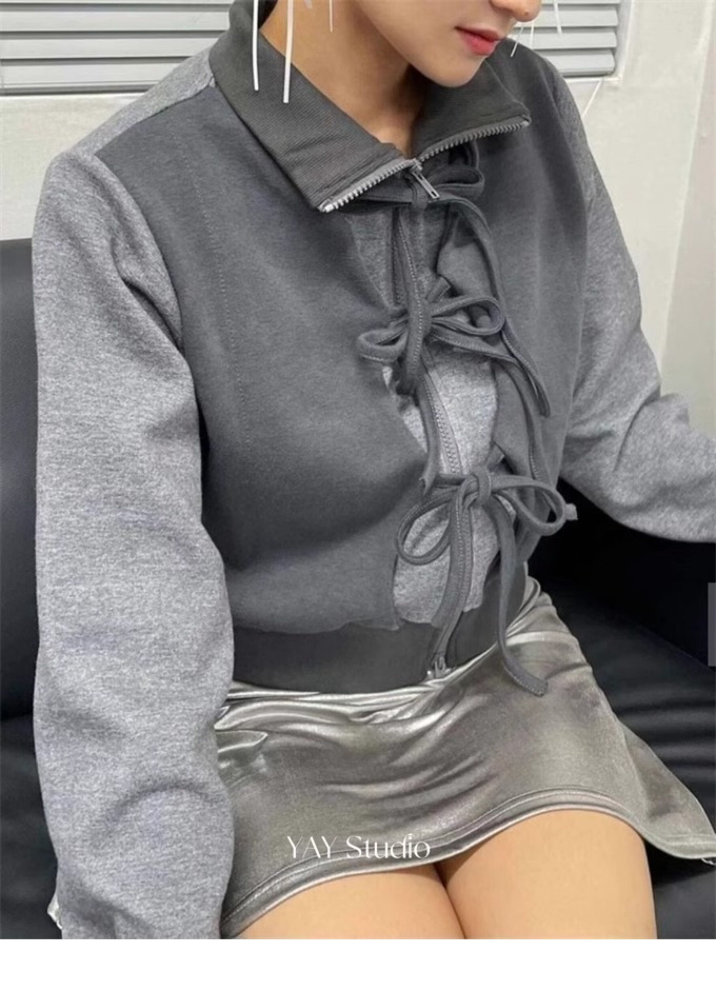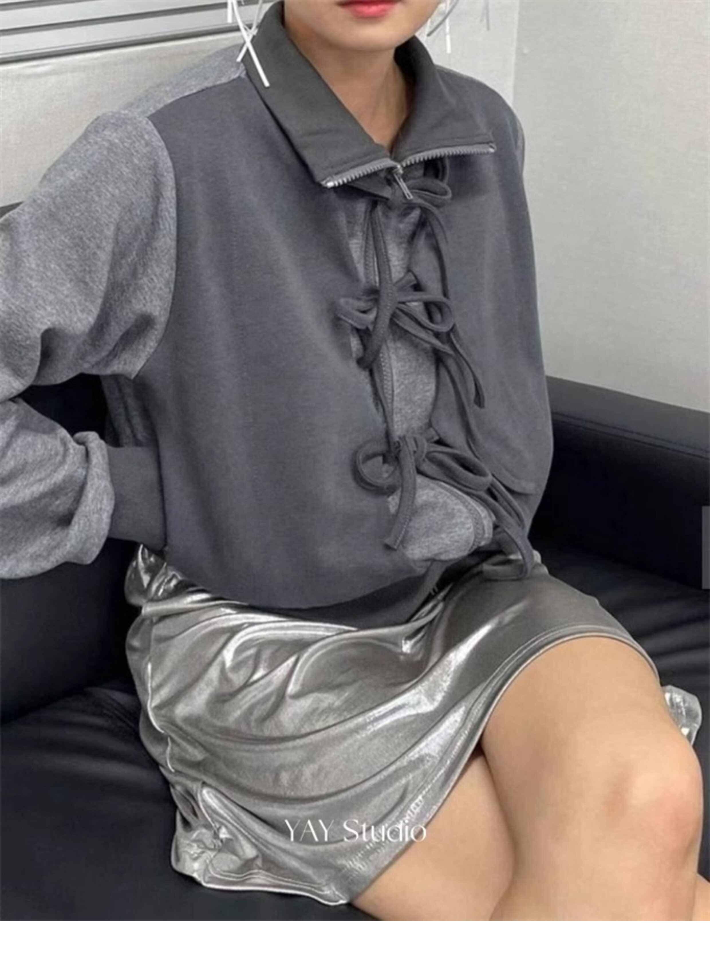 Дизайнерский ремень с бантиком, комплект с молнией, короткая толстовка