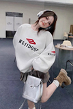 Демисезонный лонгслив с круглым воротником подходит для мужчин и женщин, с вышивкой, оверсайз, для влюбленных