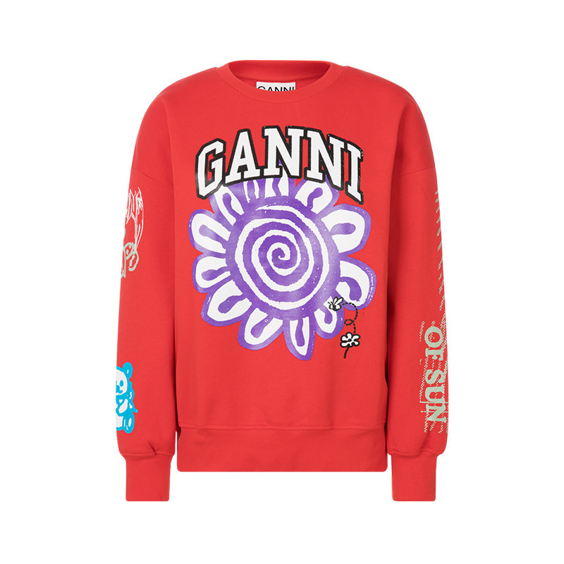 GANNI Летняя красная толстовка с круглым воротником