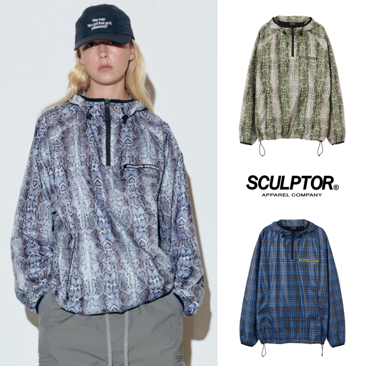 Осень 23 SCULPTOR Корейский дизайнерский бренд уличного стиля с принтом на шнурке, свободная толстовка с капюшоном и полумолнией