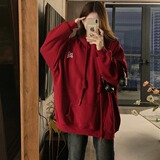 Красная демисезонная утепленная длинная толстовка с капюшоном, большой размер, средней длины