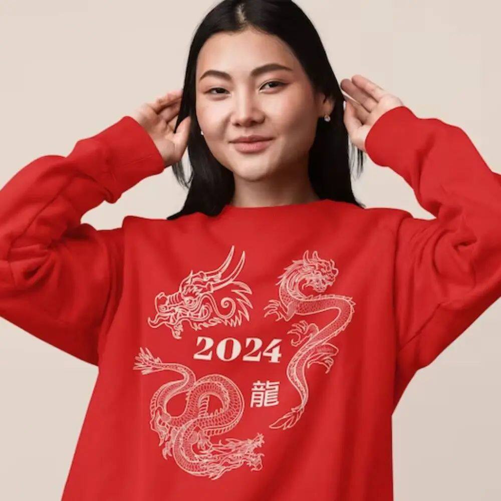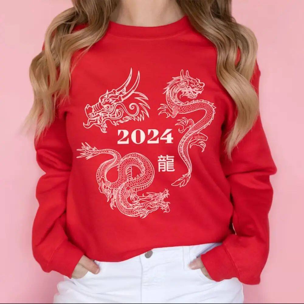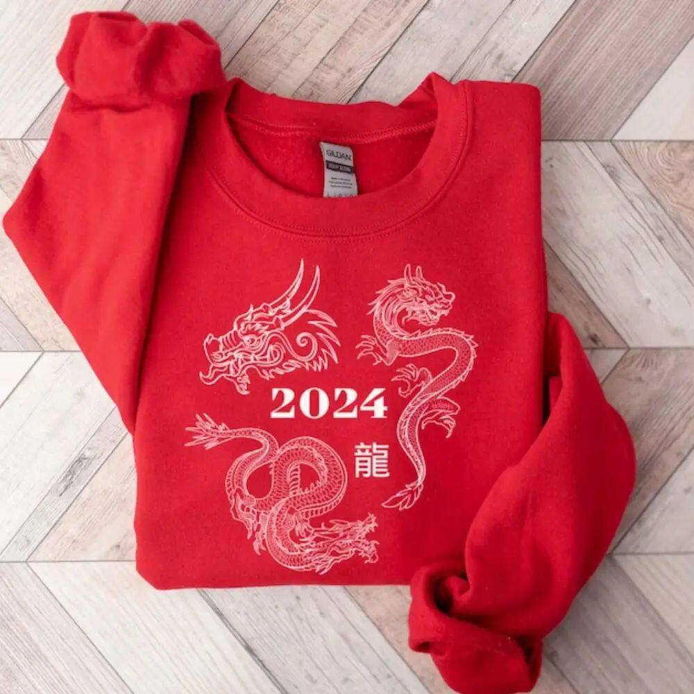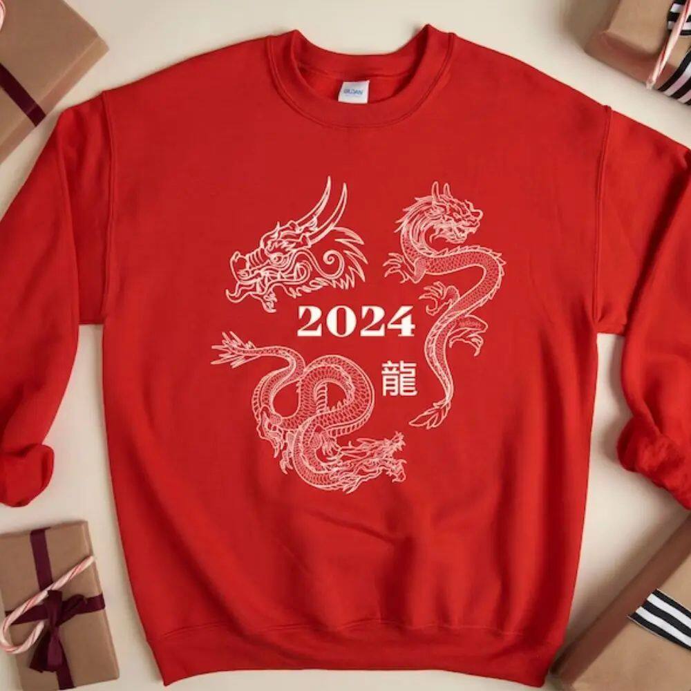 Год толстовки дракона 2024 Китайский Новый год капюшона