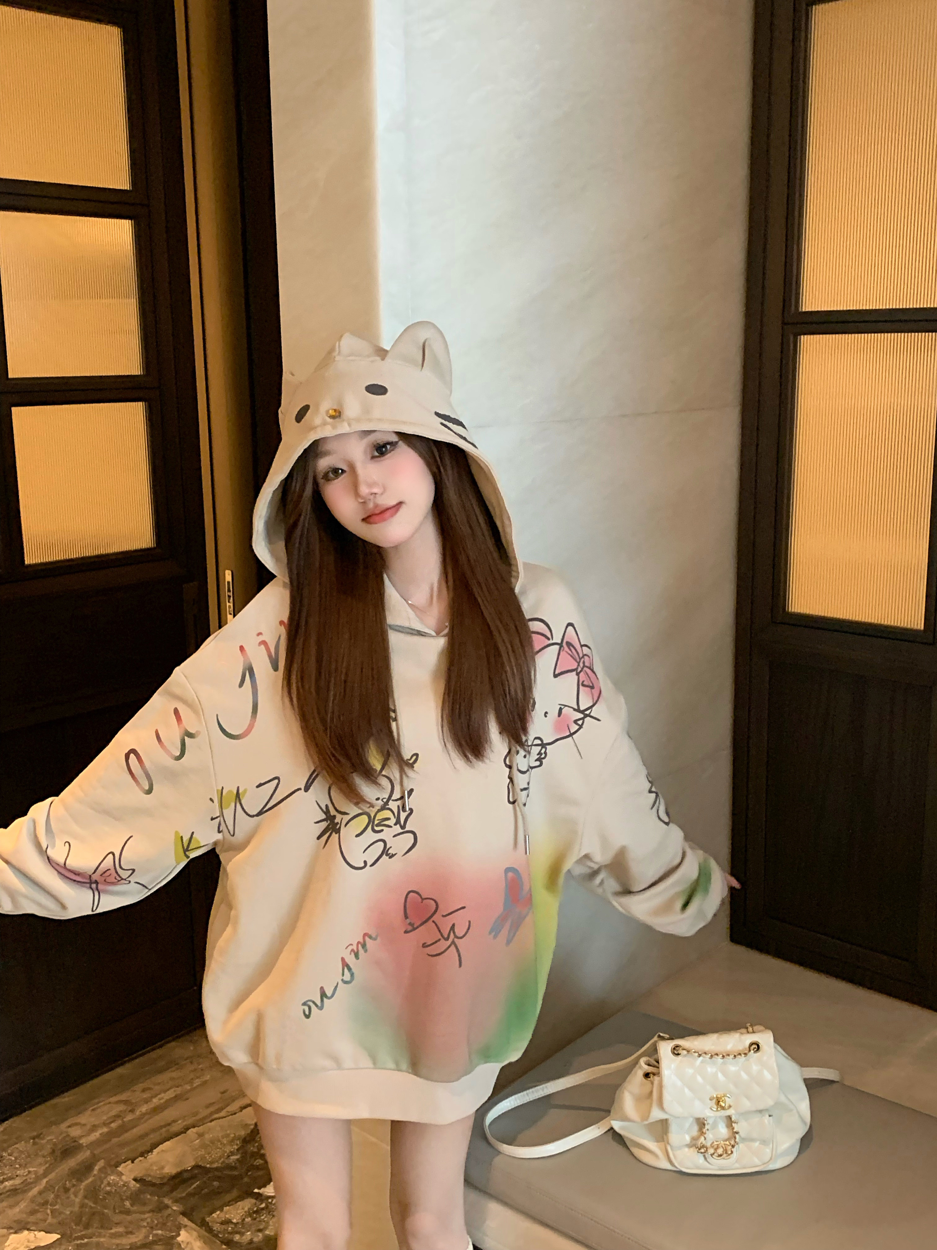 Мультяшная демисезонная толстовка с капюшоном, утепленная куртка, лонгслив, нарукавники, оверсайз