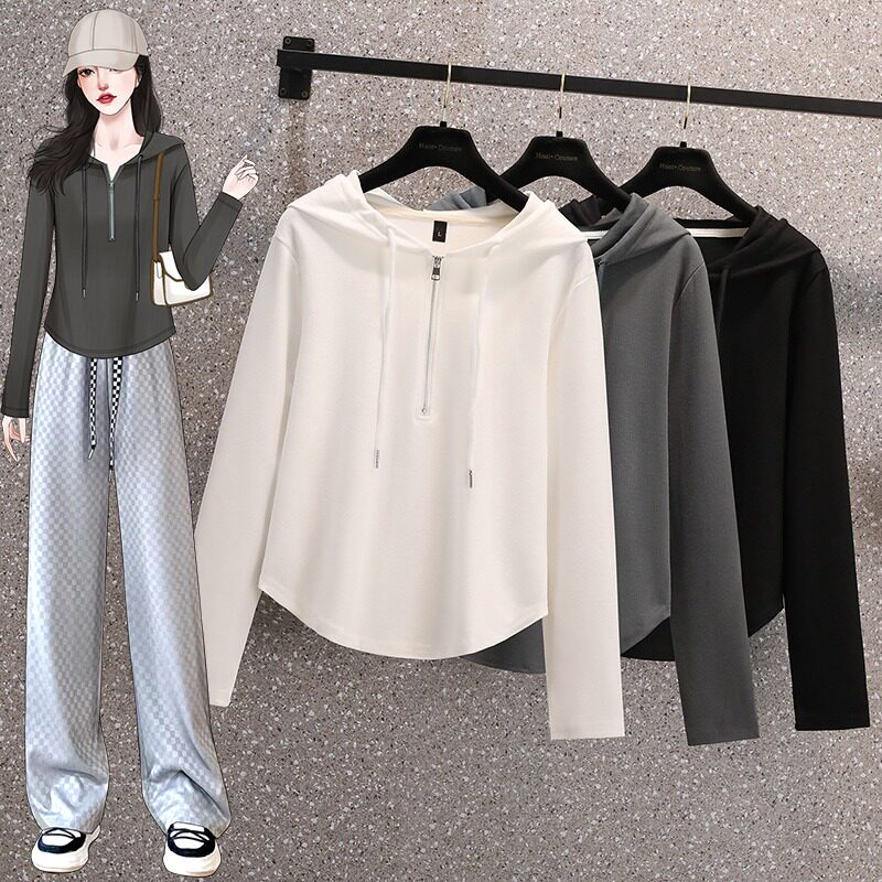 Весенняя толстовка для отдыха с капюшоном, лонгслив с молнией, большой размер, подходит для полных девушек, на молнии