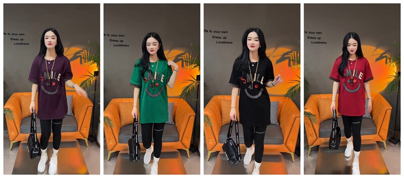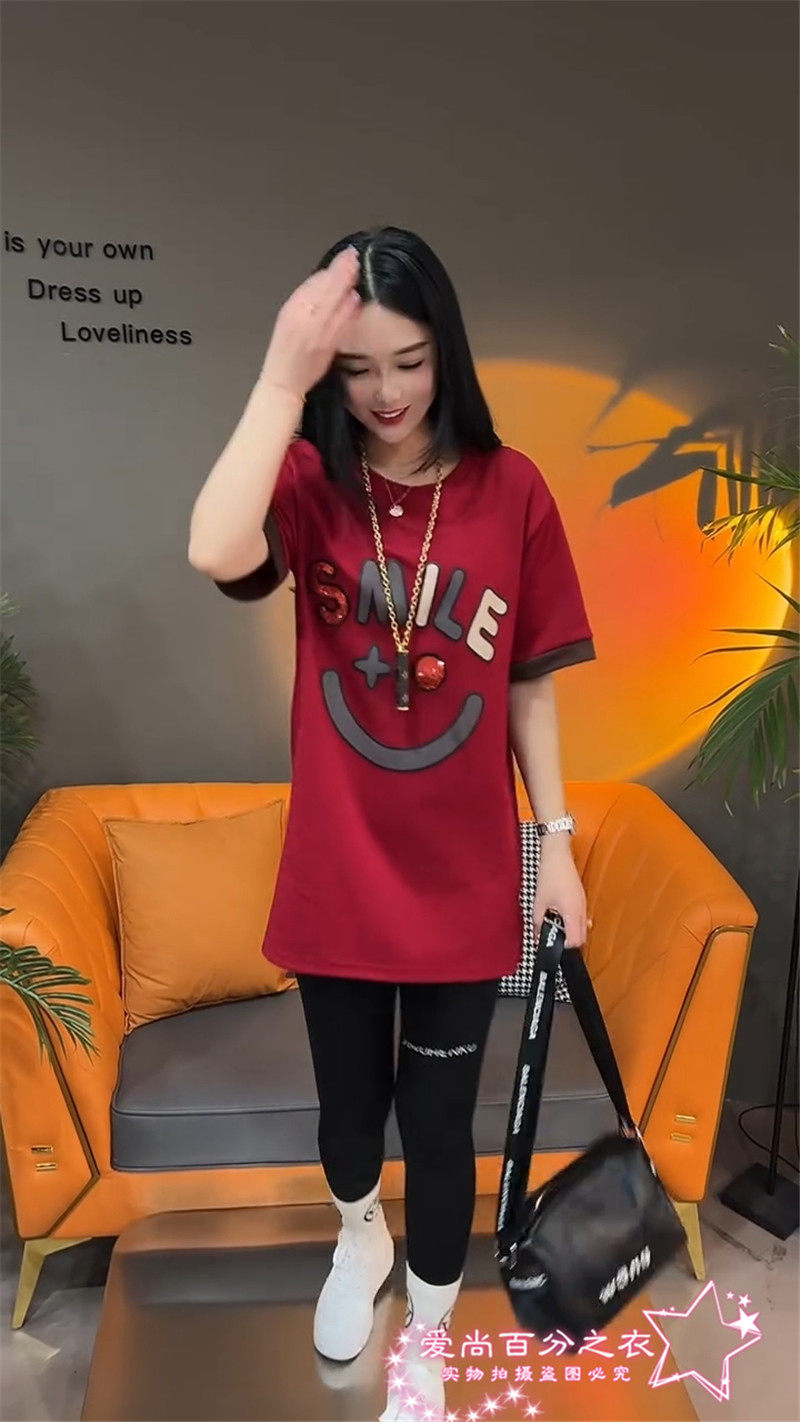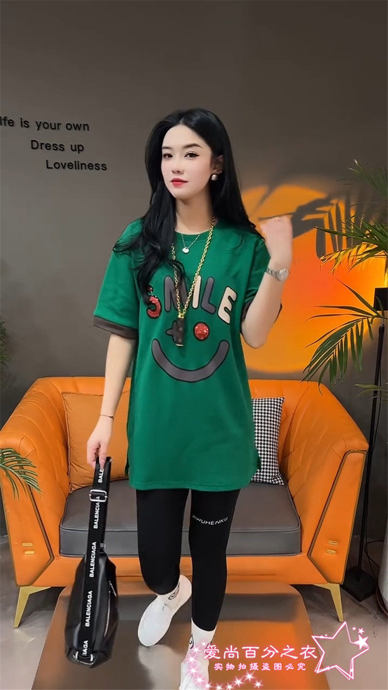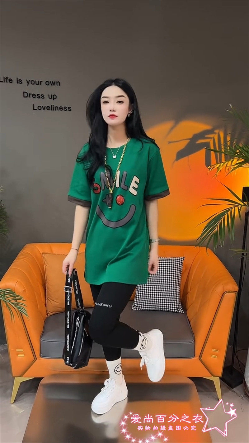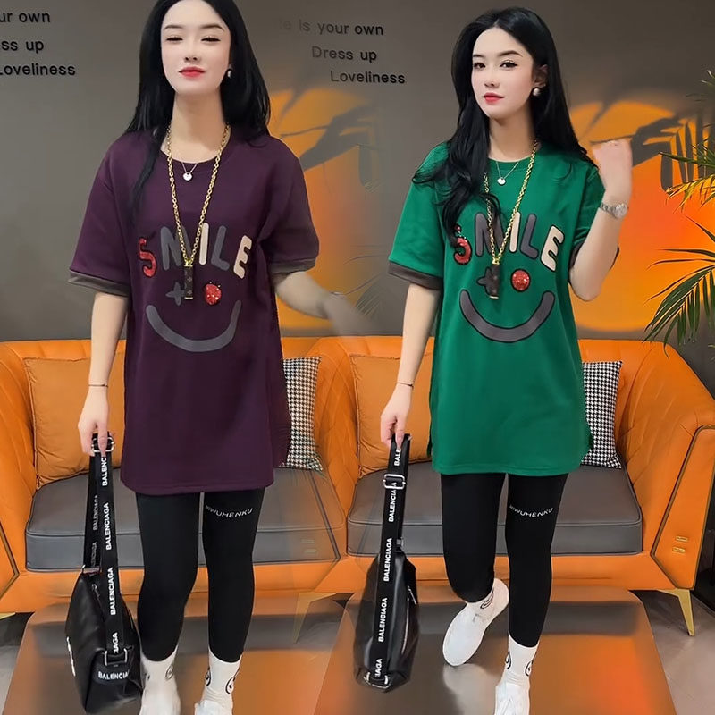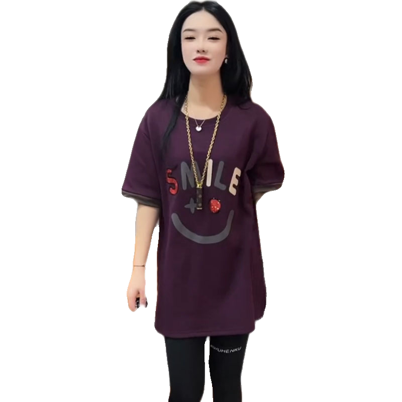 Летняя толстовка, платье с круглым воротником, футболка для отдыха, в корейском стиле, свободный крой, короткий рукав, длина миди