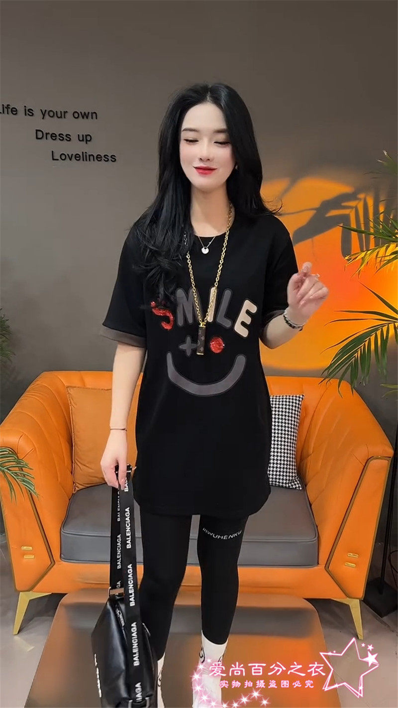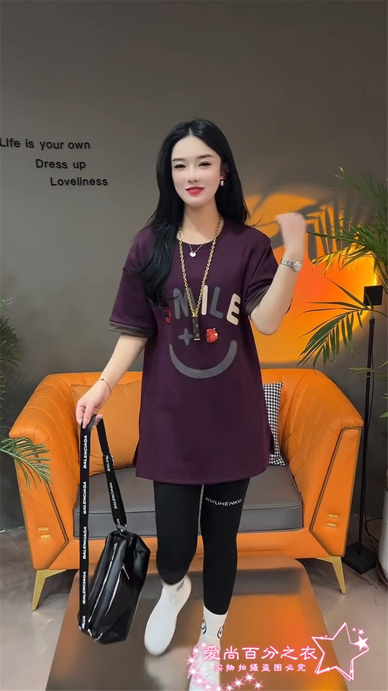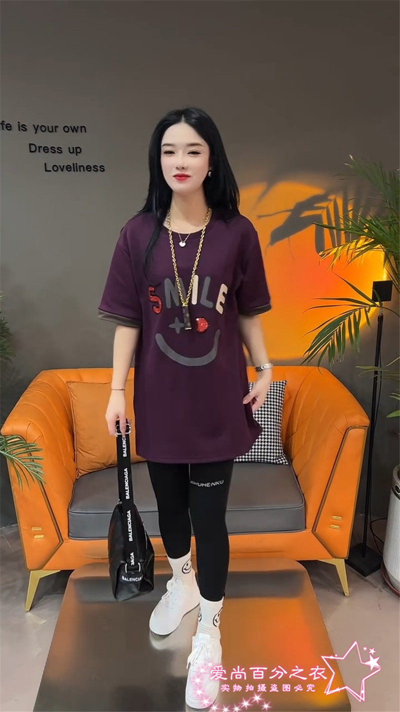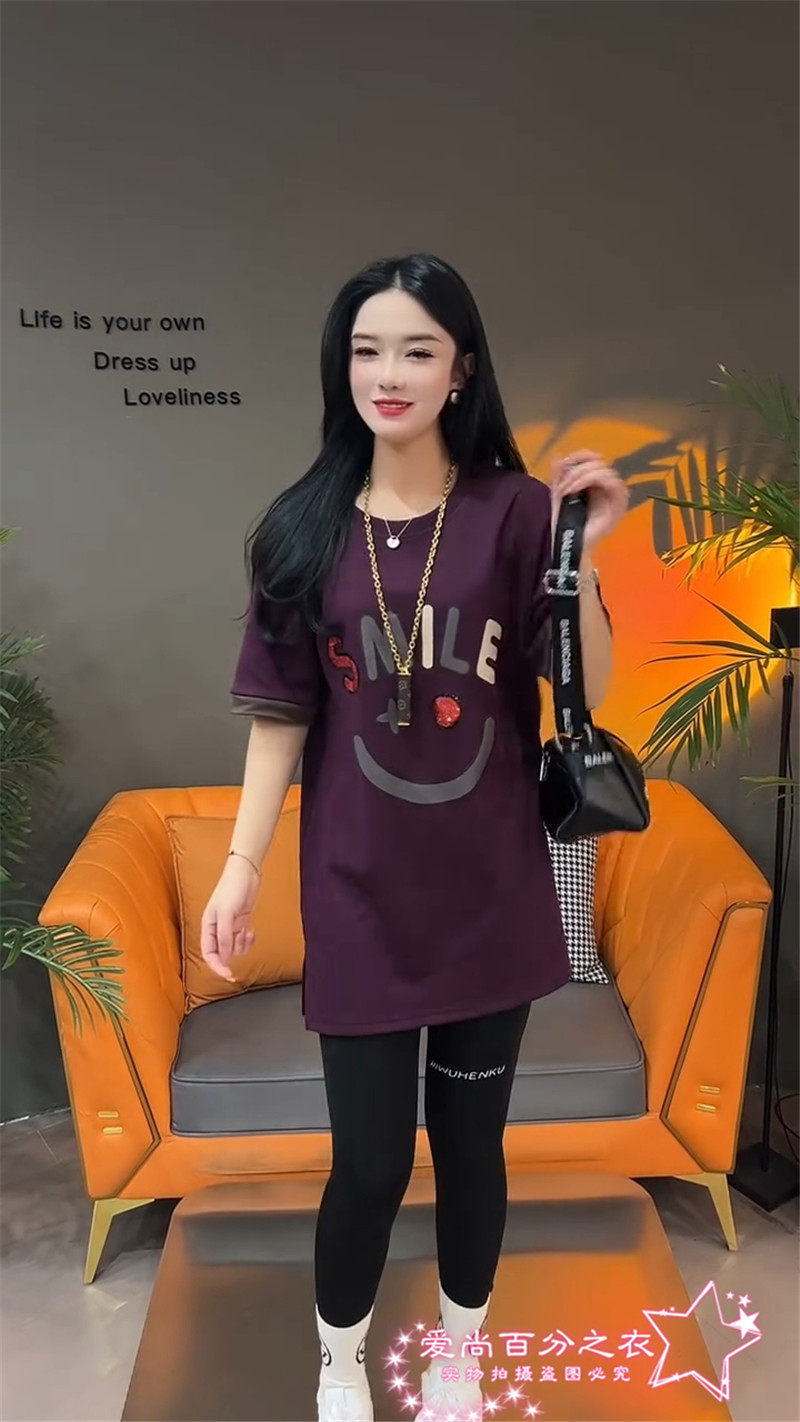 Летняя толстовка, платье с круглым воротником, футболка для отдыха, в корейском стиле, свободный крой, короткий рукав, длина миди