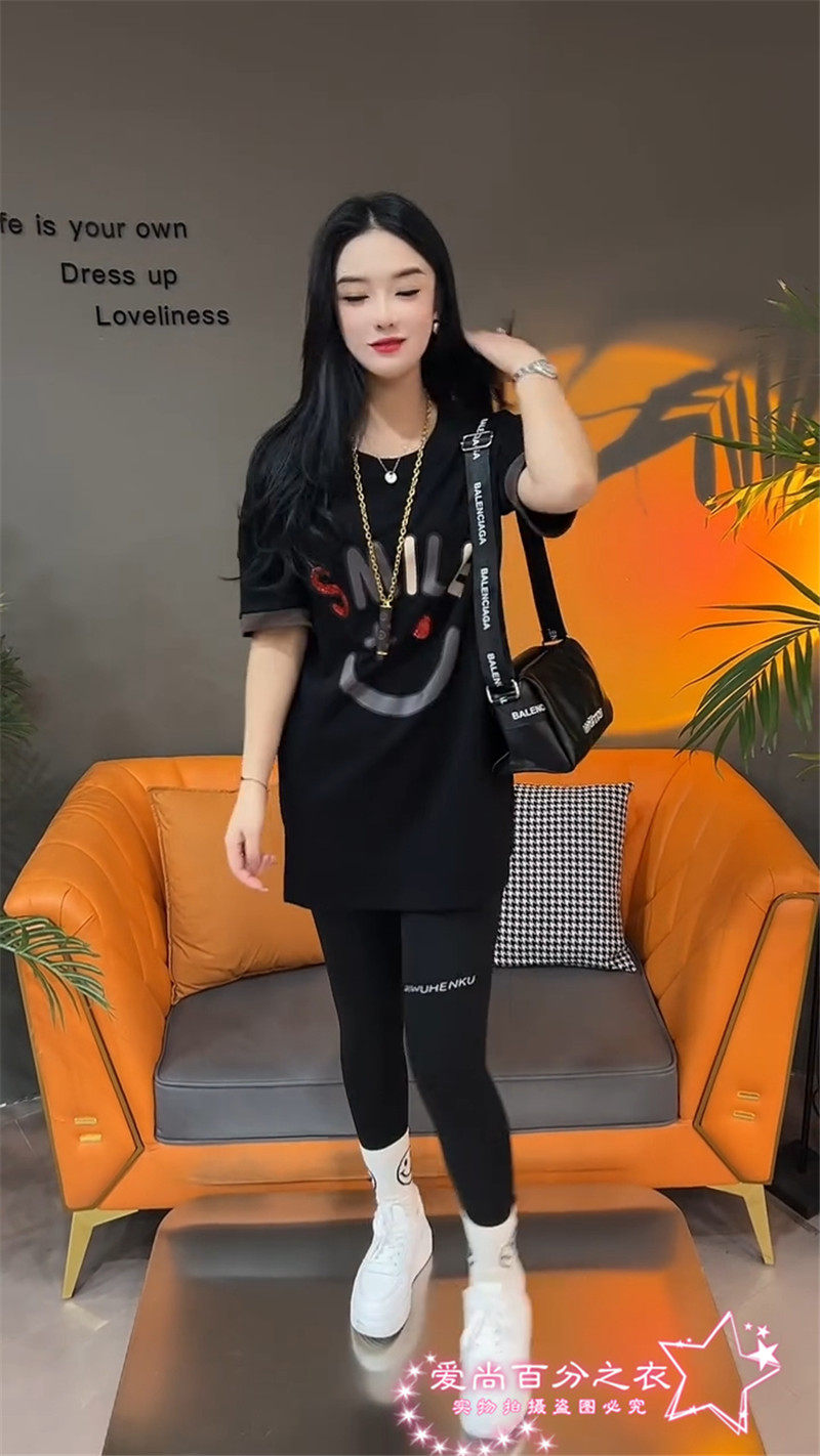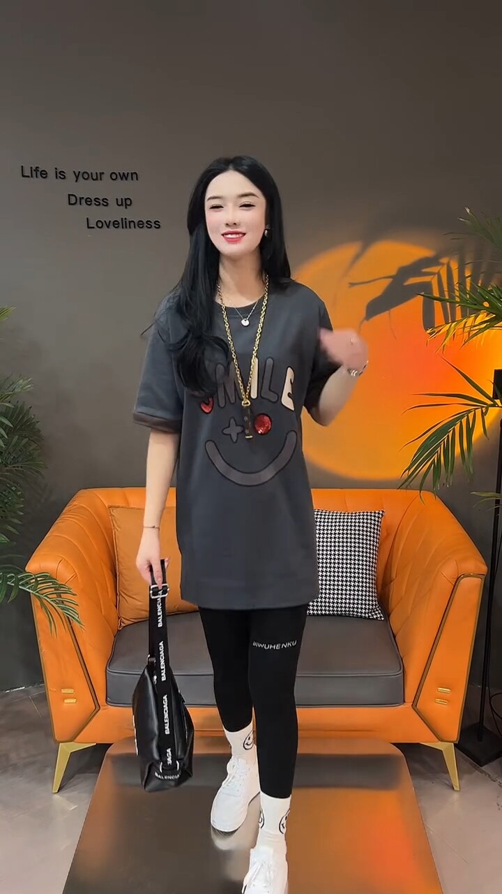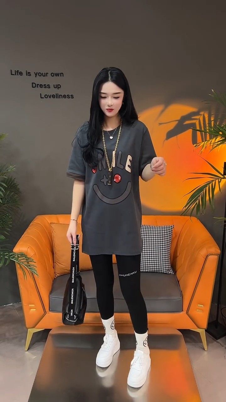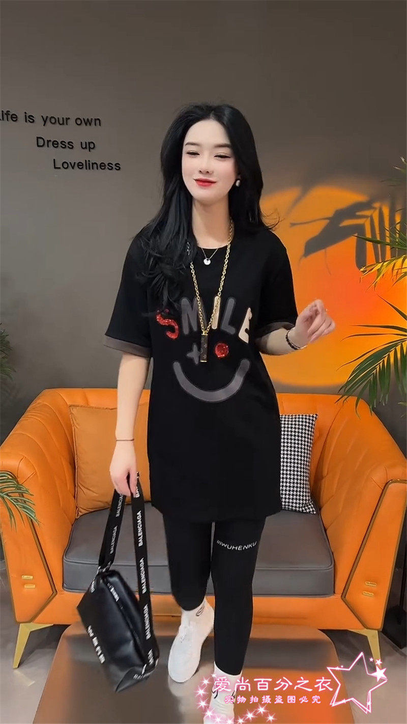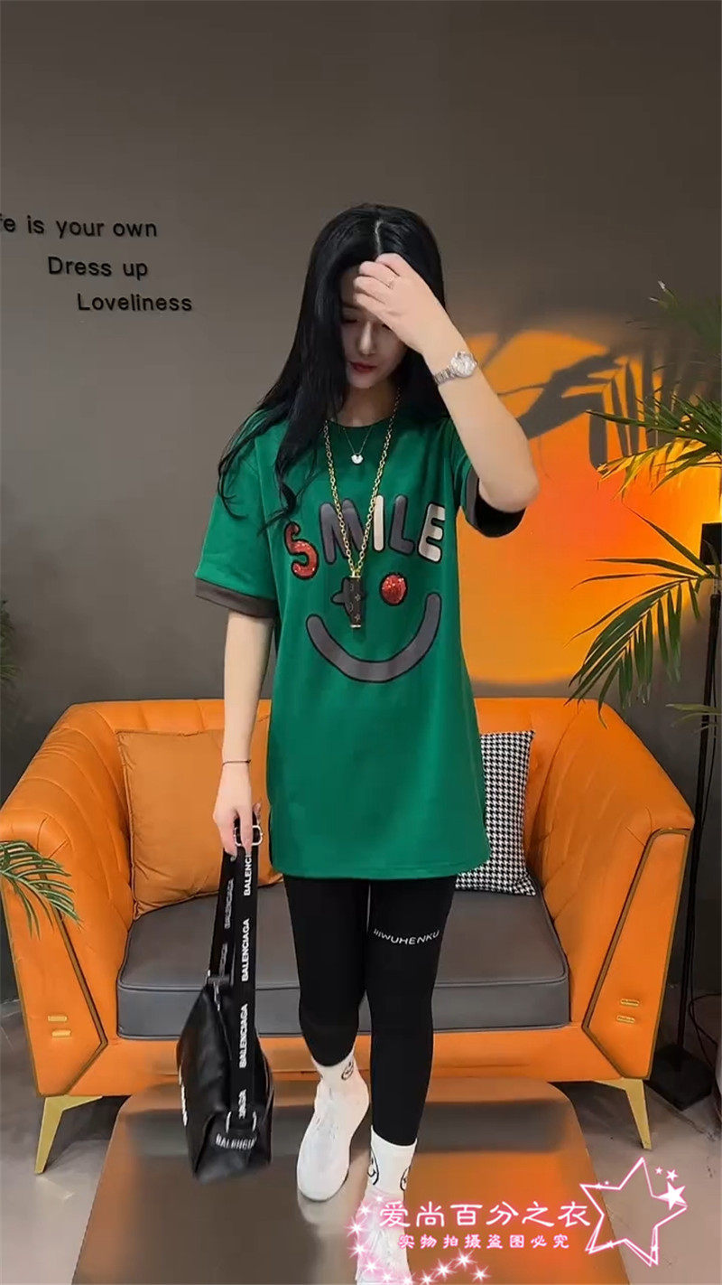 Летняя толстовка, платье с круглым воротником, футболка для отдыха, в корейском стиле, свободный крой, короткий рукав, длина миди