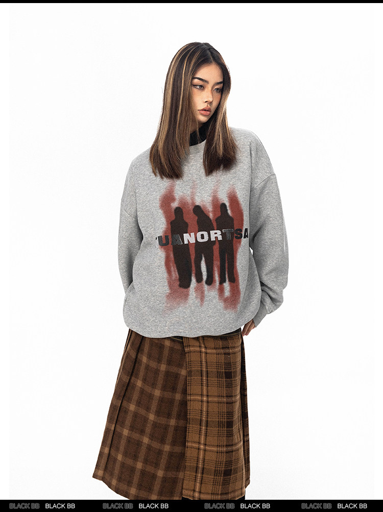 Черная осенняя толстовка с круглым воротником подходит для мужчин и женщин для отдыха, в американском стиле, оверсайз
