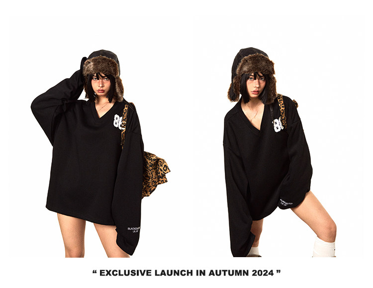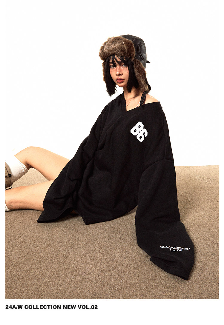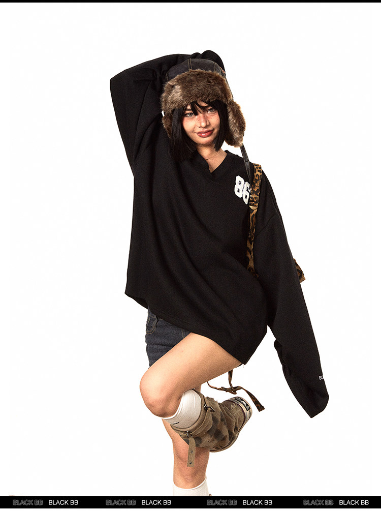 Ретро форма, осенняя длинная толстовка для отдыха, V-образный вырез, с вышивкой, свободный крой, средней длины