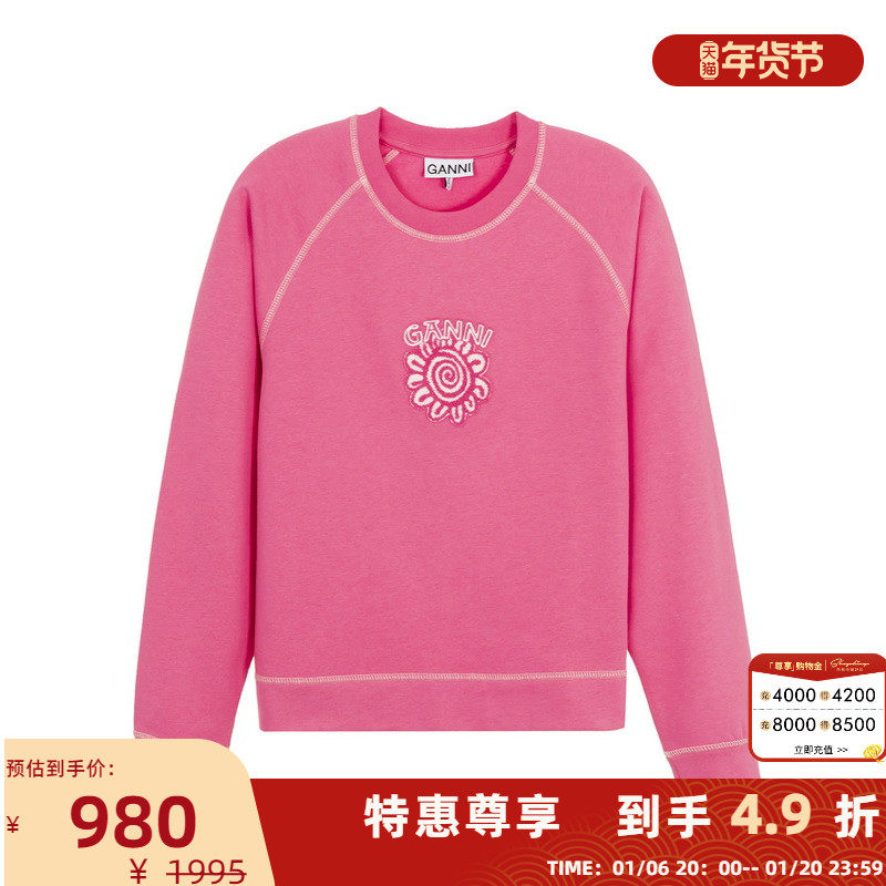 GANNI Осенне-зимний однотонный повседневный женский пуловер с принтом, толстовка универмага Yintai, бутик 301574
