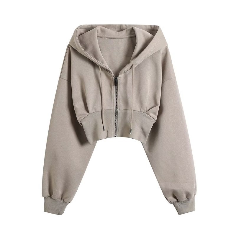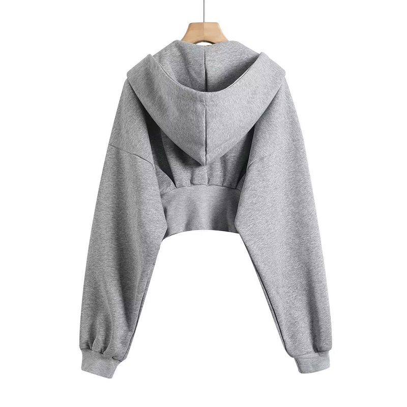 Короткий лонгслив, осенняя толстовка с капюшоном, приталенный корсет, куртка с молнией, европейский стиль, высокая талия