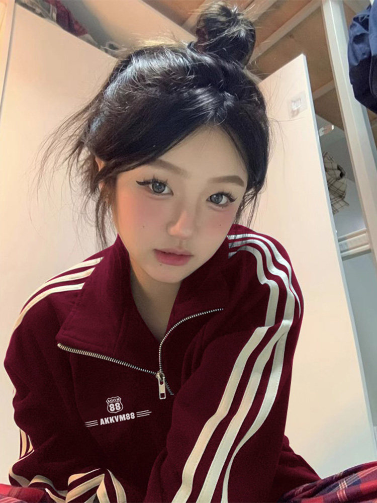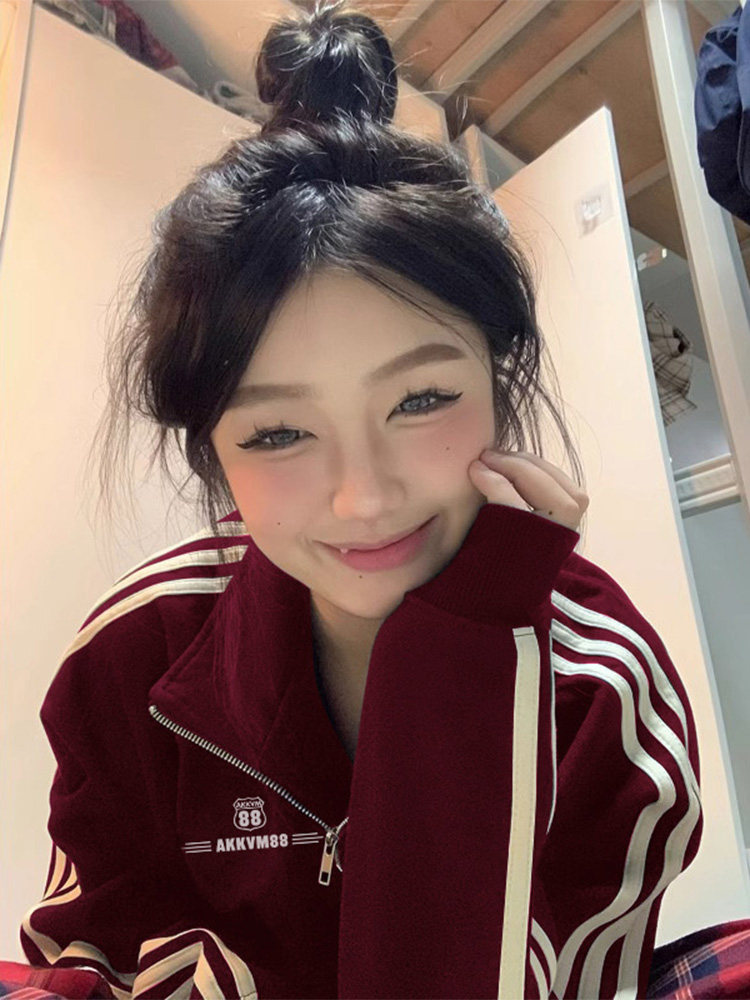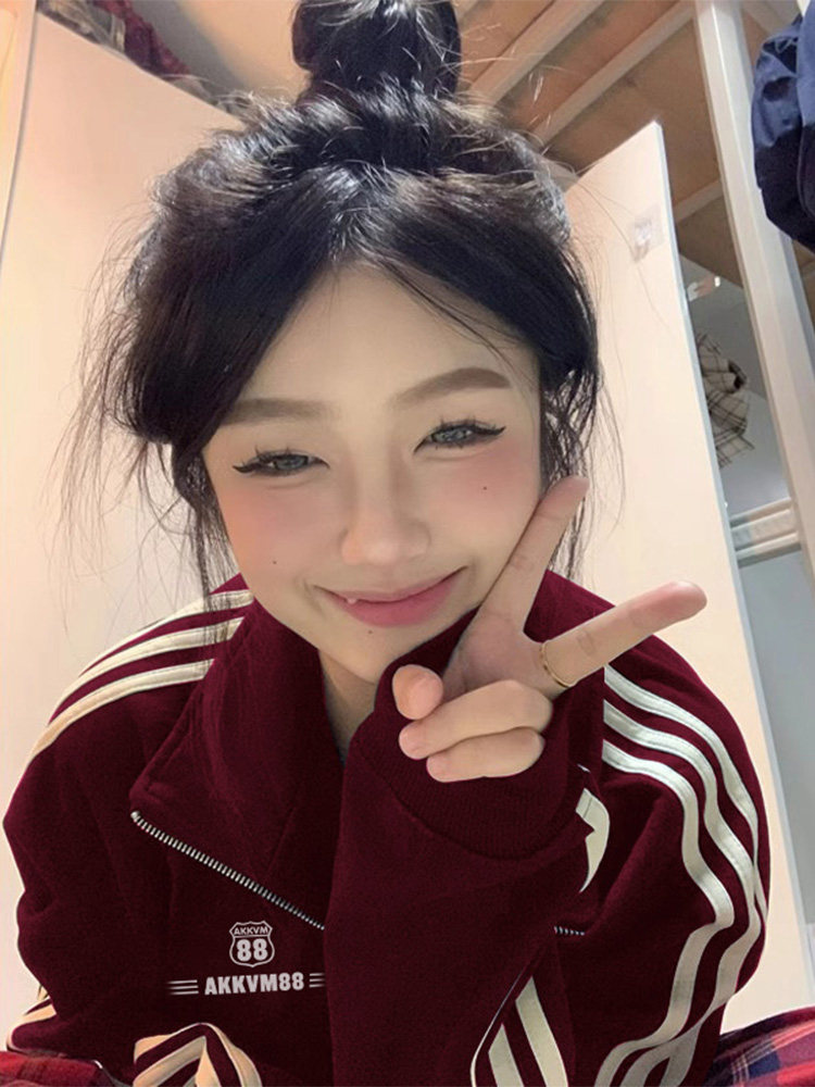 Бордовая толстовка с молнией, осенняя куртка, оверсайз, свободный крой, на молнии