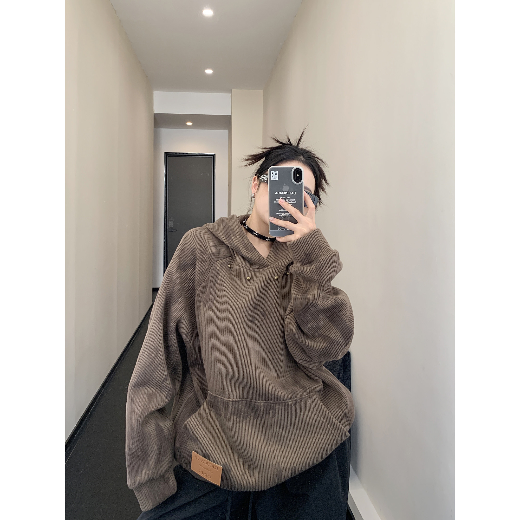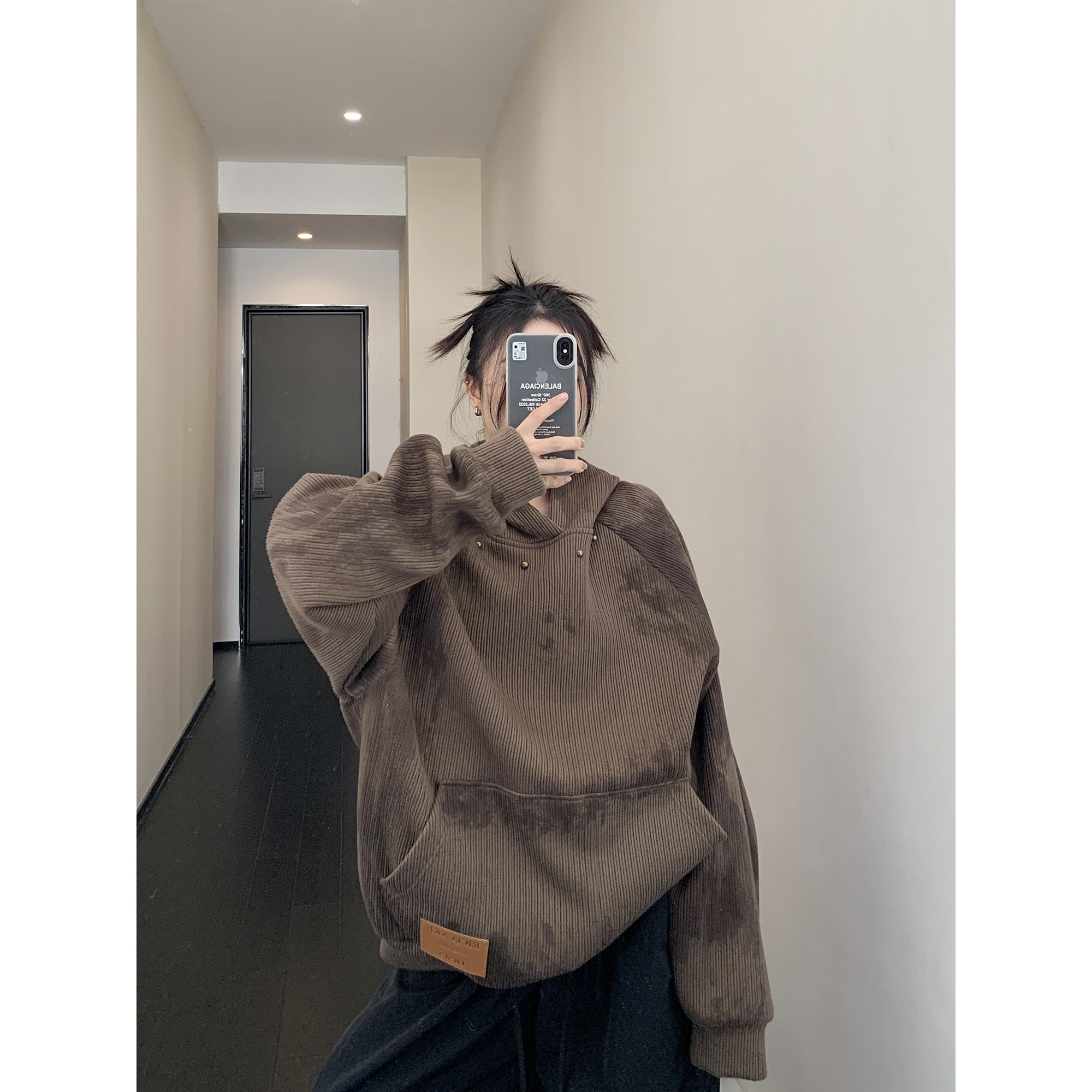 Осенний ретро лонгслив, толстовка с капюшоном, в американском стиле, свободный крой, изысканный стиль, для влюбленных
