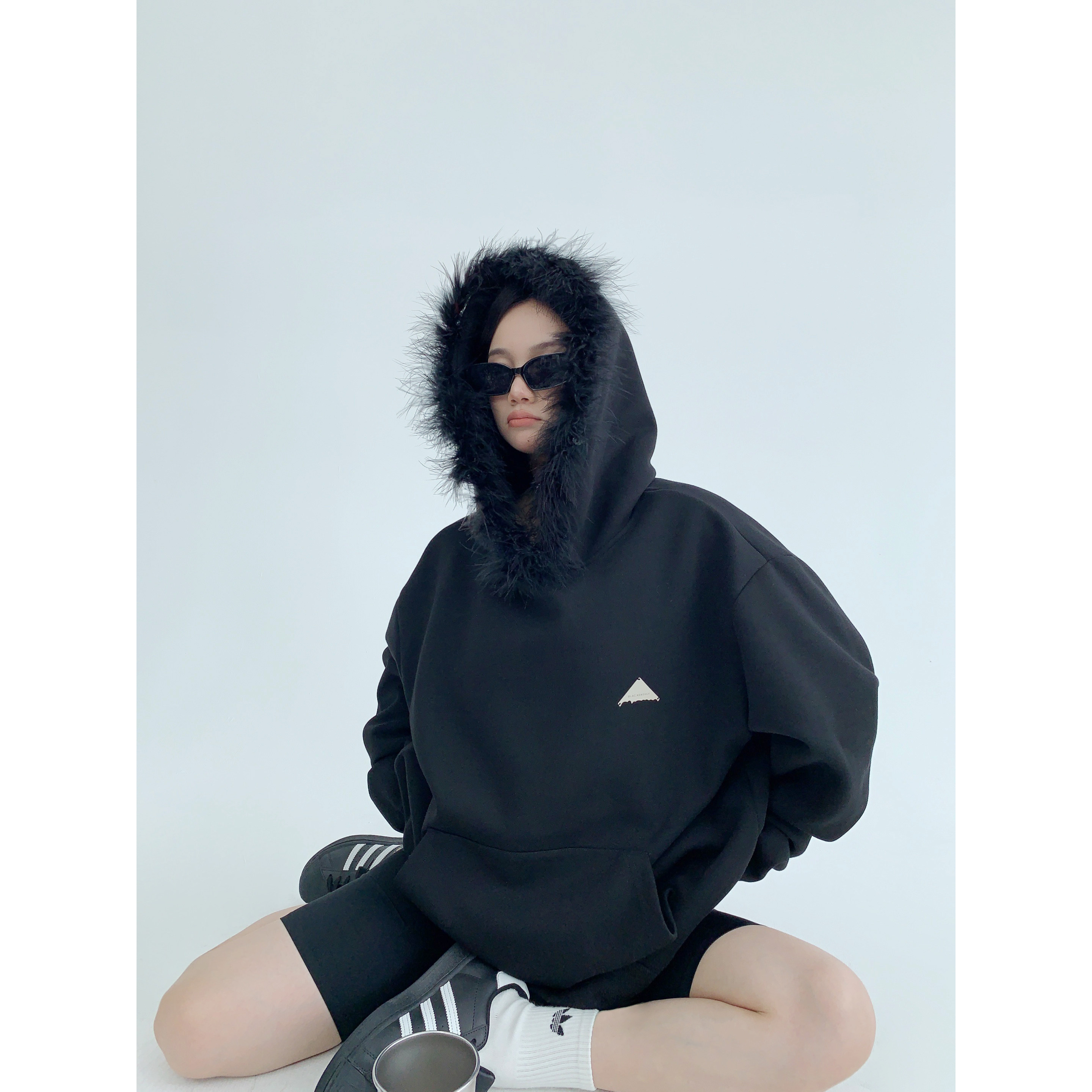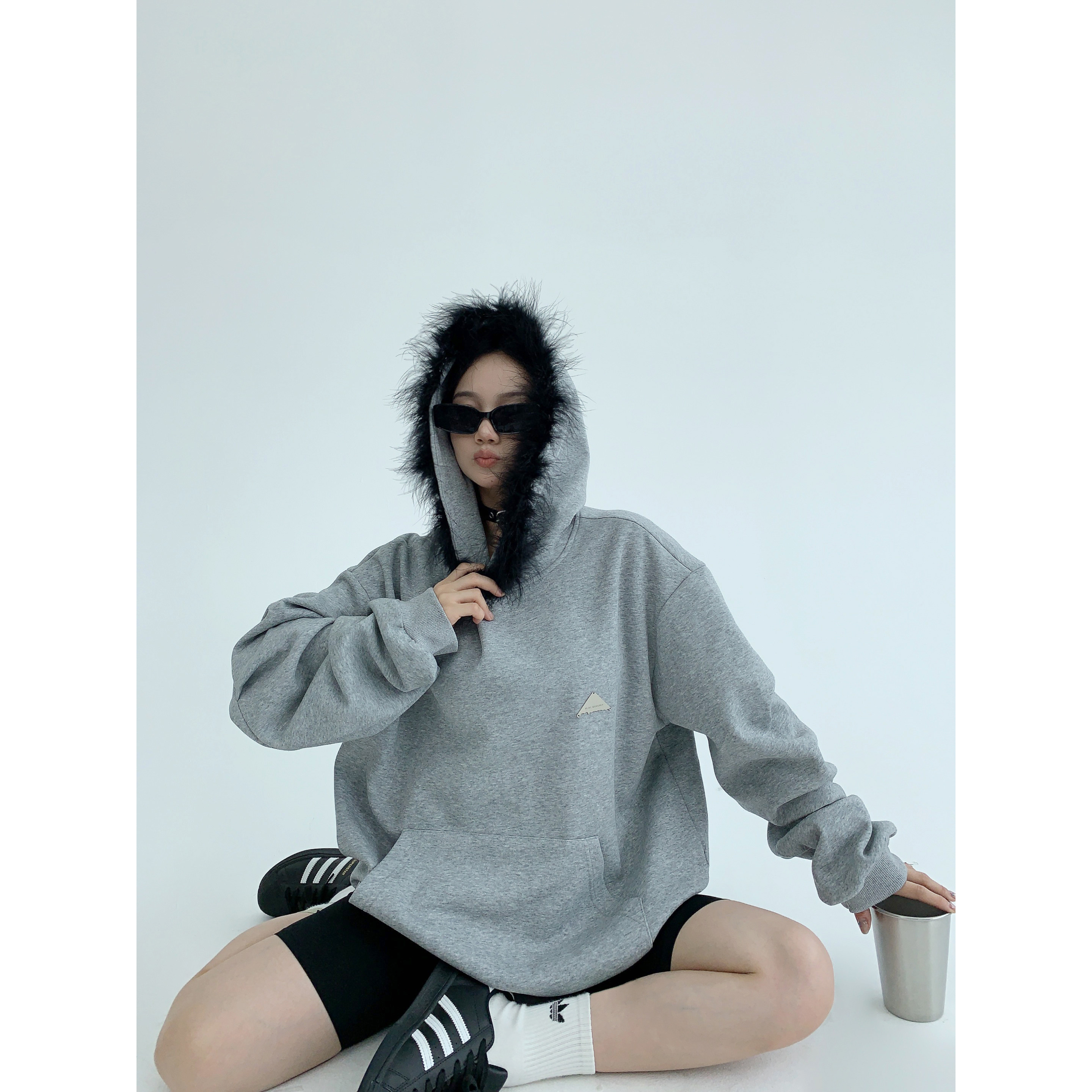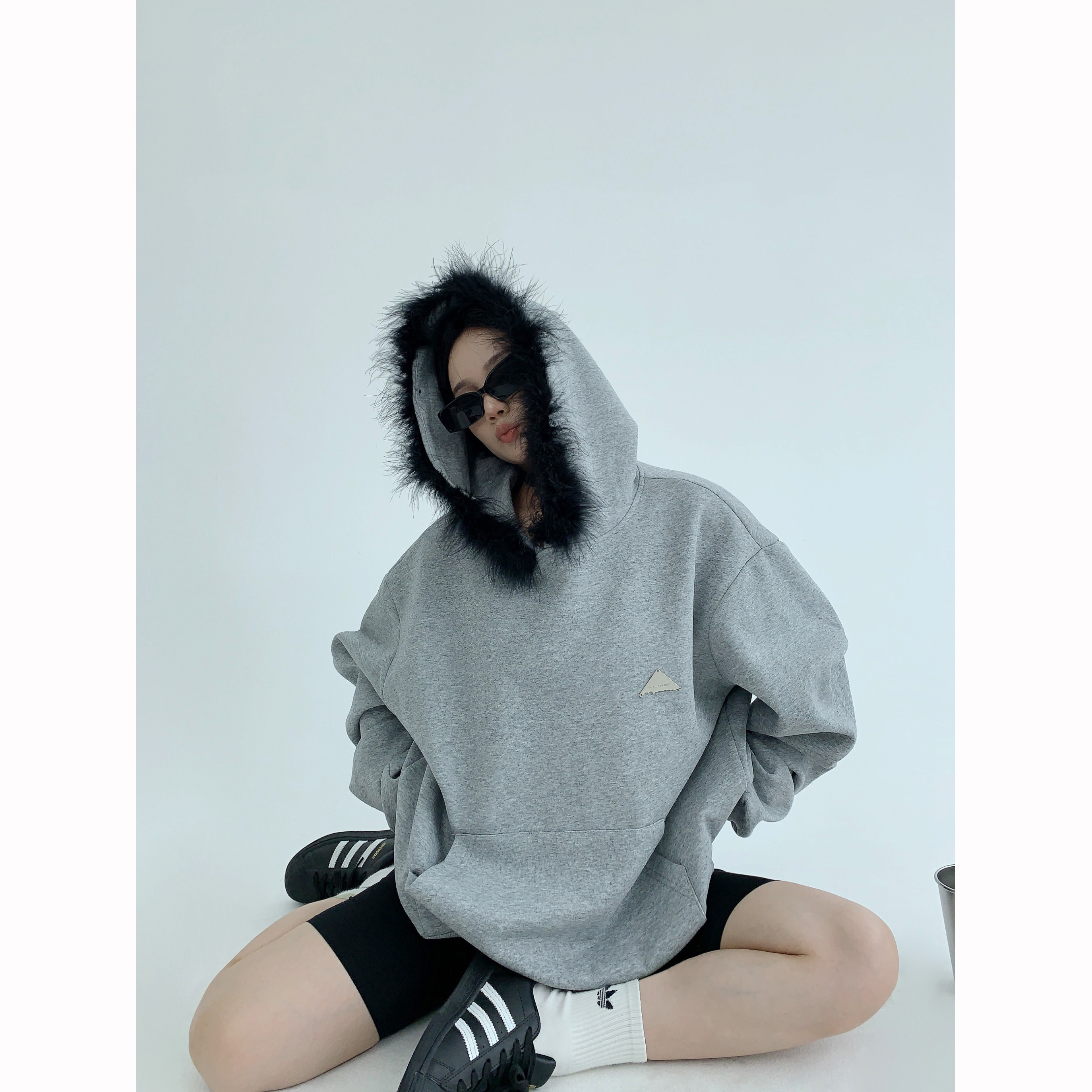 Осенняя небольшая дизайнерская ретро короткая толстовка с капюшоном, в американском стиле, тренд сезона, свободный крой, для влюбленных