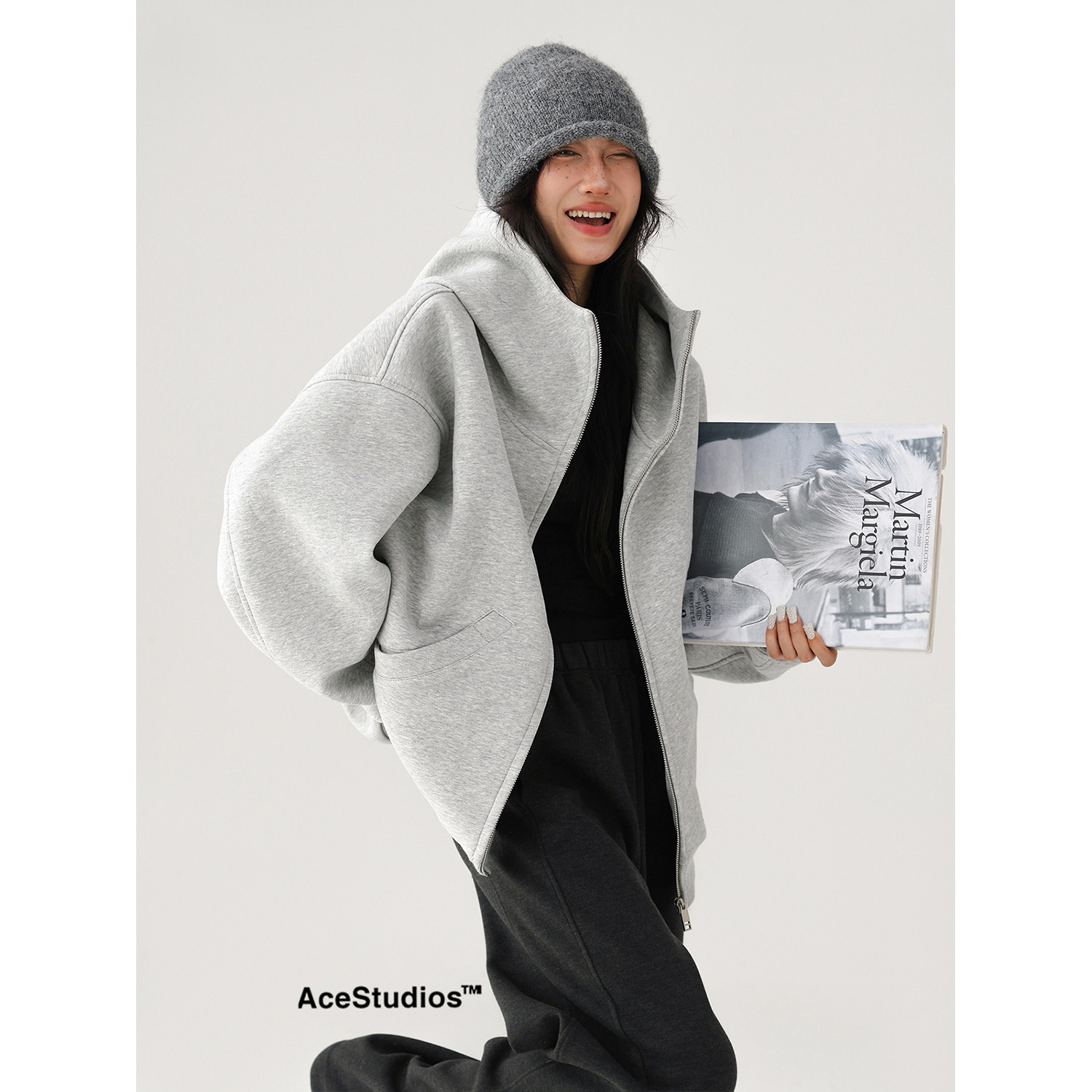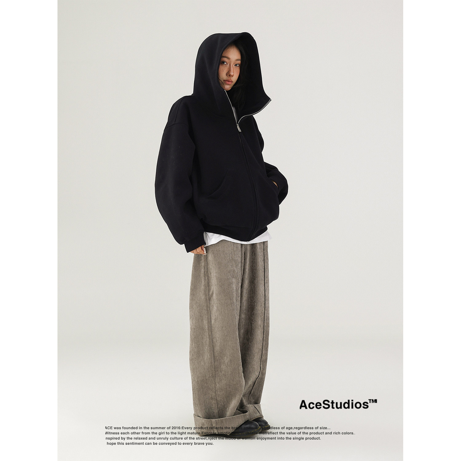 Acestudios осенне-зимняя женская футболка из утолщенного хлопка с капюшоном и открытым 𫔭рубашкой в американском ретро уличном стиле высокого класса