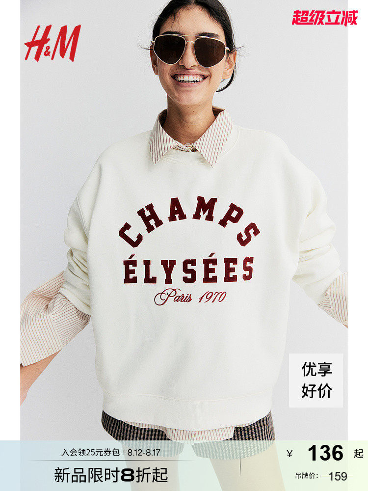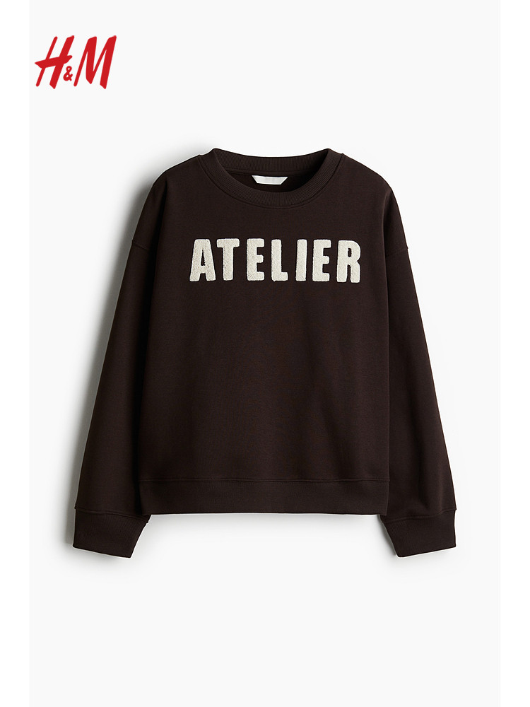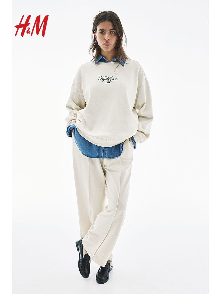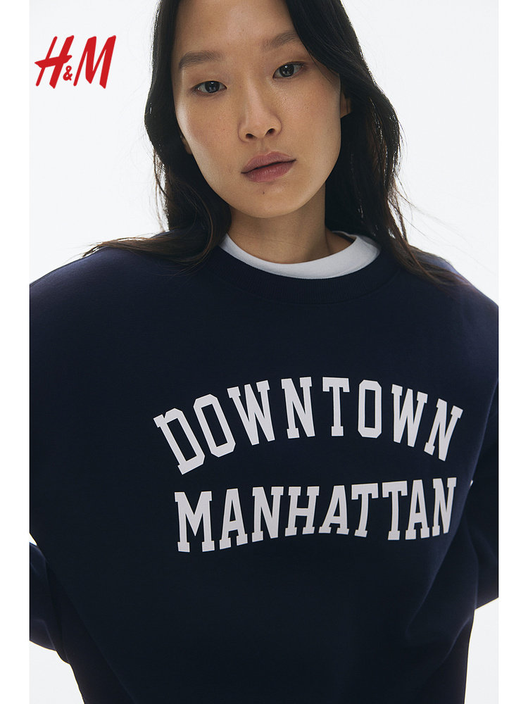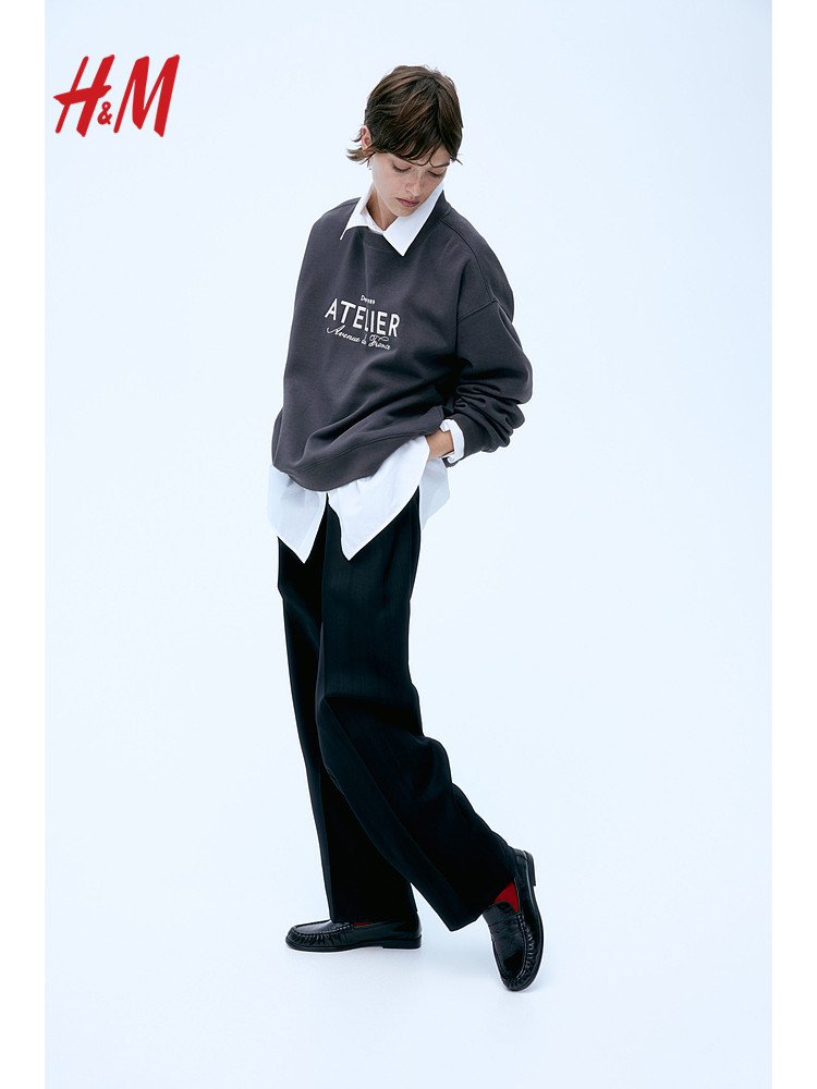 Женская толстовка HM 2025 Осень Осень Новый ленивый стиль круглая шея с теплым принтом. Пуловой 1267555