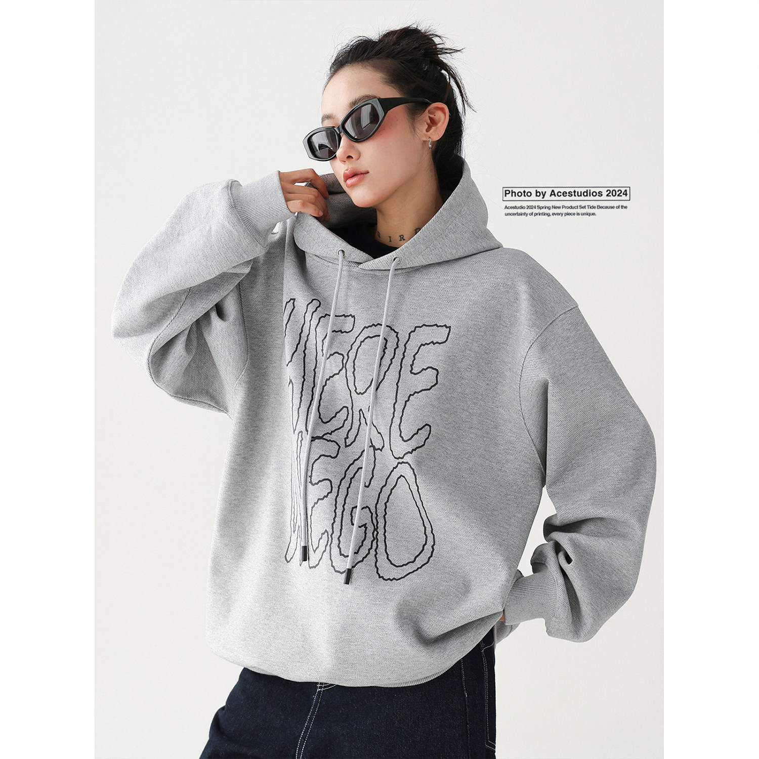 Acestudios Повседневный пуловер с капюшоном и шнурком в стиле ретро 300 г, толстовка с принтом для мужчин и женщин