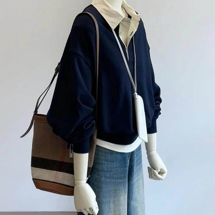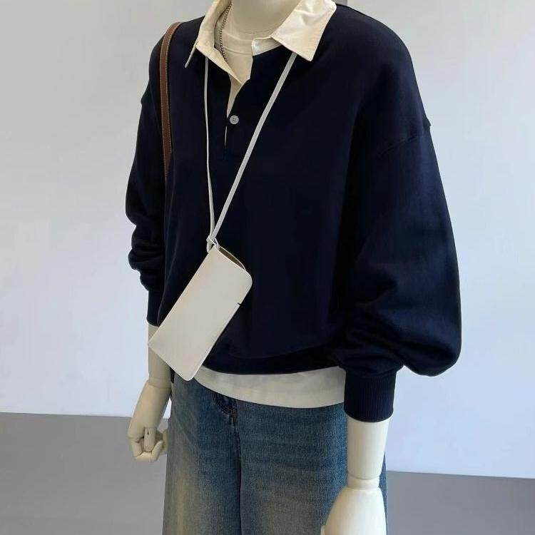 Комплект, осенняя толстовка, лонгслив, воротник поло, оверсайз