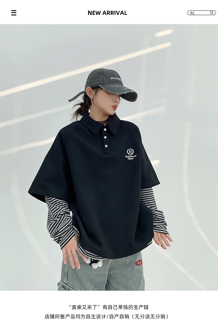 Весенний небольшой дизайнерский комплект, свитшот, ретро куртка, с вышивкой, воротник поло, свободный крой