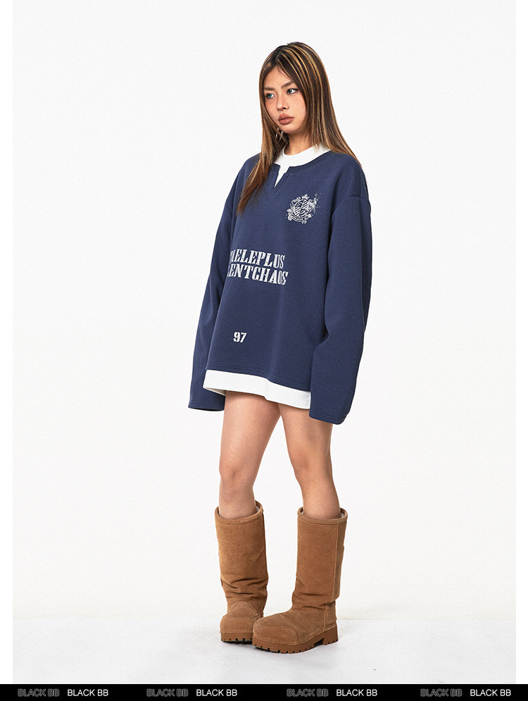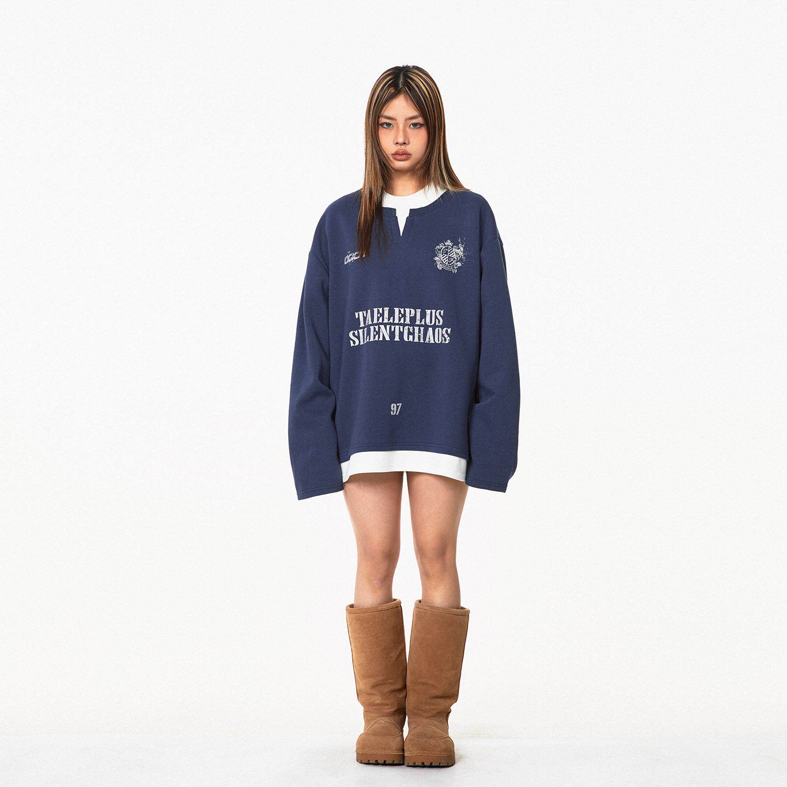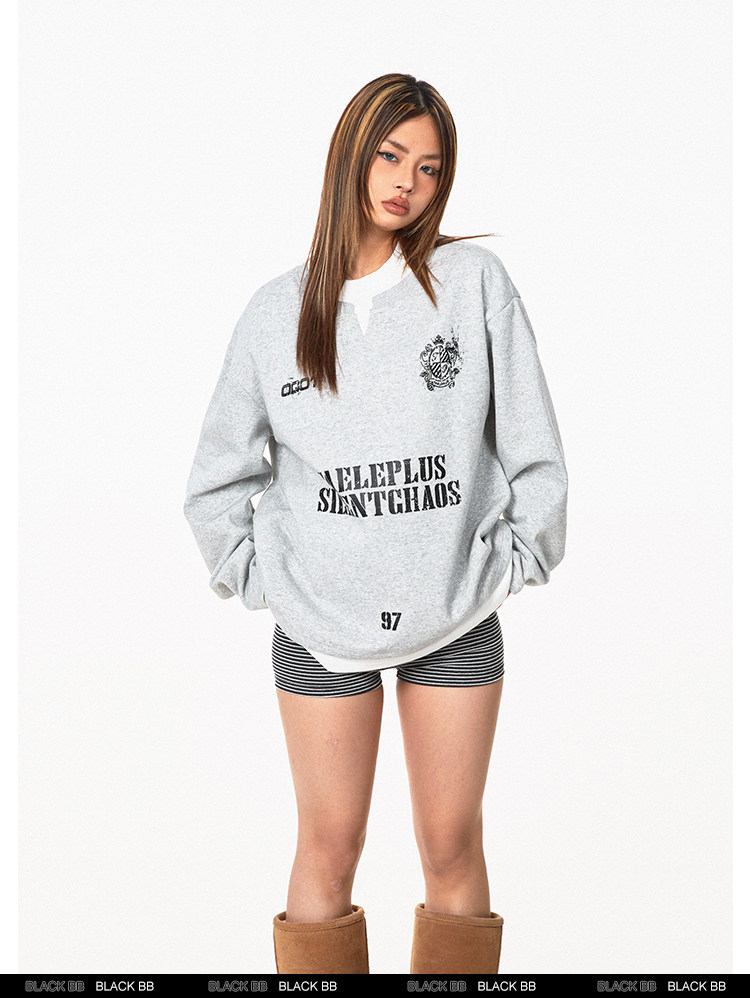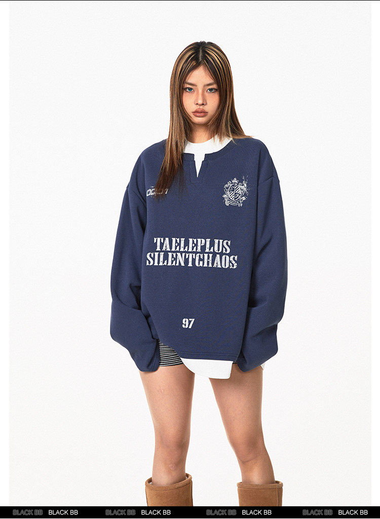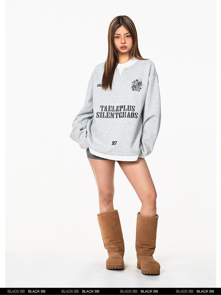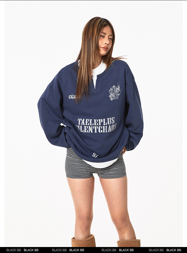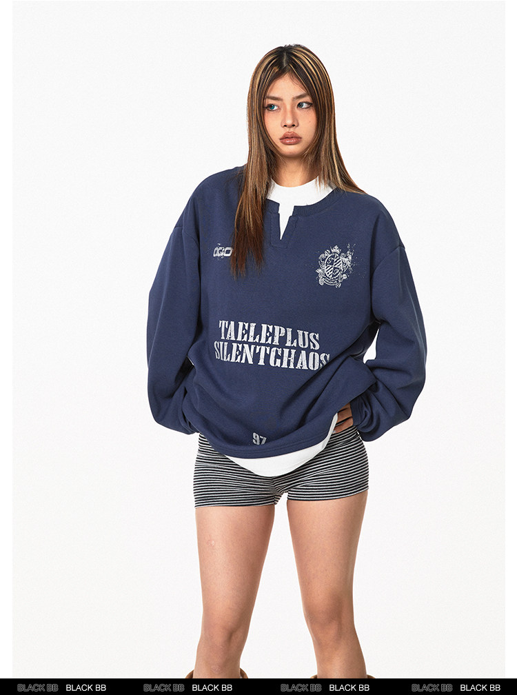 Ретро комплект, лонгслив с буквами, толстовка, в американском стиле, ручная роспись, V-образный вырез