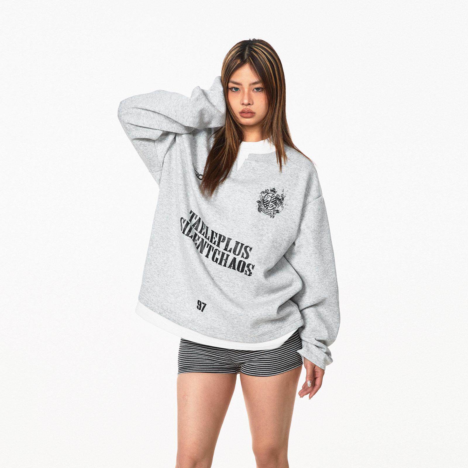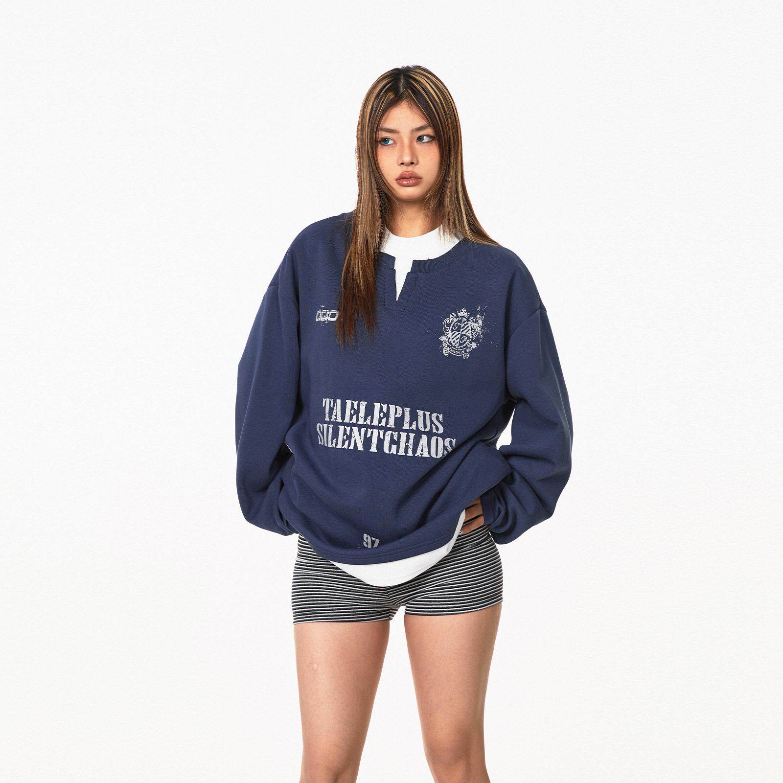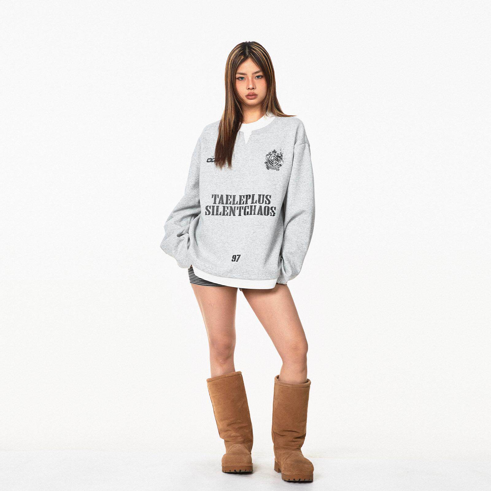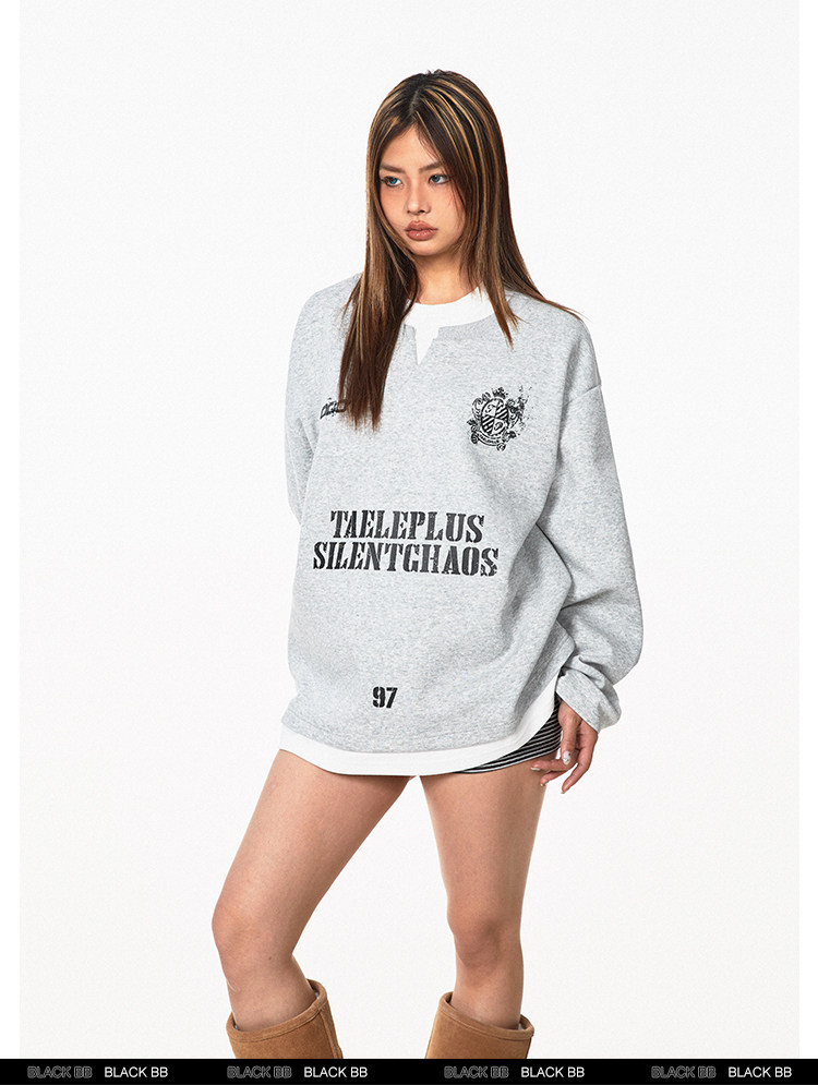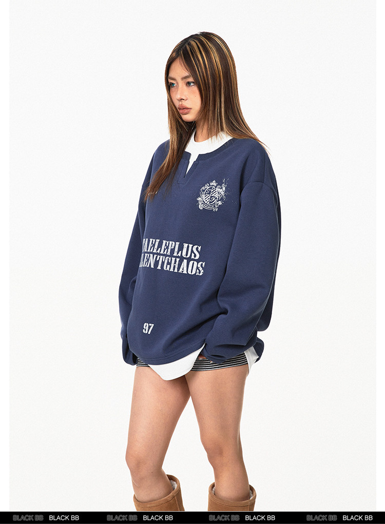 Ретро комплект, лонгслив с буквами, толстовка, в американском стиле, ручная роспись, V-образный вырез