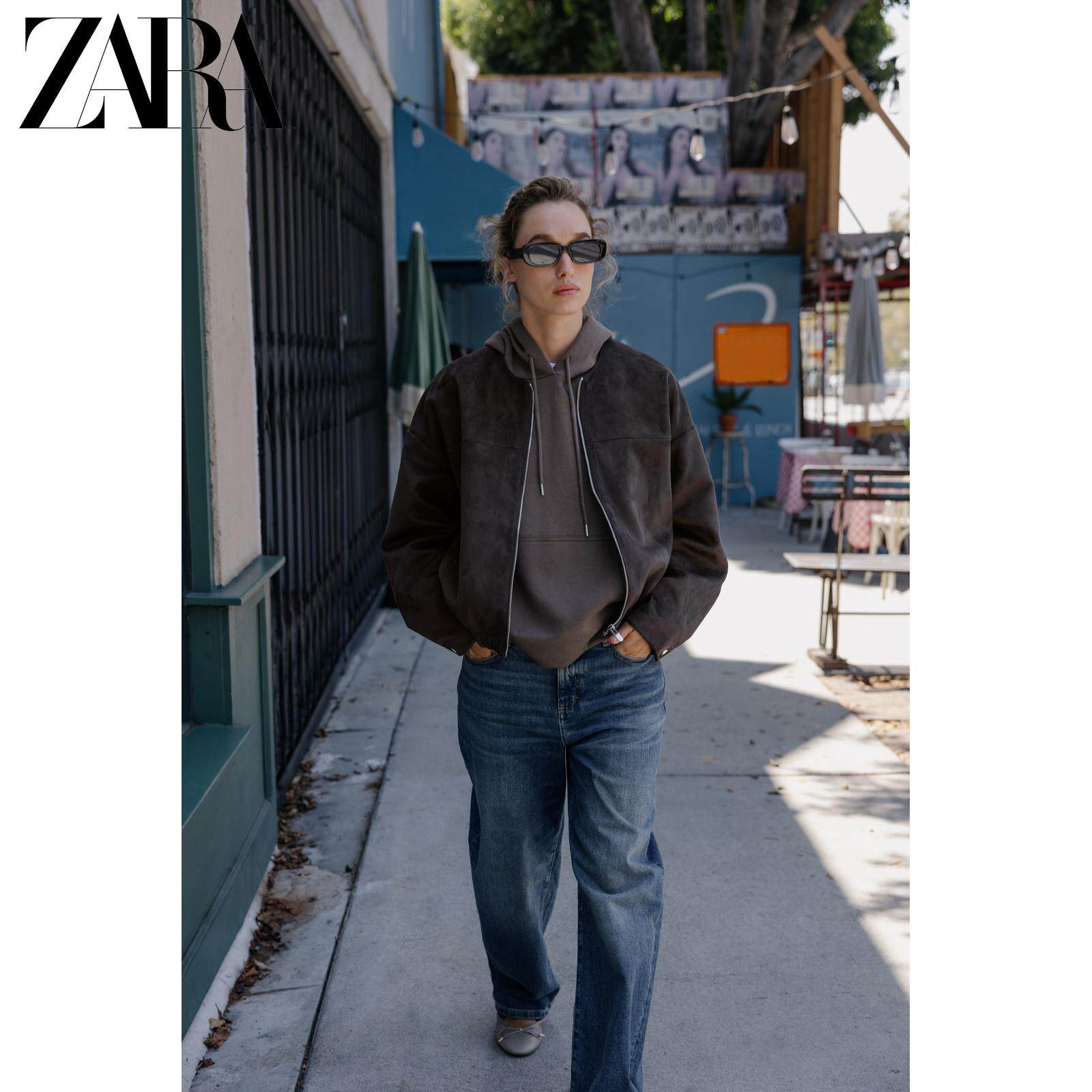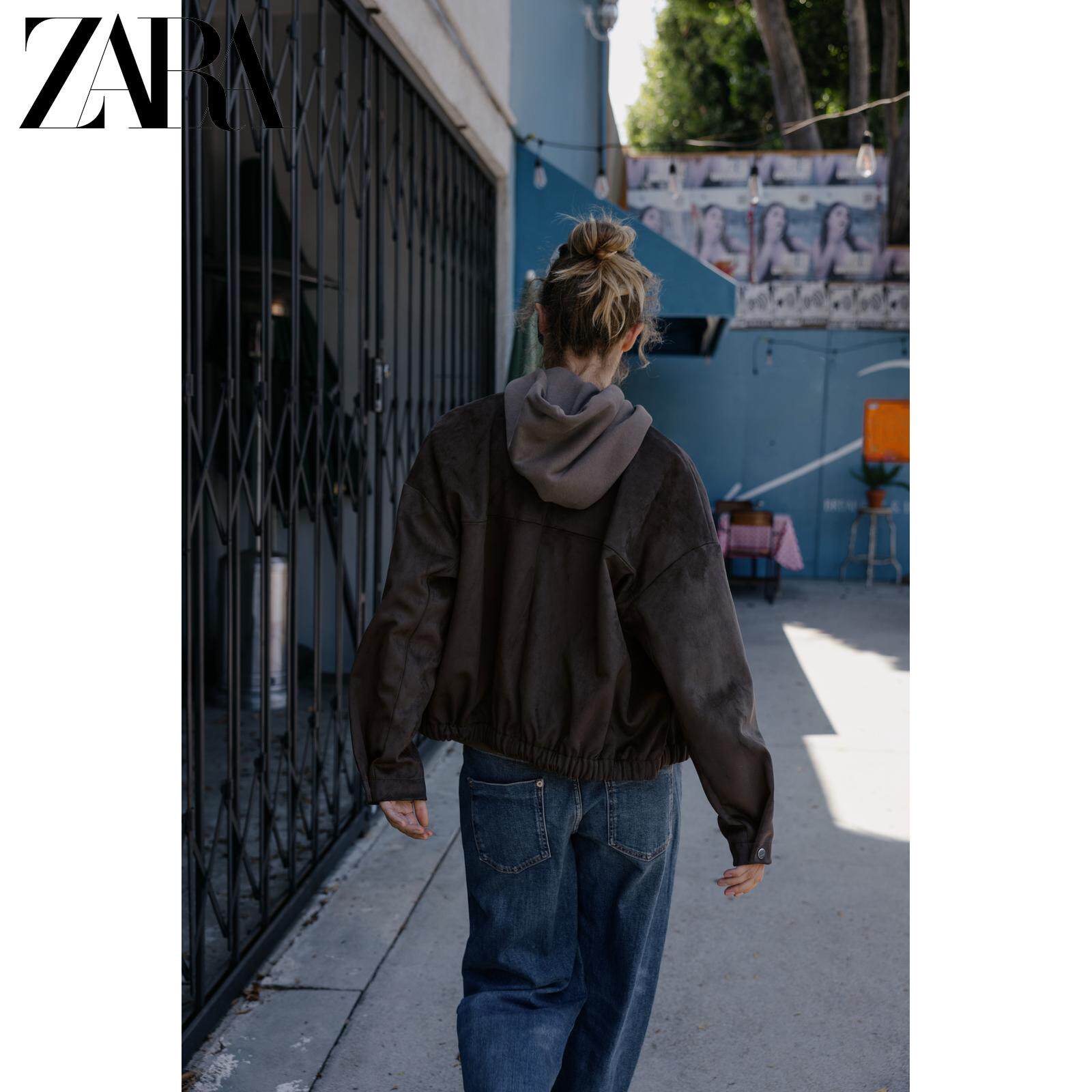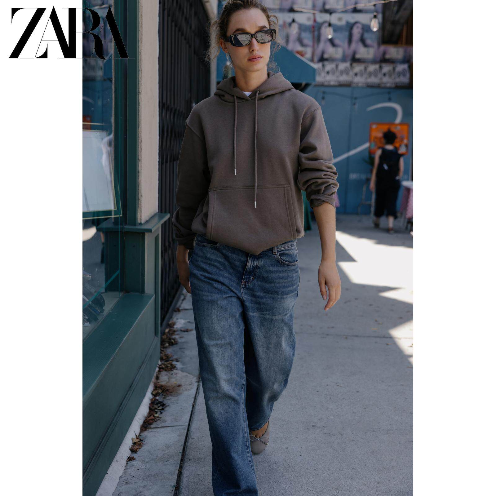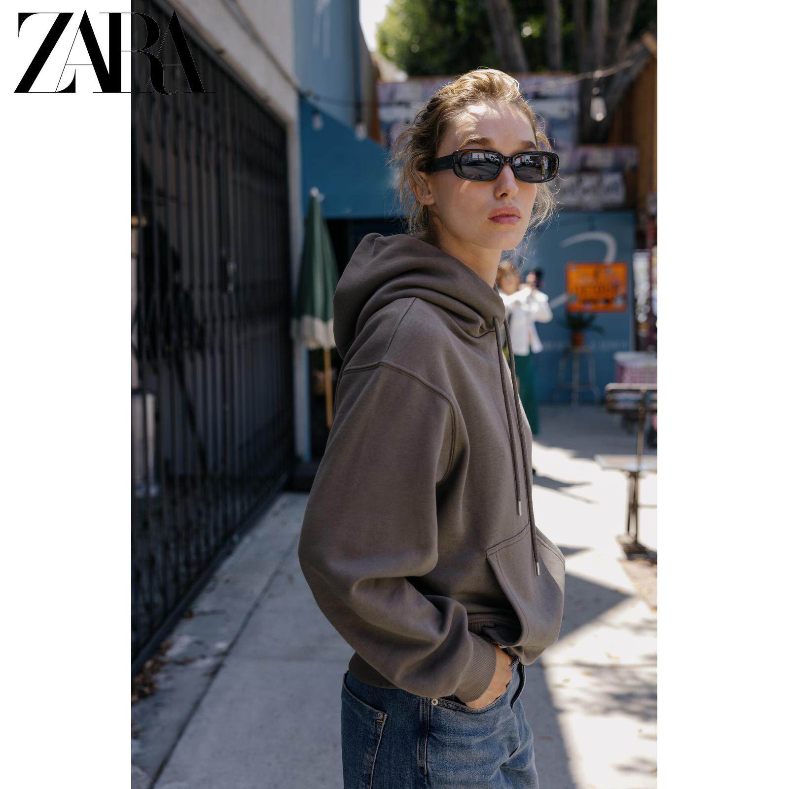 ZARA Новое поступление осени 2025, женская свободная базовая толстовка с капюшоном с круглым вырезом и длинными рукавами 3199630 706