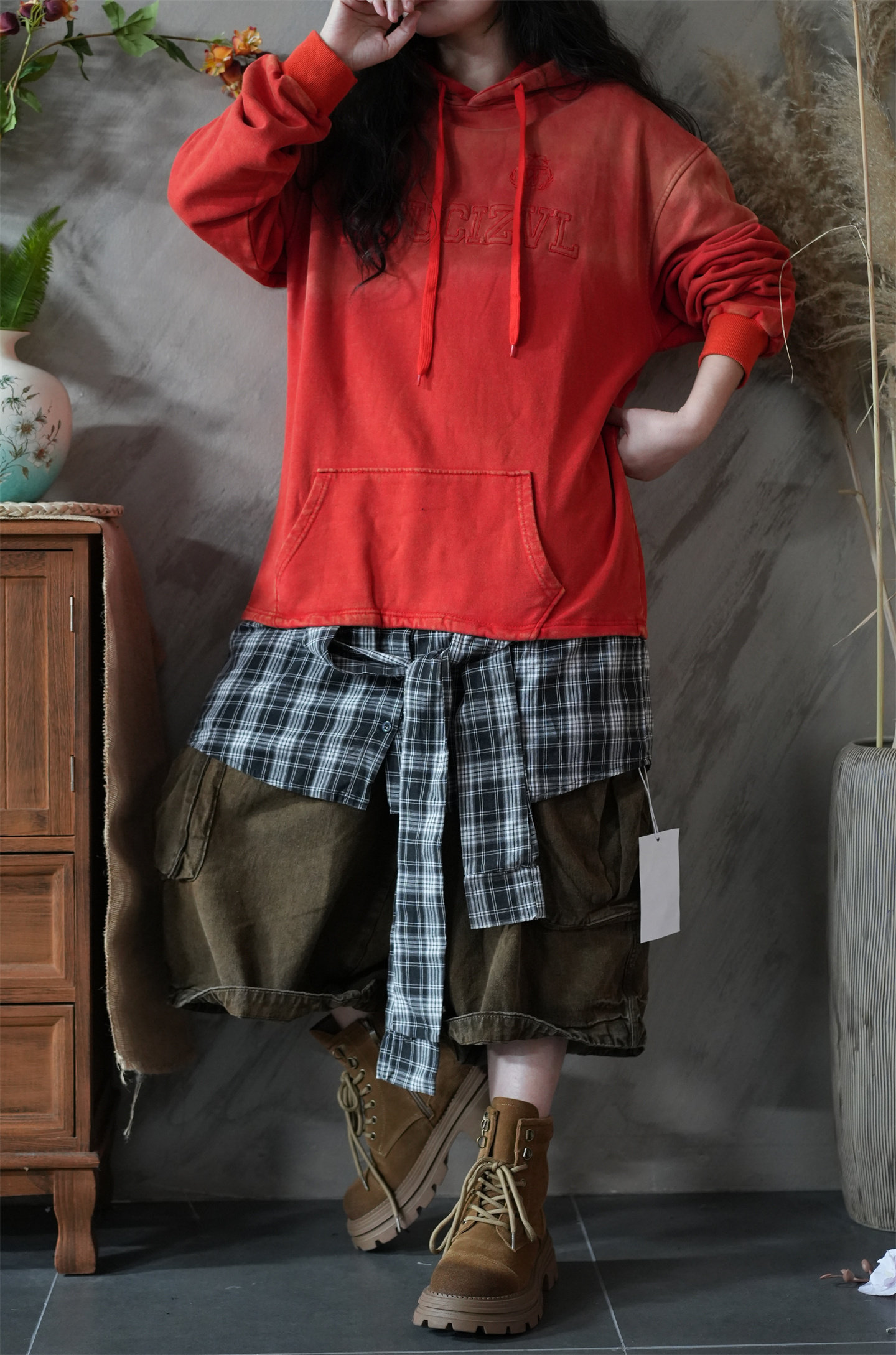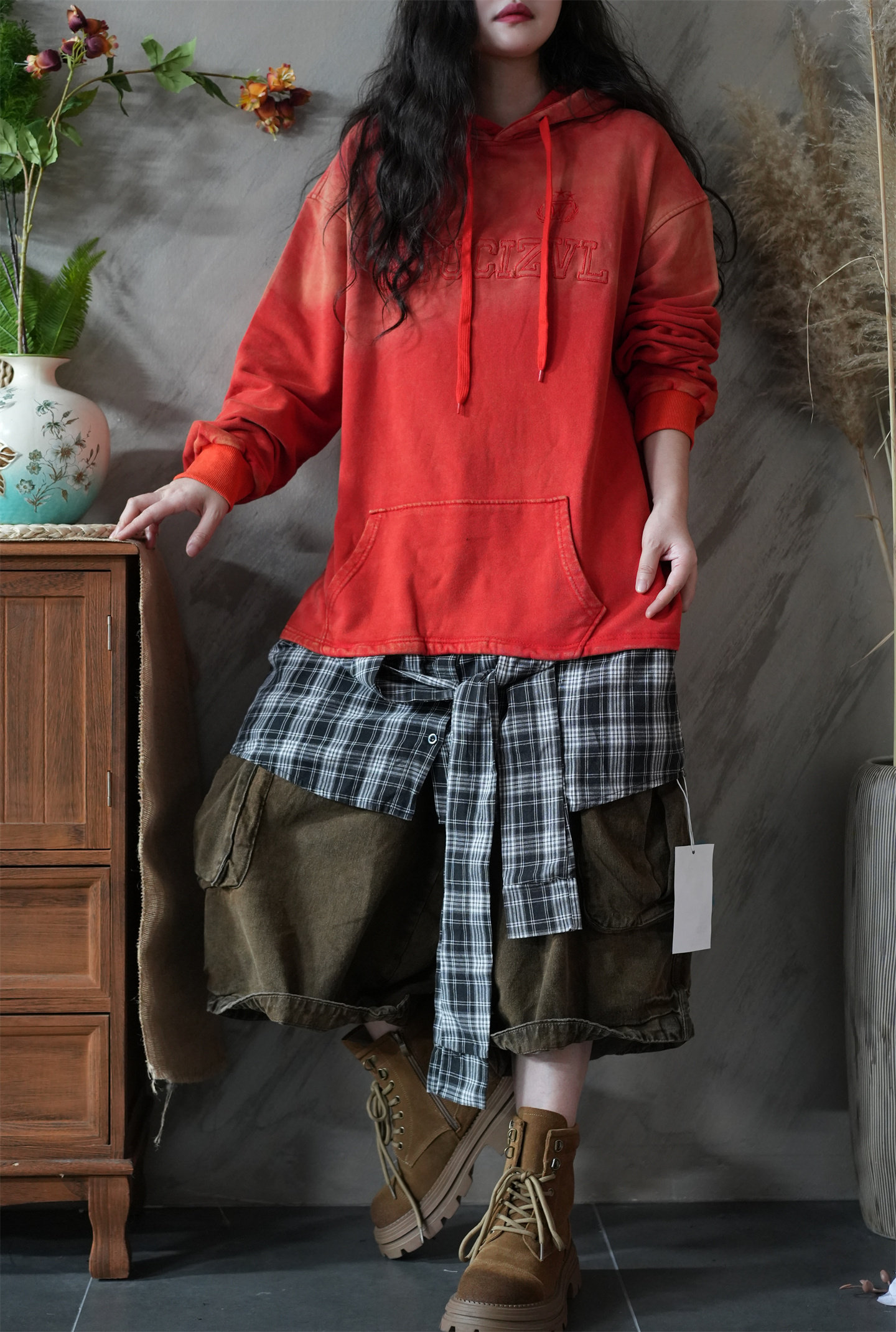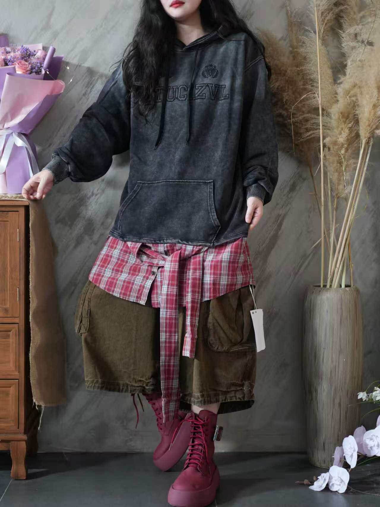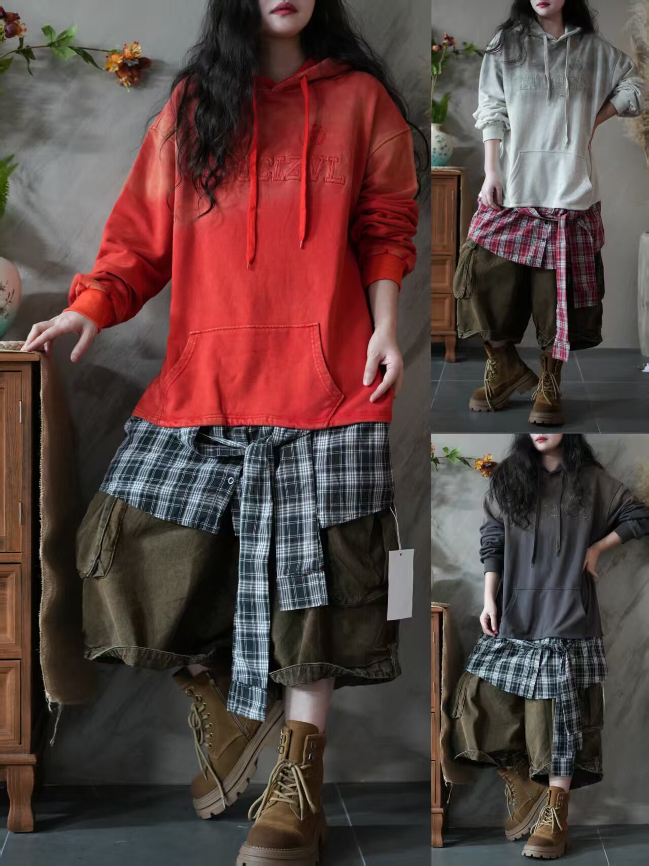 Длинная толстовка с капюшоном, градиент, оверсайз, средней длины