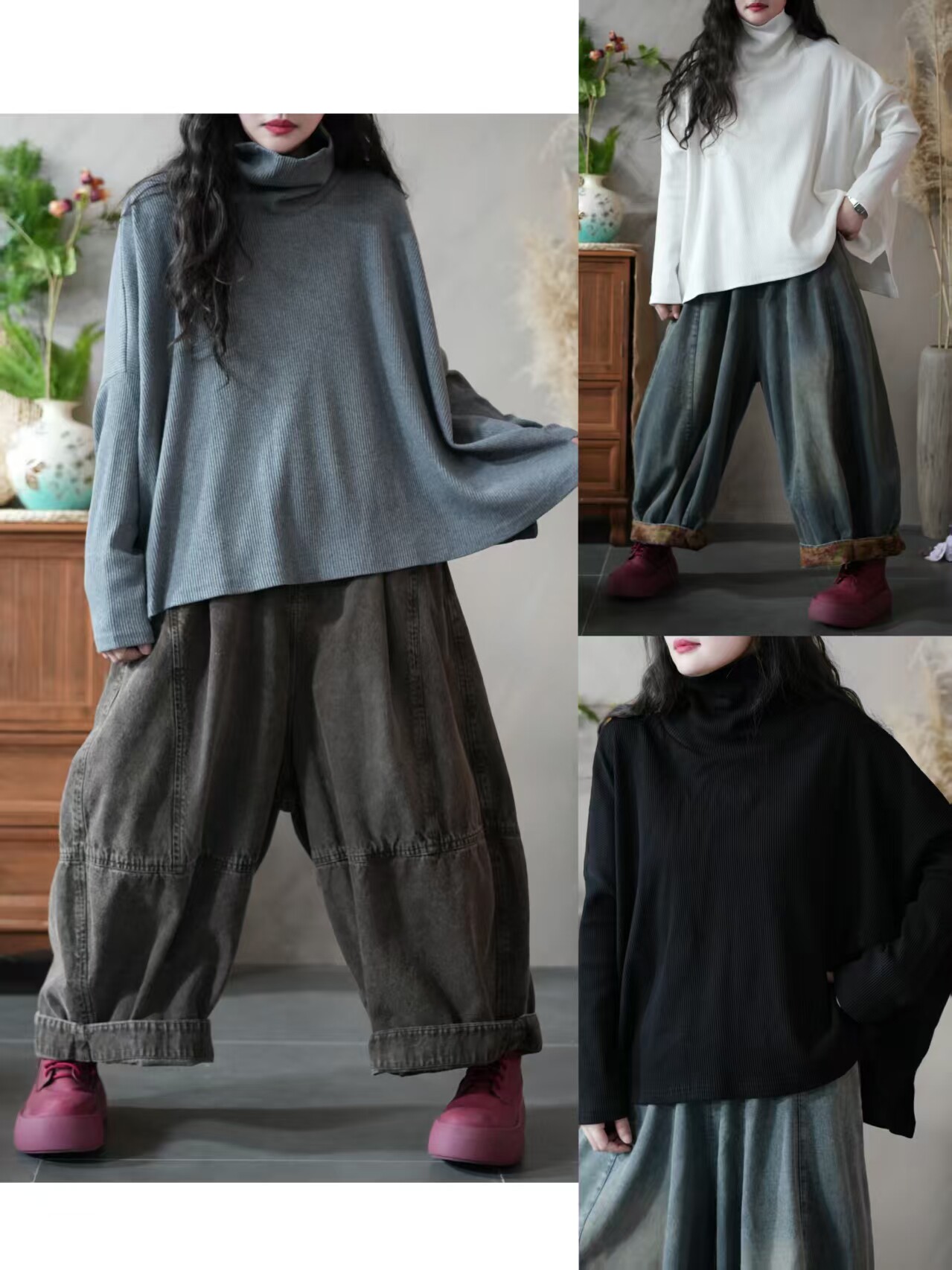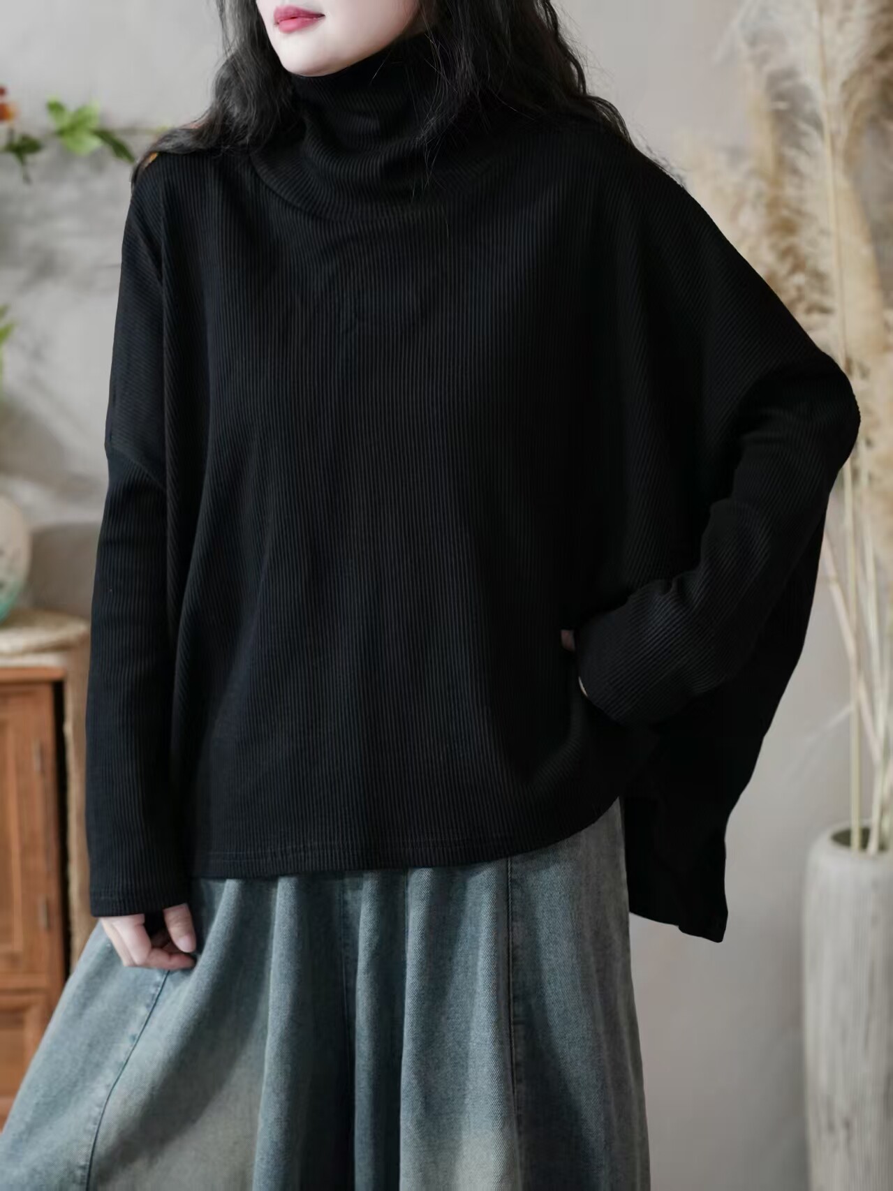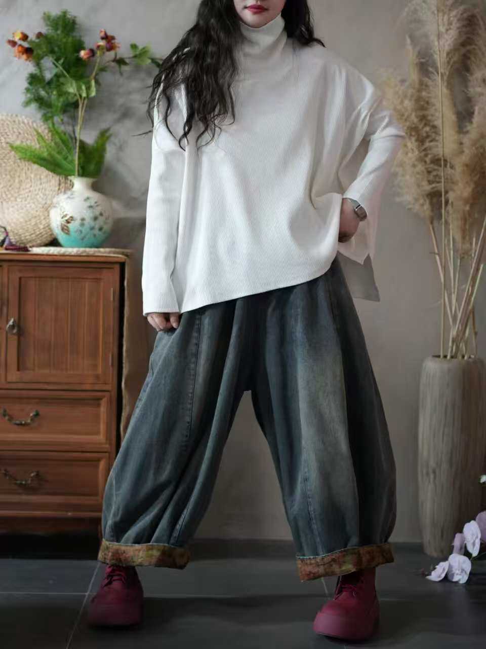 Большой вариант женской одежды осень 2025 года, новый фасон для полных девушек, свободный и стройный, универсальный пуловер, высокий воротник, низ футболки, повседневный и удобный.