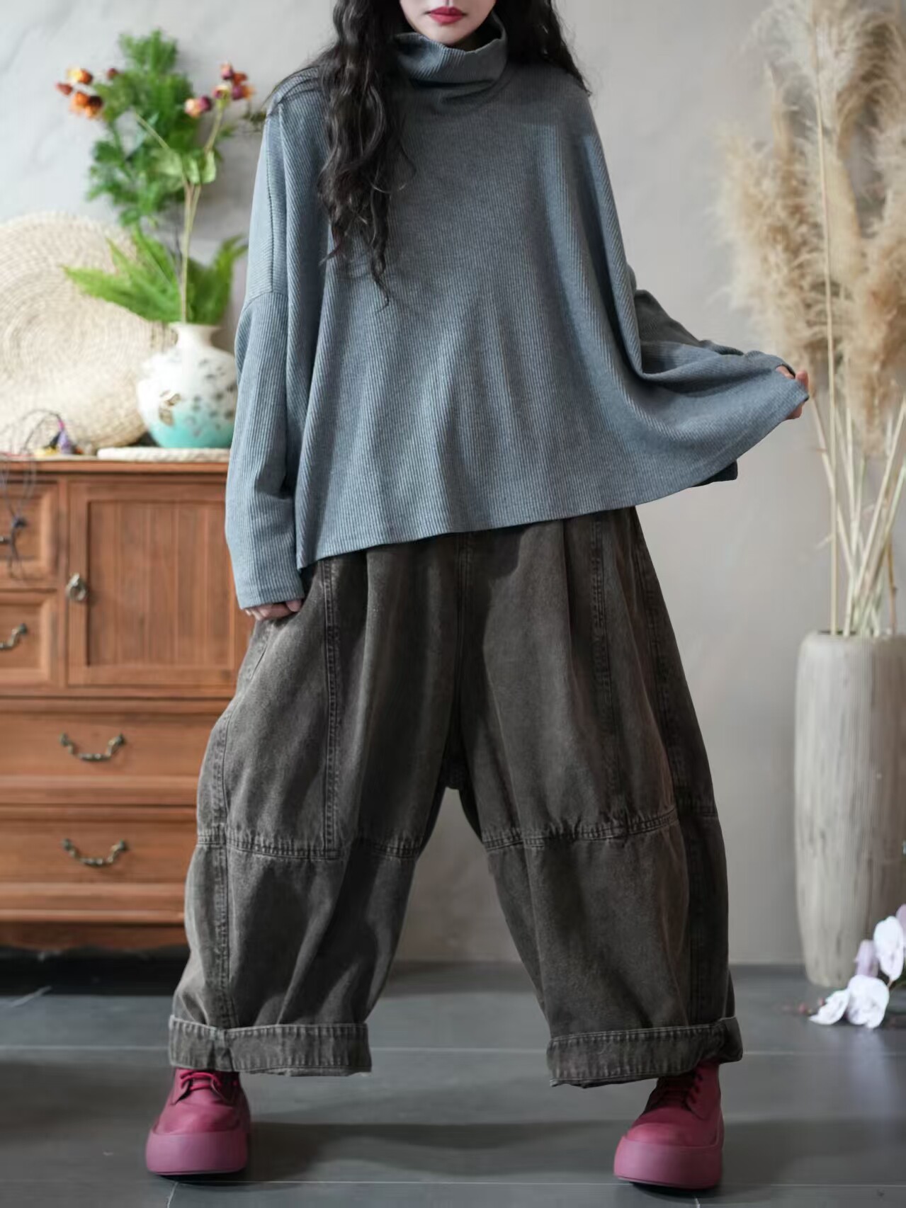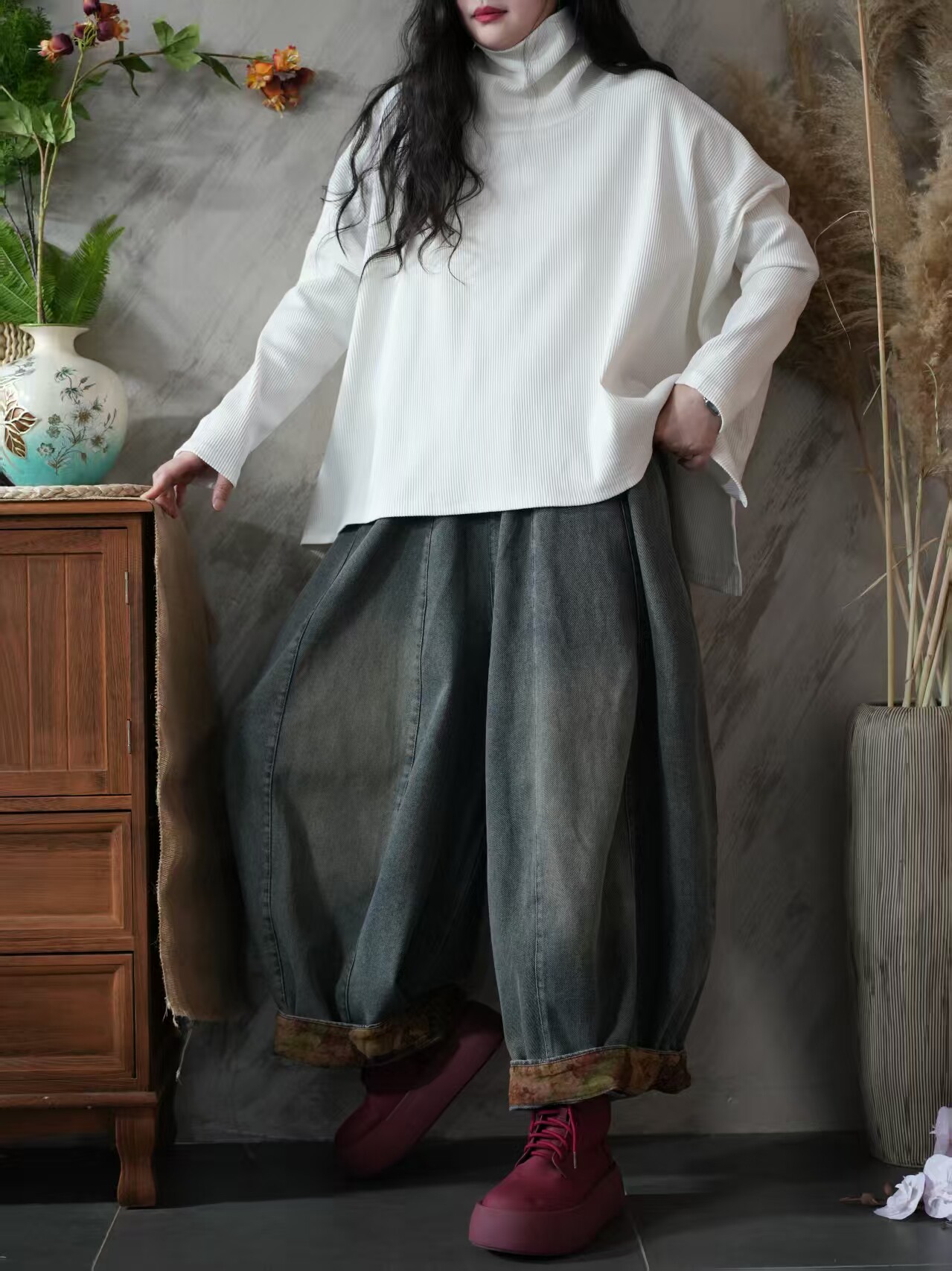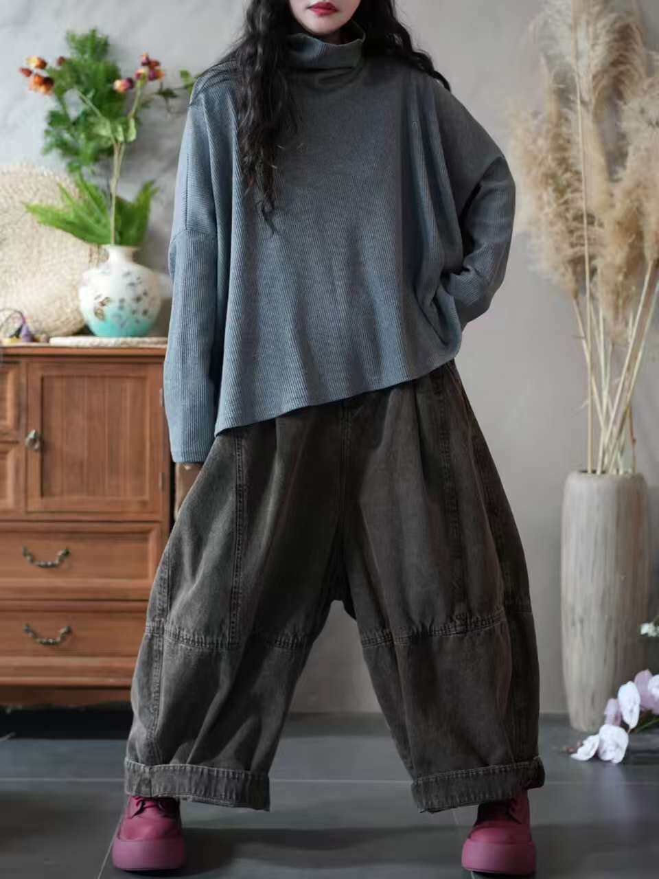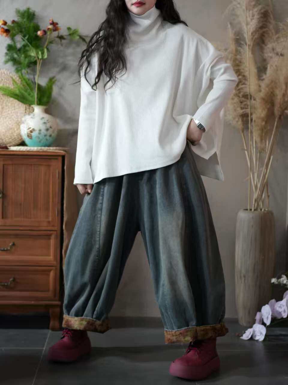 Большой вариант женской одежды осень 2025 года, новый фасон для полных девушек, свободный и стройный, универсальный пуловер, высокий воротник, низ футболки, повседневный и удобный.