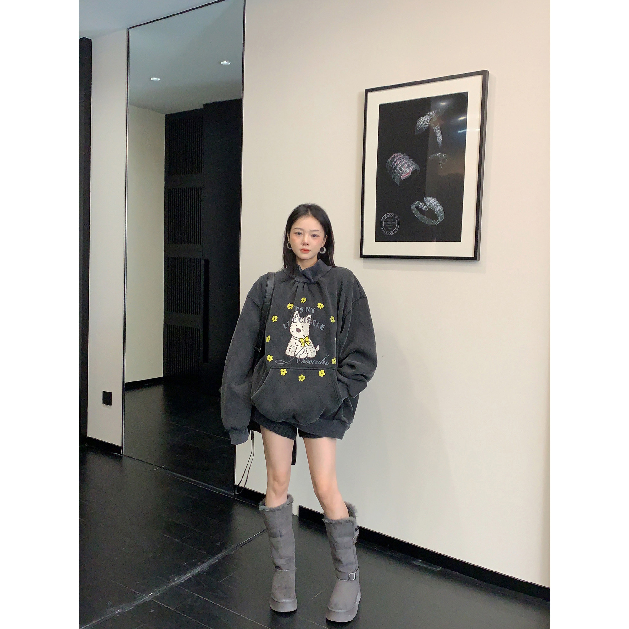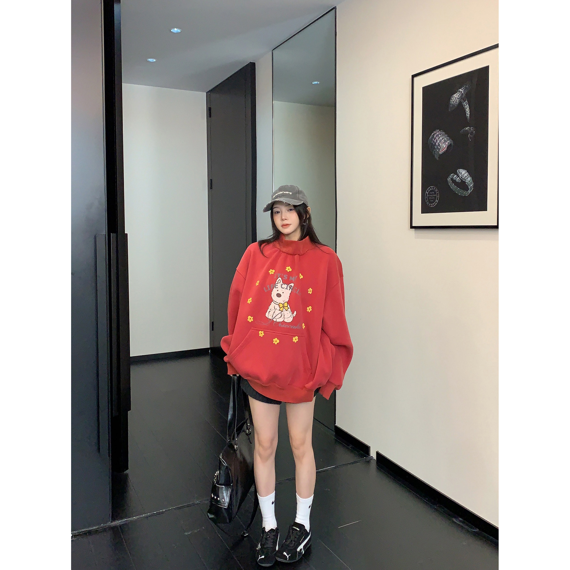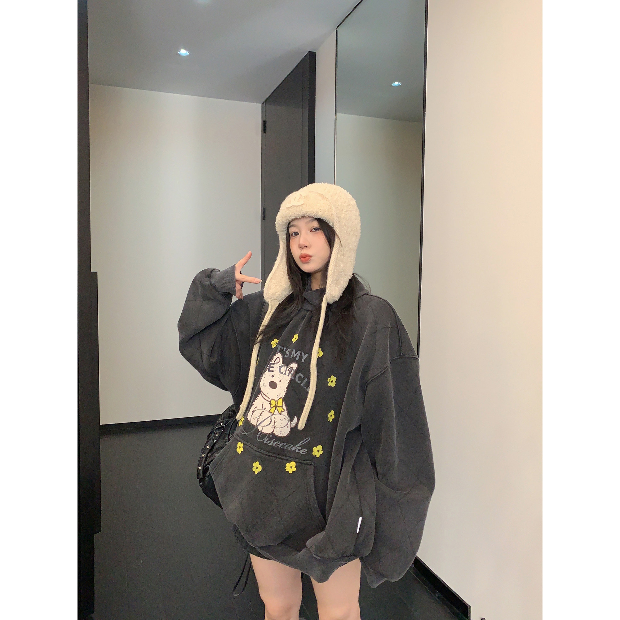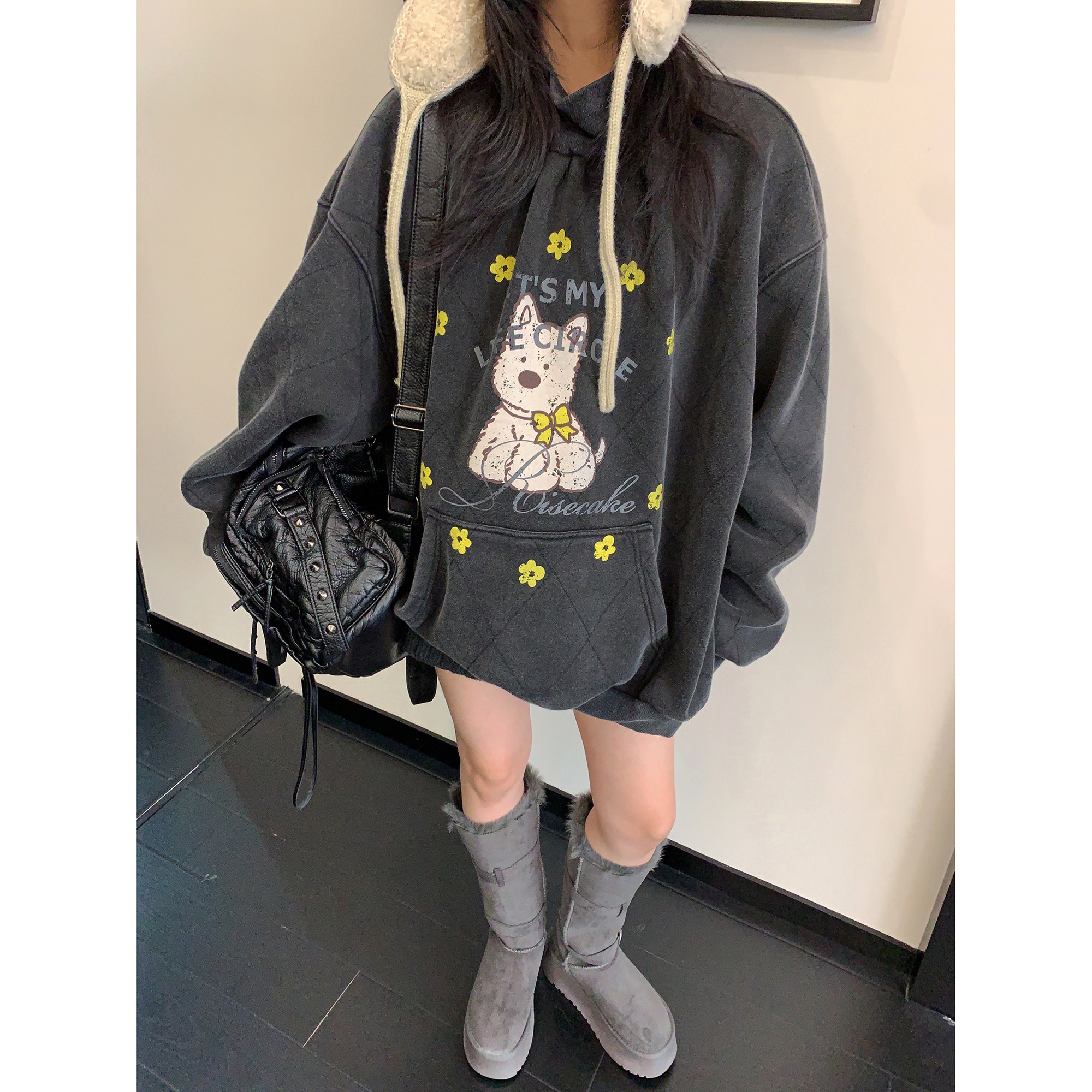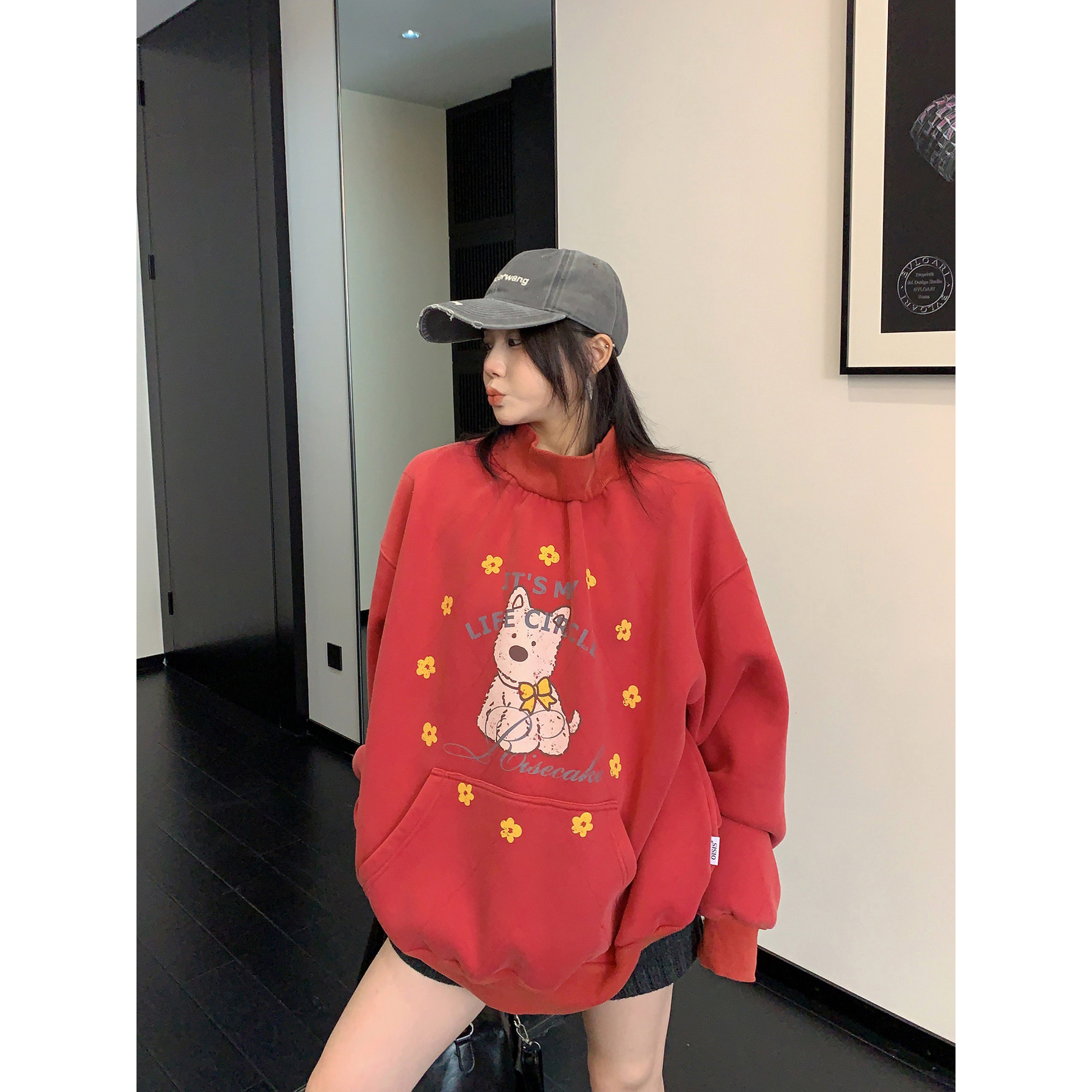 Зимняя ретро флисовая мультяшная толстовка, куртка, оверсайз, увеличенная толщина, высокий воротник