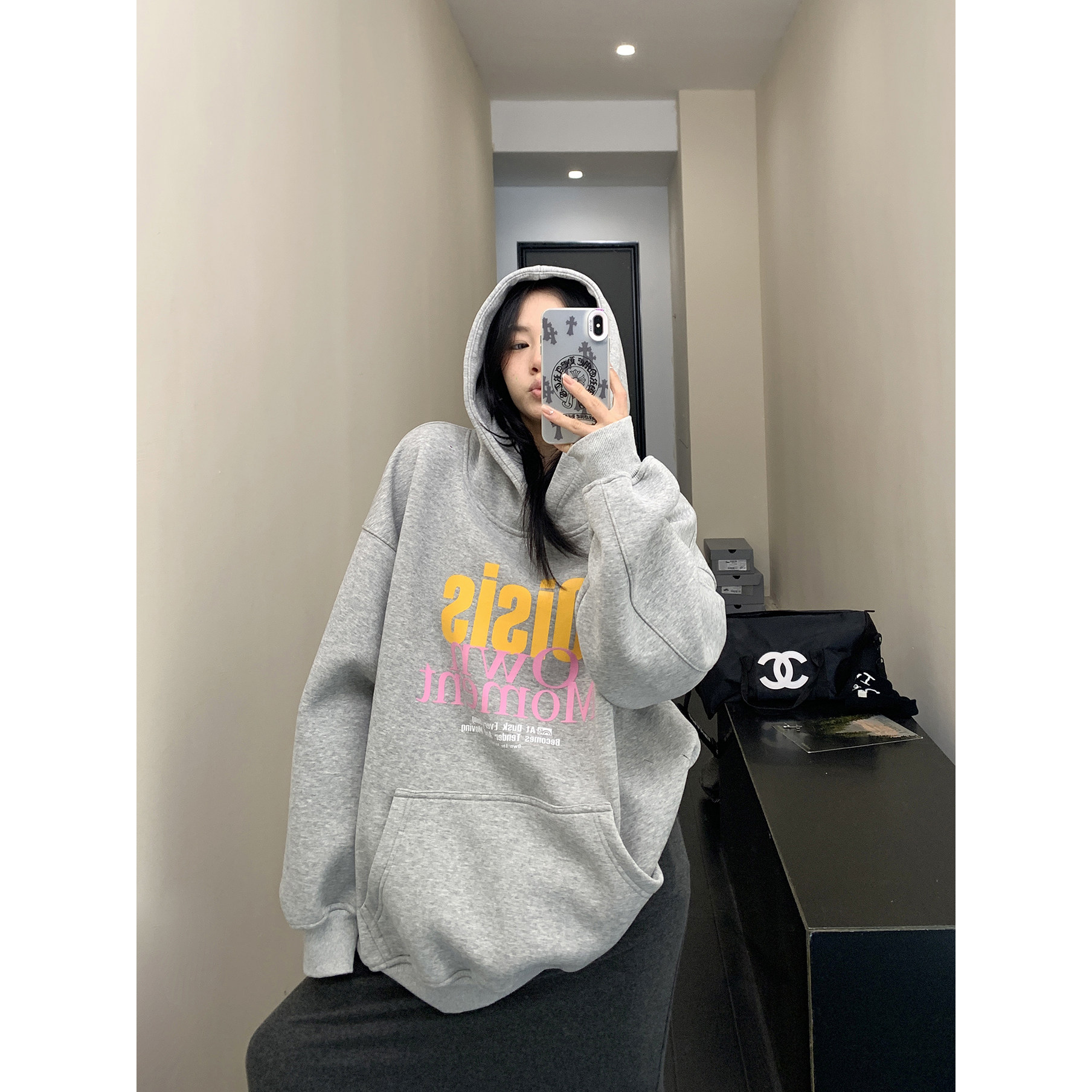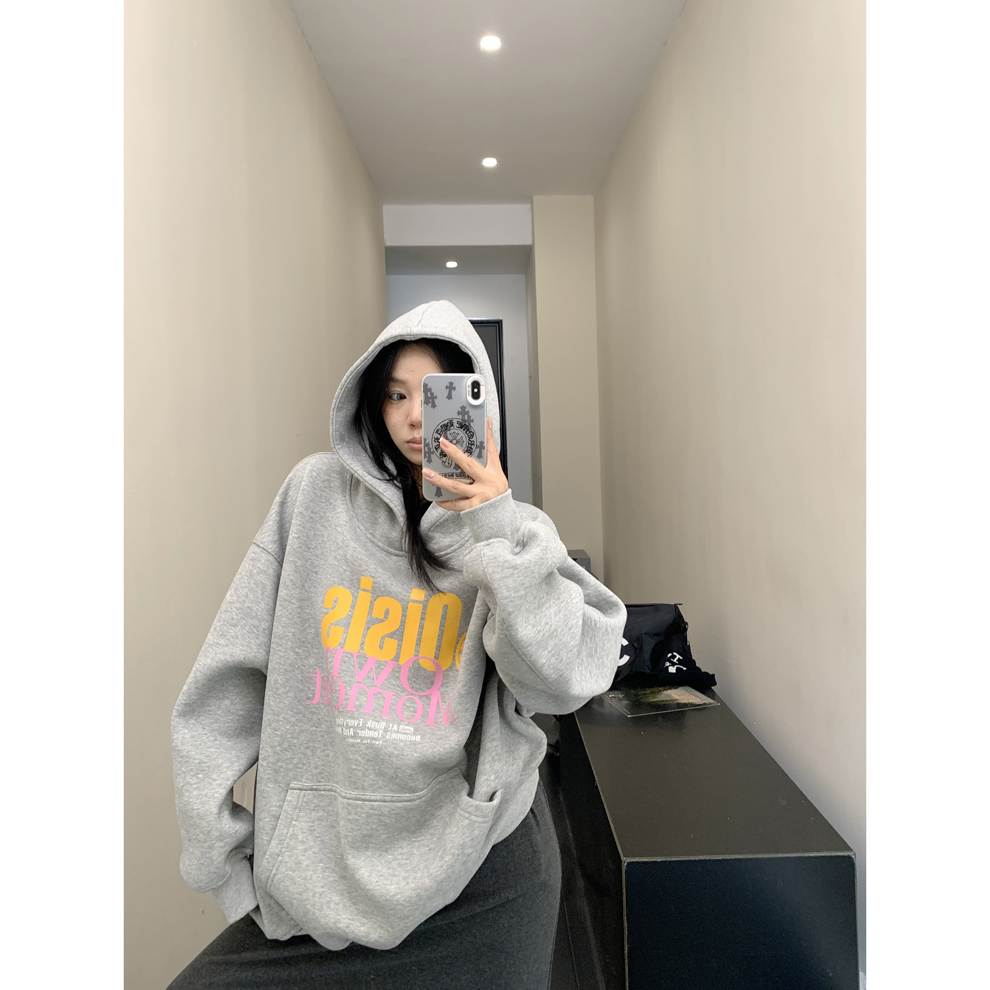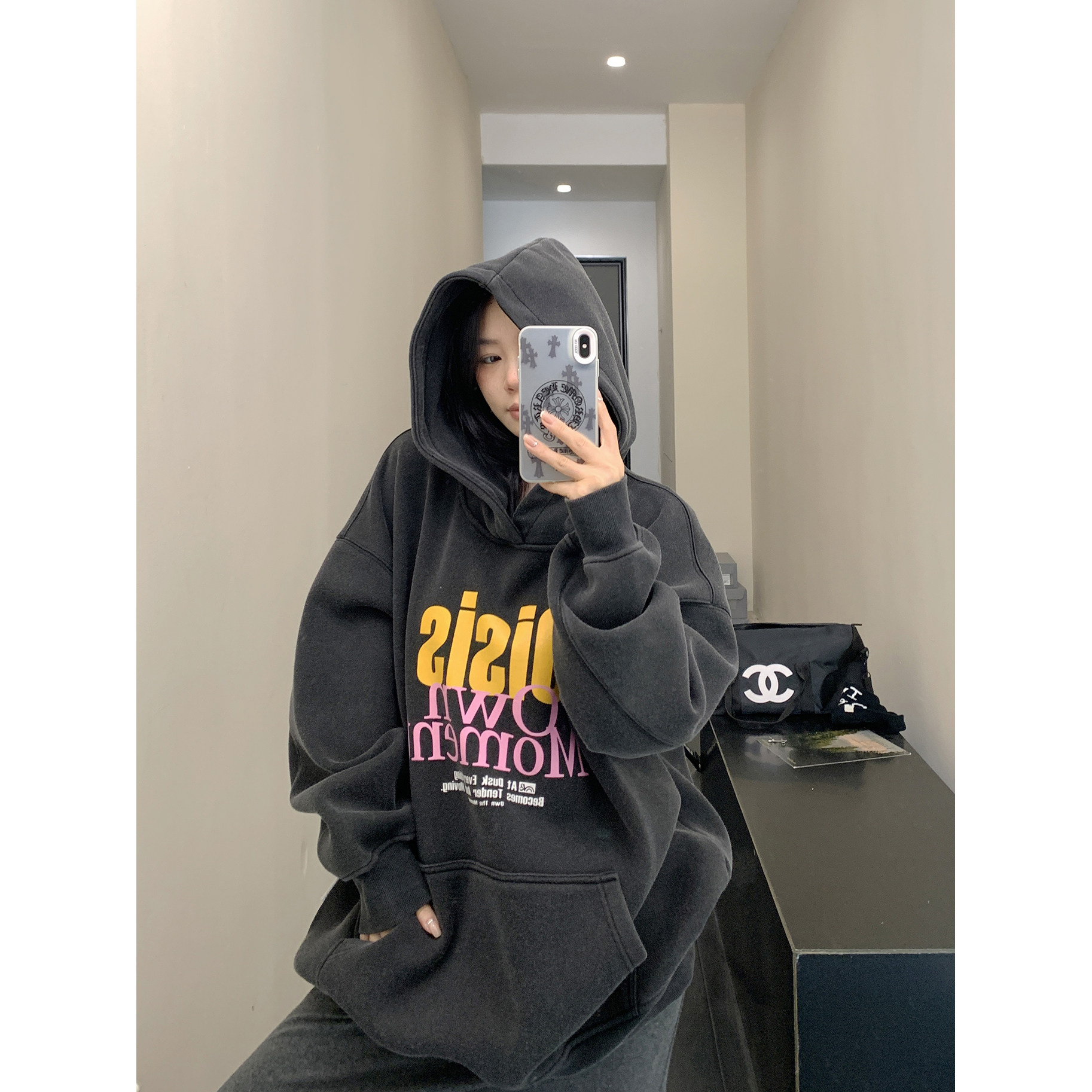 Зимняя утепленная толстовка, ретро балахон, в американском стиле, оверсайз, увеличенная толщина