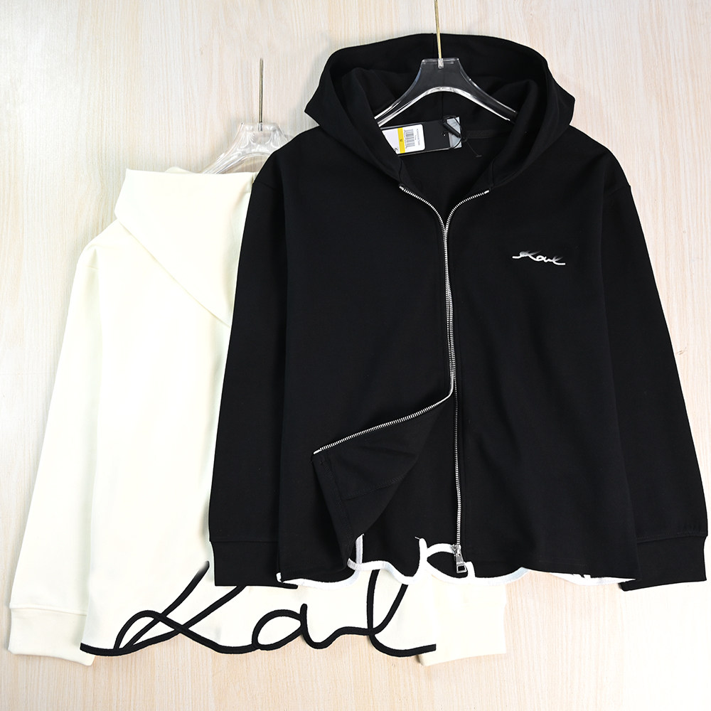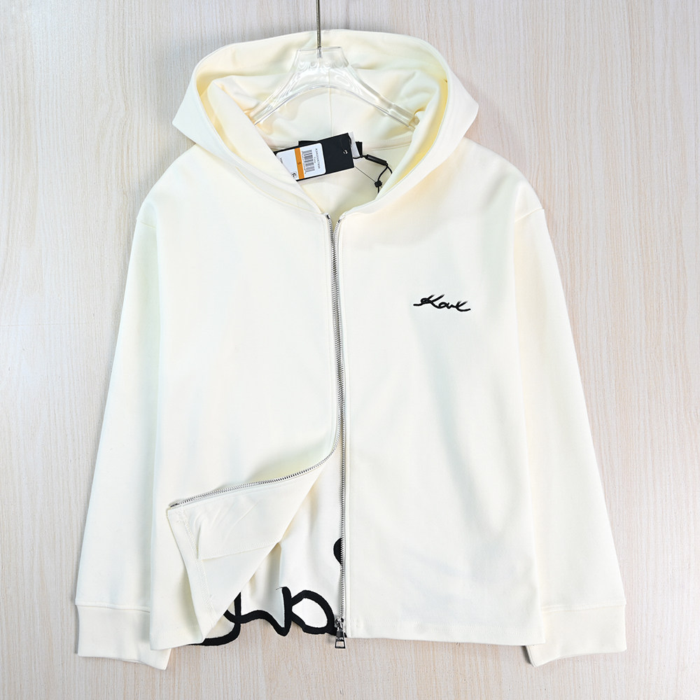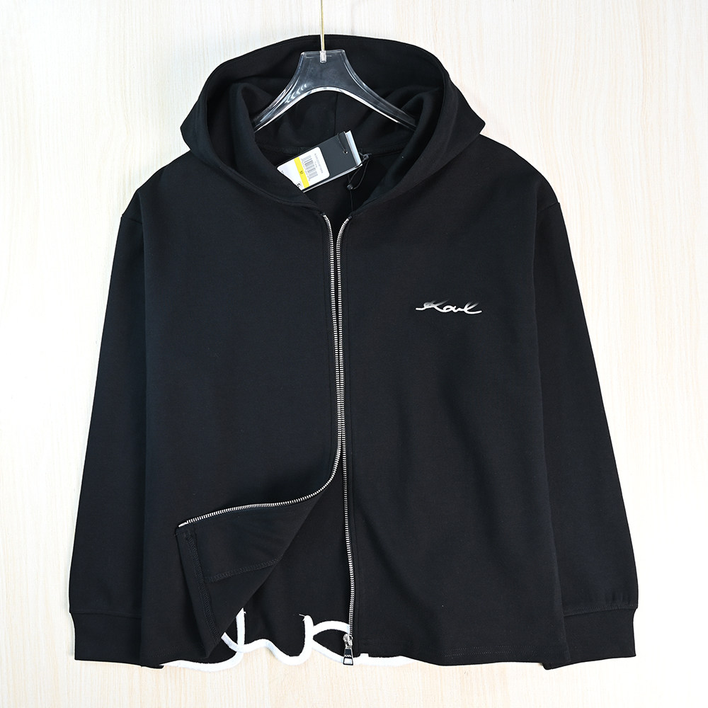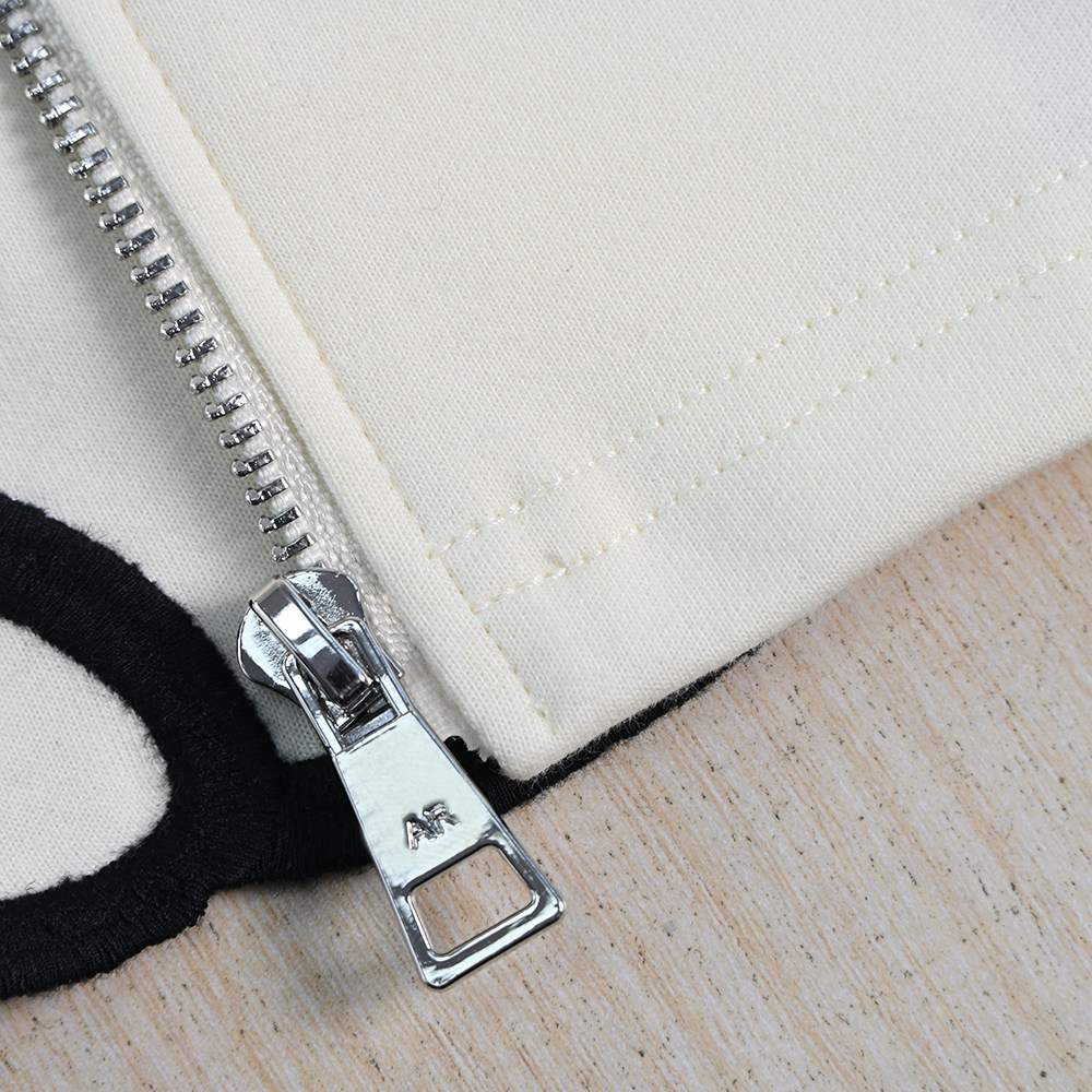 Siqi Women's Wear 2511/13 American K'er изысканные вышитые буквы спереди и сзади с отрезанной толстовкой с капюшоном и открытой молнией