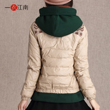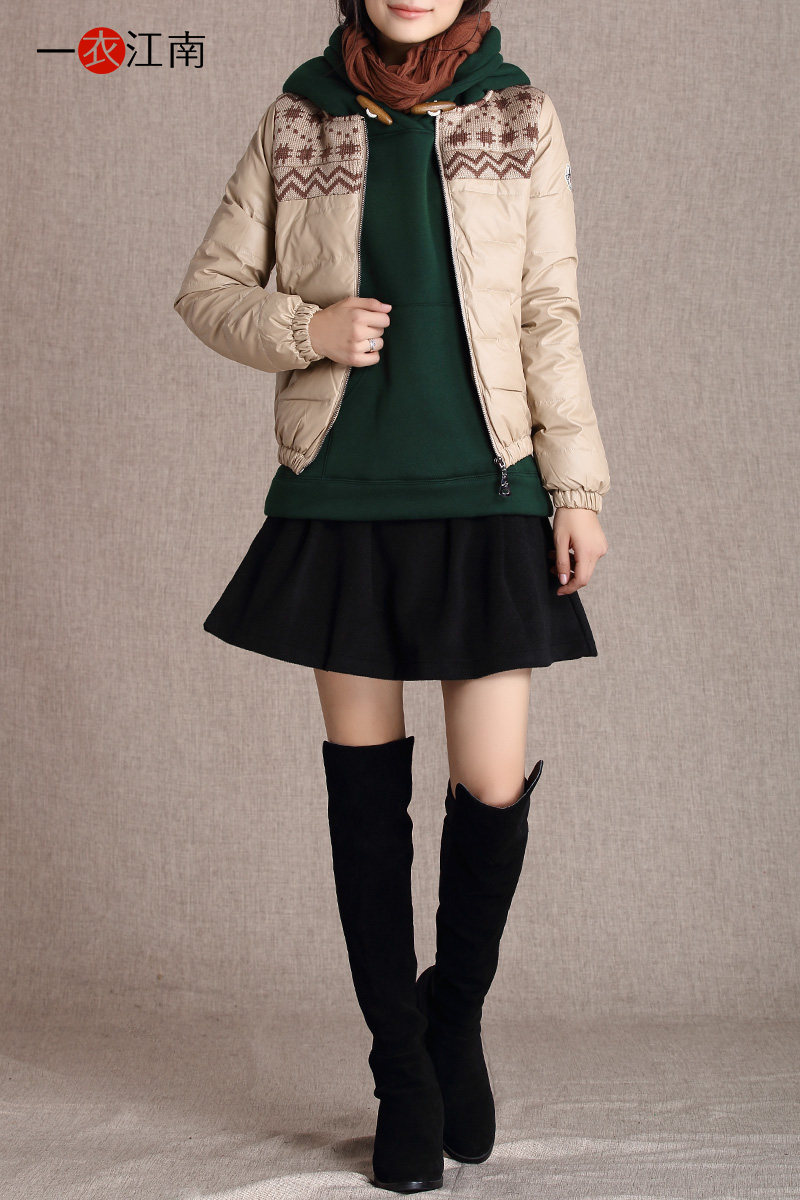 Лонгслив, бархатный галстук с круглым воротником, пуховик, увеличенная толщина, свободный прямой крой, утиный пух