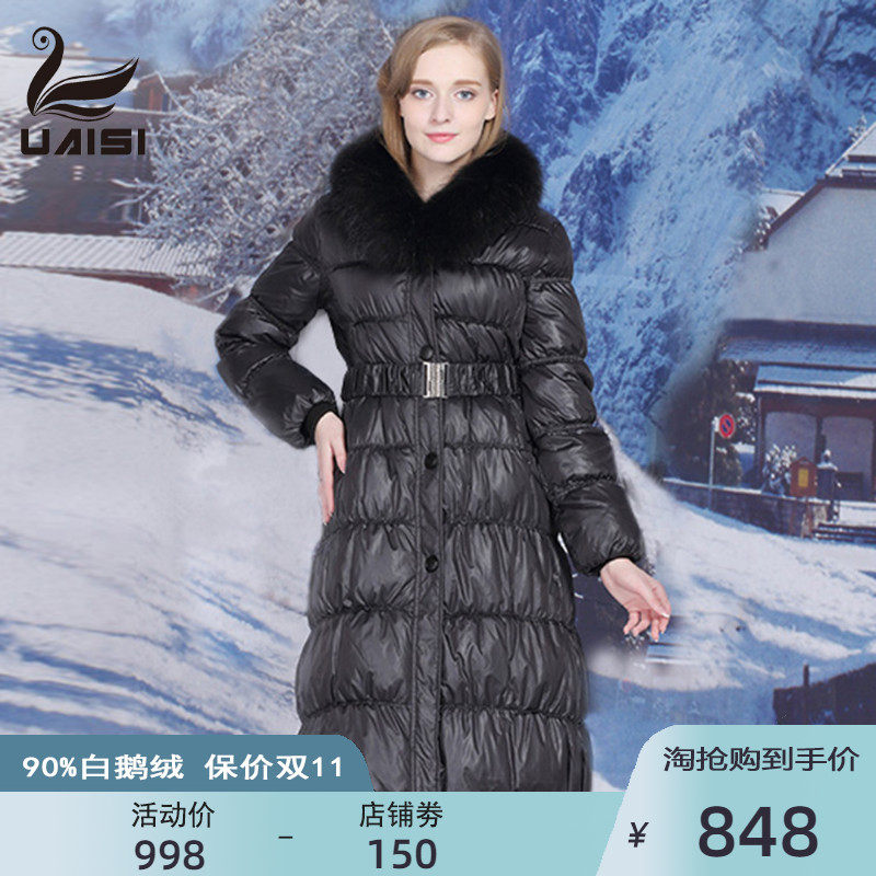 Пуховик, сверхдлинная длинная толстовка с капюшоном с пухом, 2022, гусиный пух, длина макси