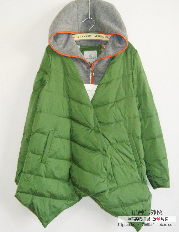СледующееУ пухлая куртка очень сильное чувство дизайна, поддельные две части, сплайдированная молния с капюшоном