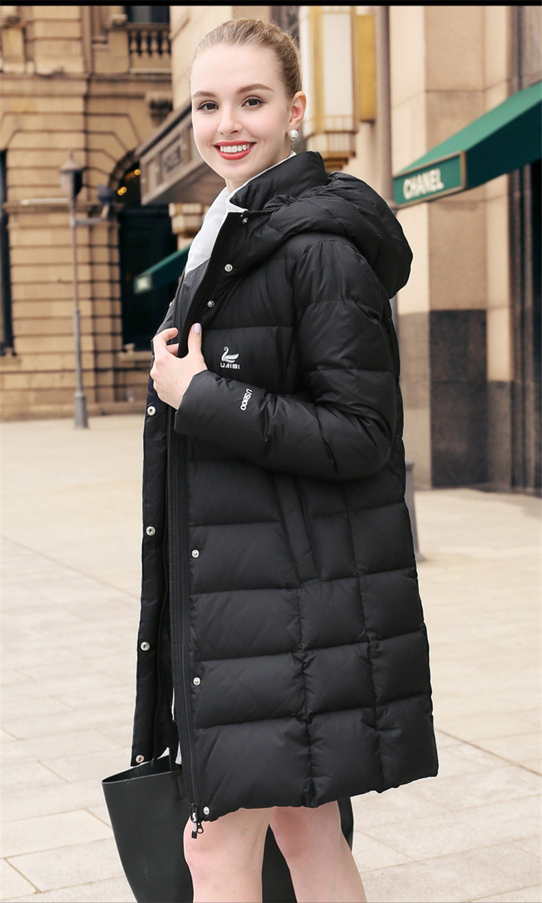 Пуховик, демисезонная толстовка с капюшоном, куртка, гусиный пух, средней длины, облегающий крой