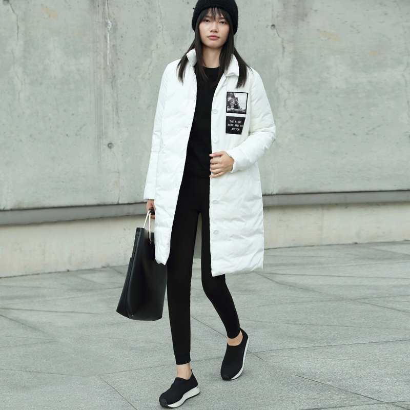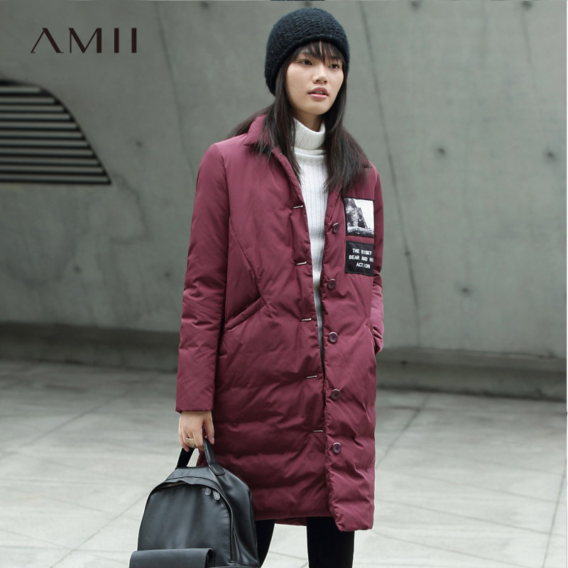 Amii Зимний длинный пуховик, свободный прямой крой, средней длины
