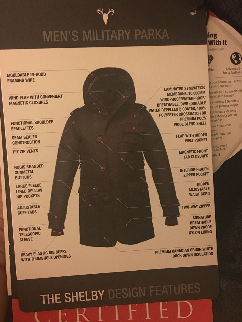Nobis Shelby Nubis Men's White Duck Plel Down Down Jupt Medium -Delenge Canadian Authentic Direct Procksing