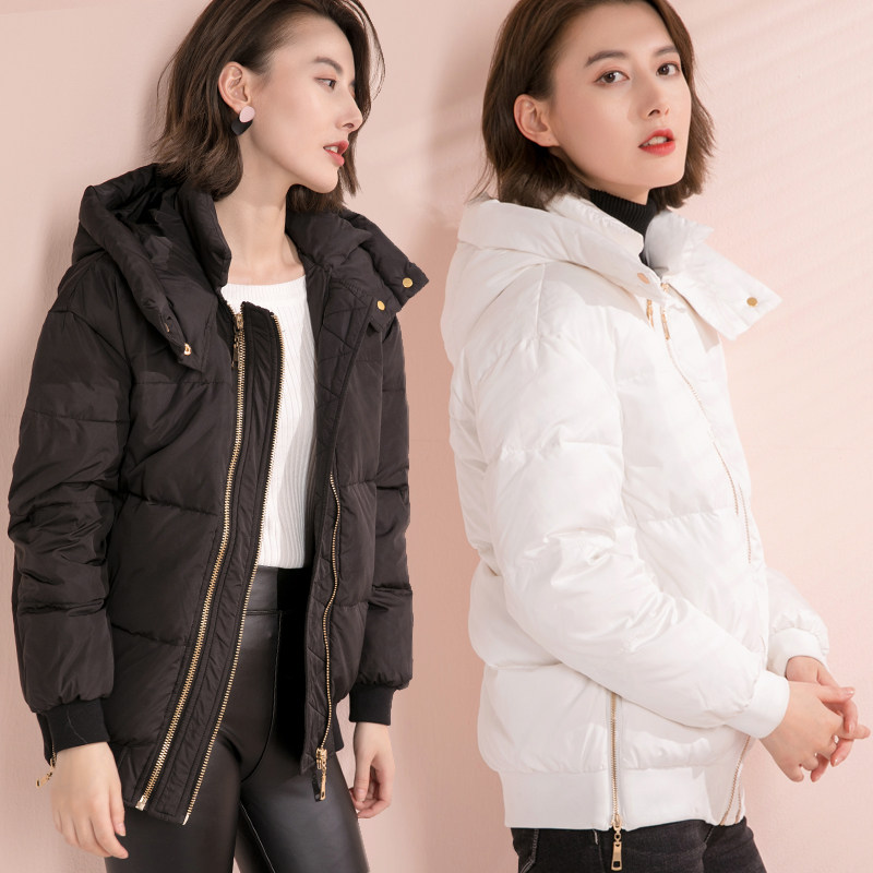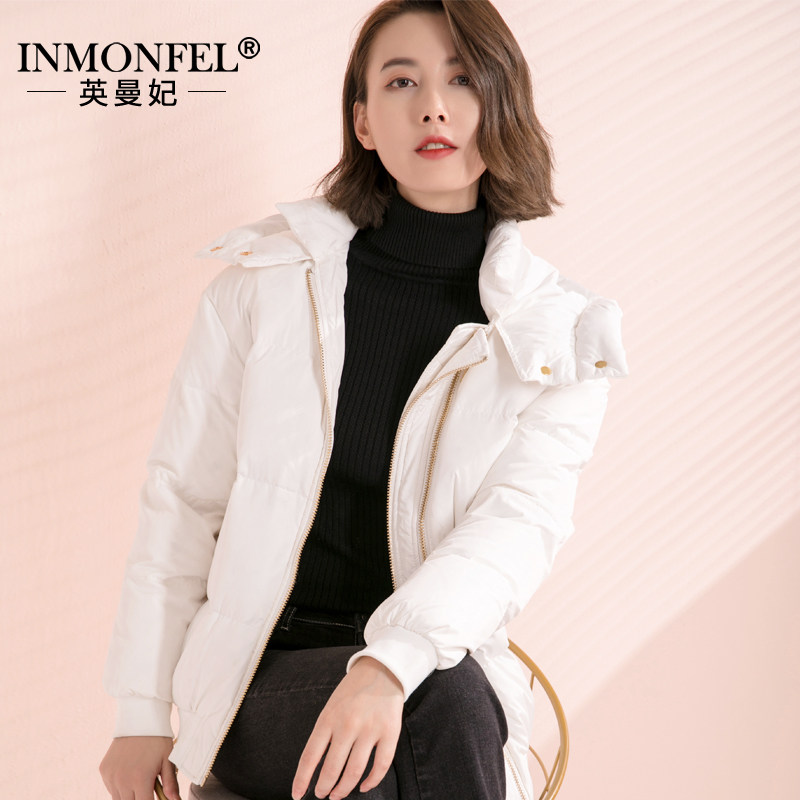 Модный белый зимний пуховик, джинсы с начесом, толстовка с капюшоном, куртка, в корейском стиле