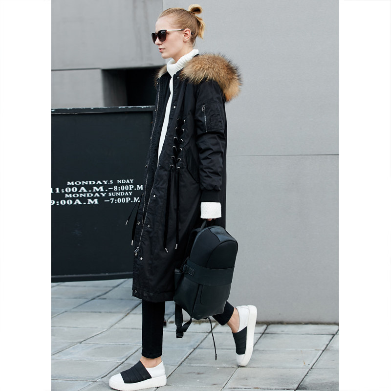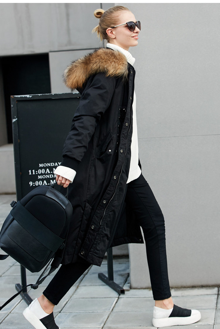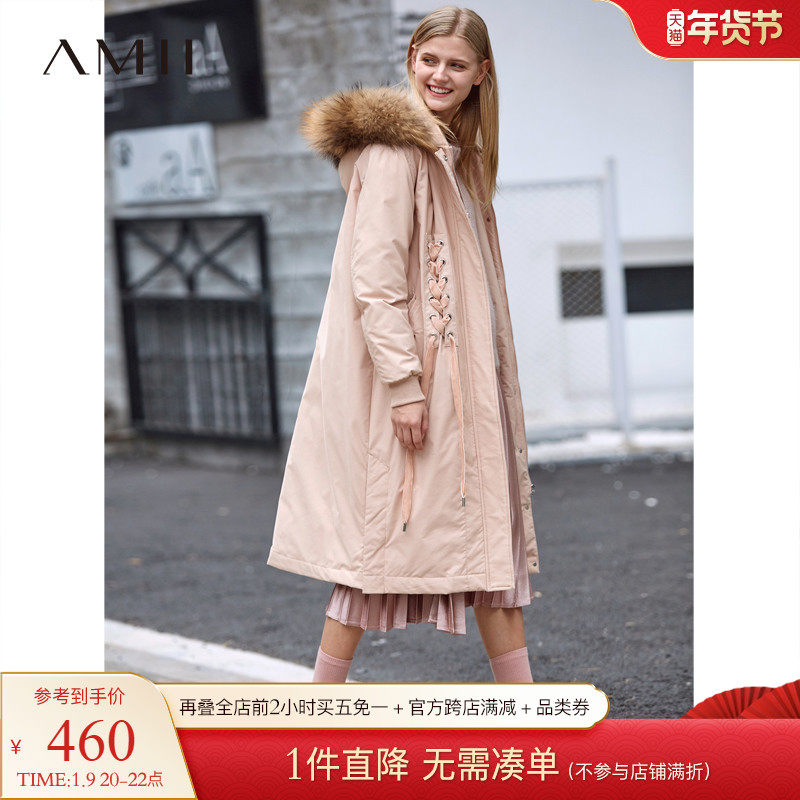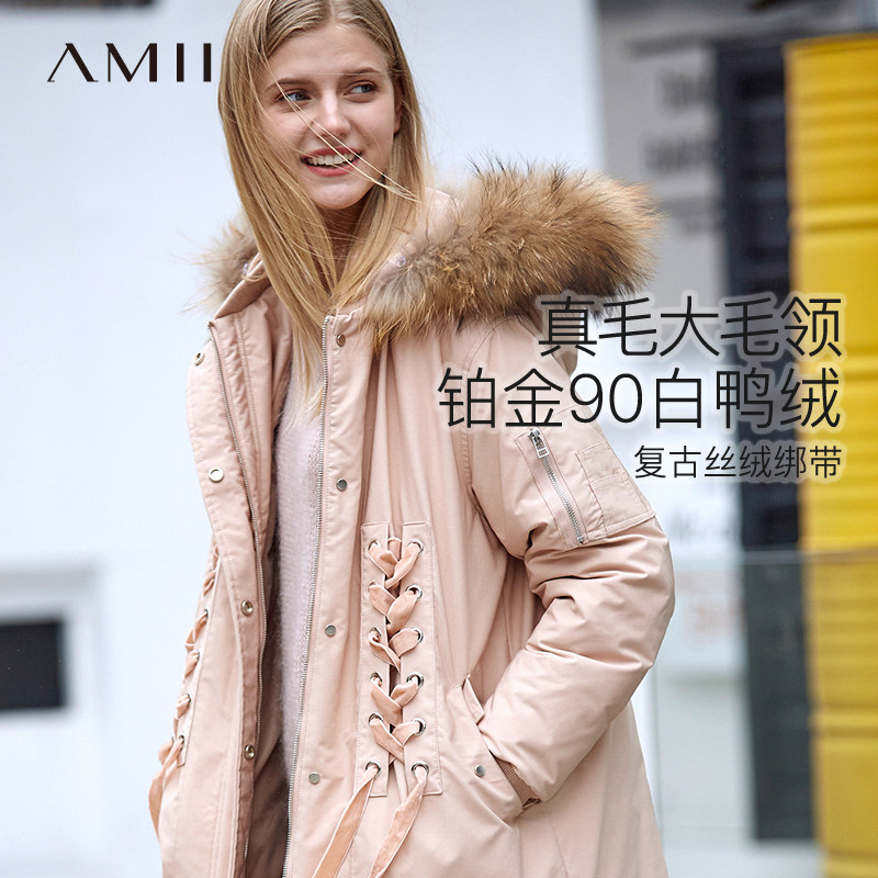 Amii Минималистичный вместительный и большой бархатный длинный зимний пуховик, куртка, утиный пух, длина макси