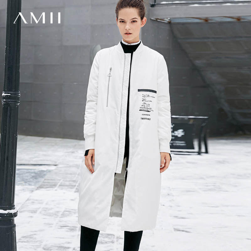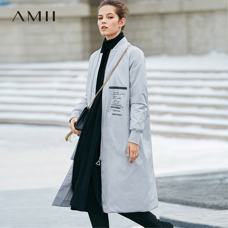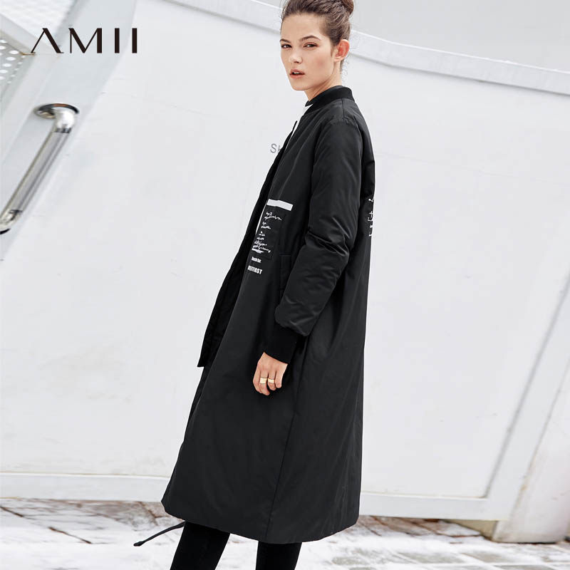 Amii Минималистичный пуховик для отдыха, длинный плащ, с вышивкой