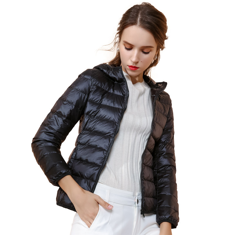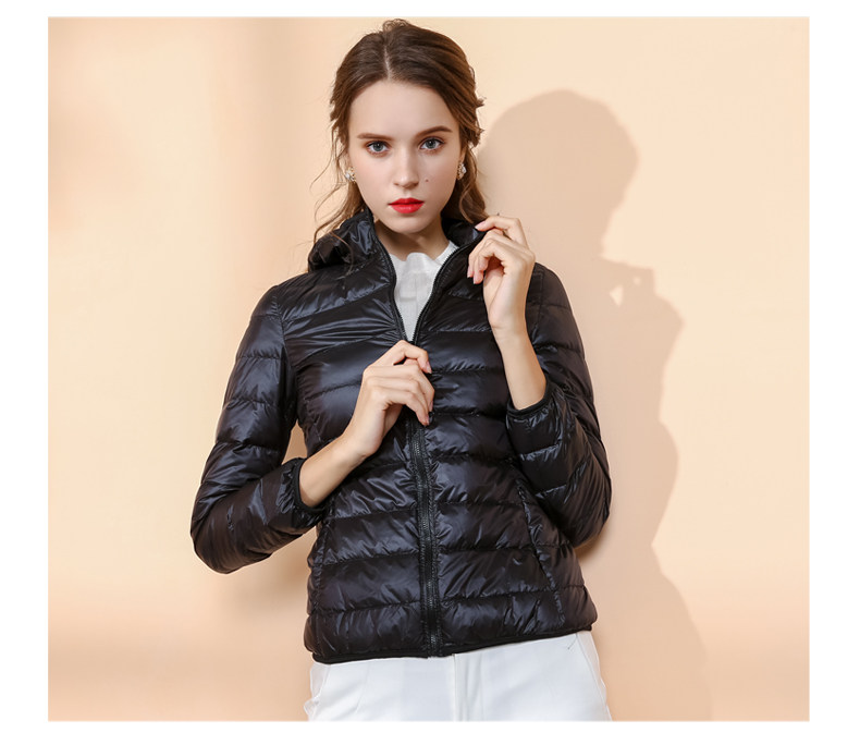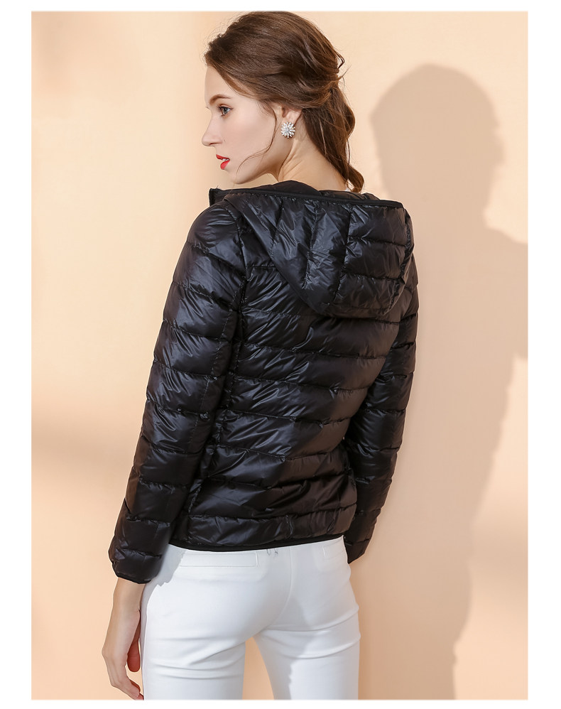 Модный зимний демисезонный пуховик, черная куртка с капюшоном, облегающий крой