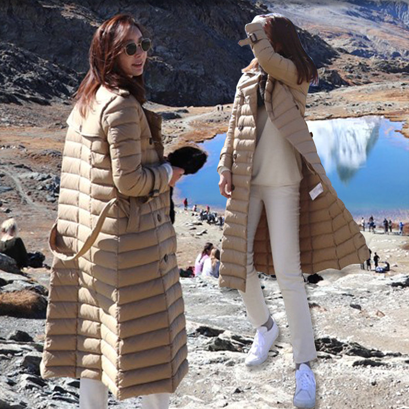 Ремень, легкий и тонкий плащ, приталенный пуховик, европейский стиль