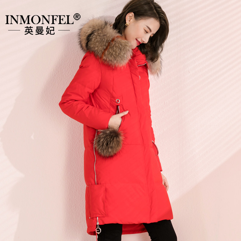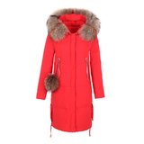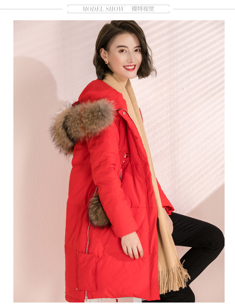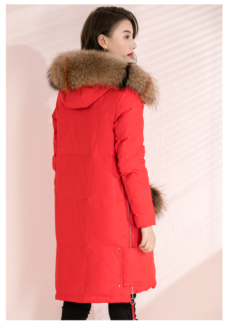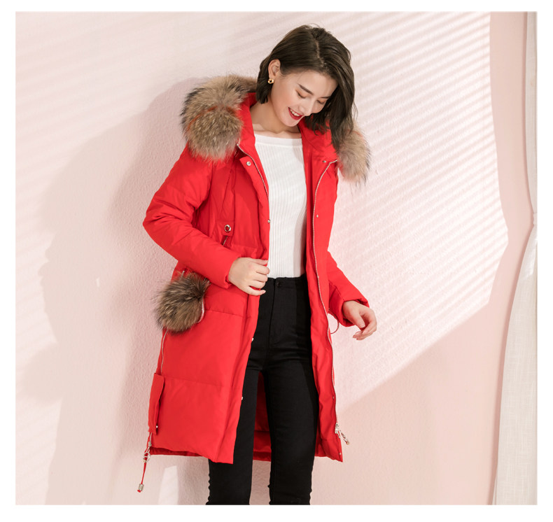 Зимний модный красный длинный пуховик, куртка, средней длины, облегающий крой